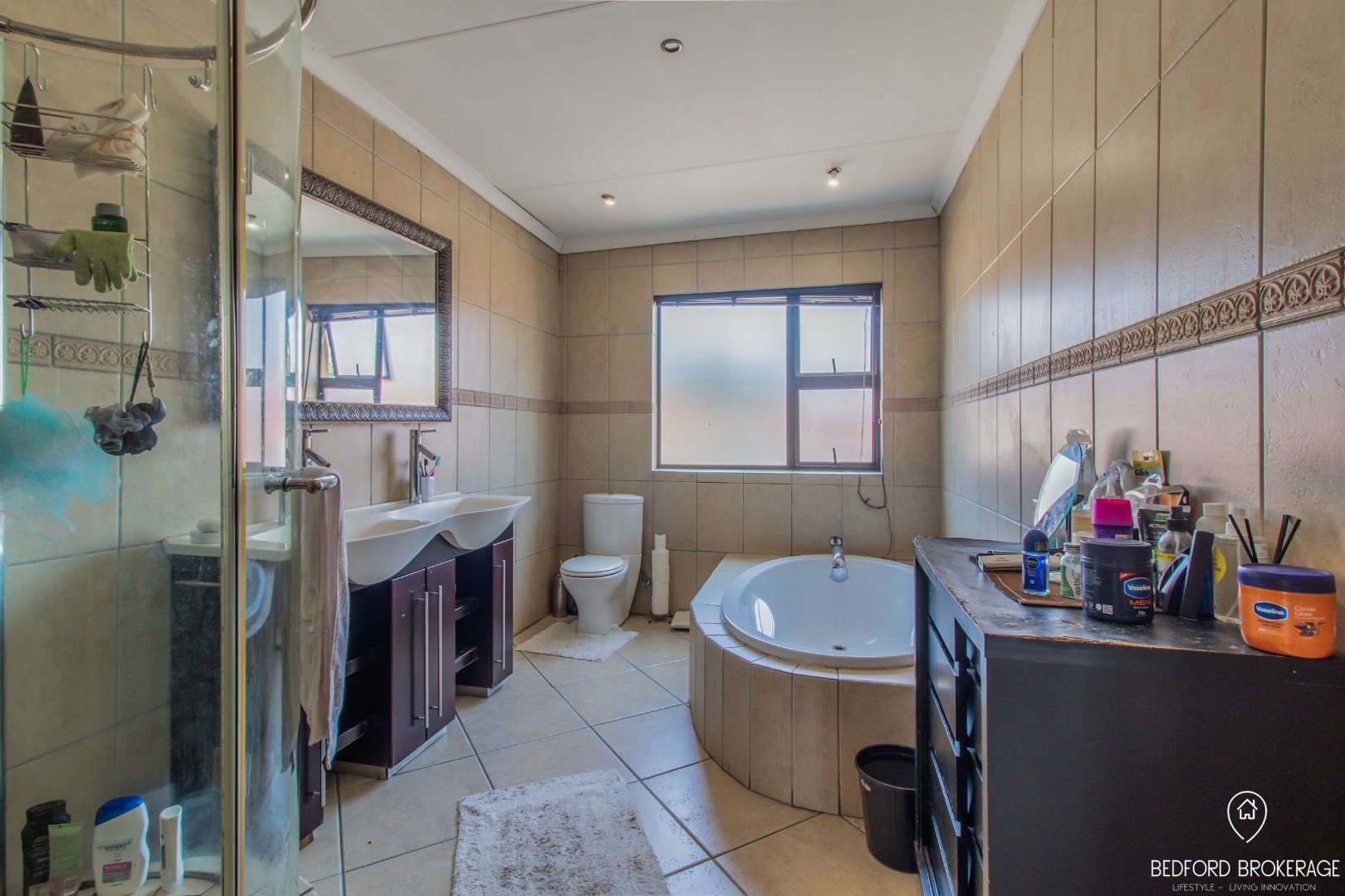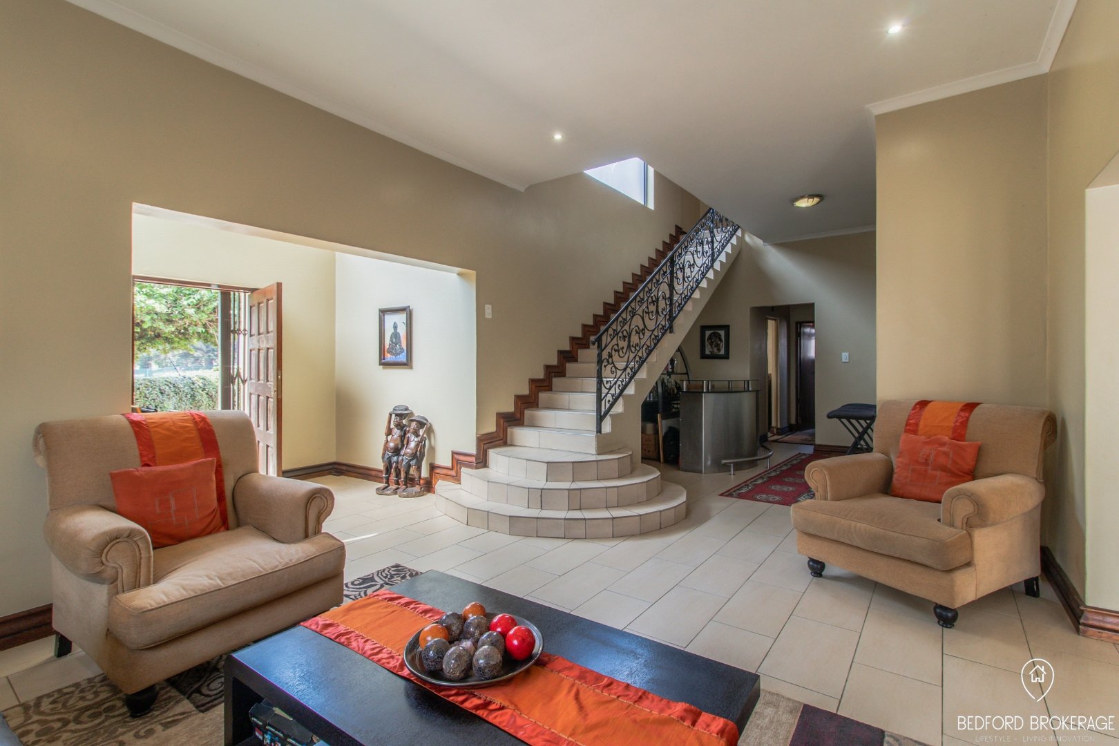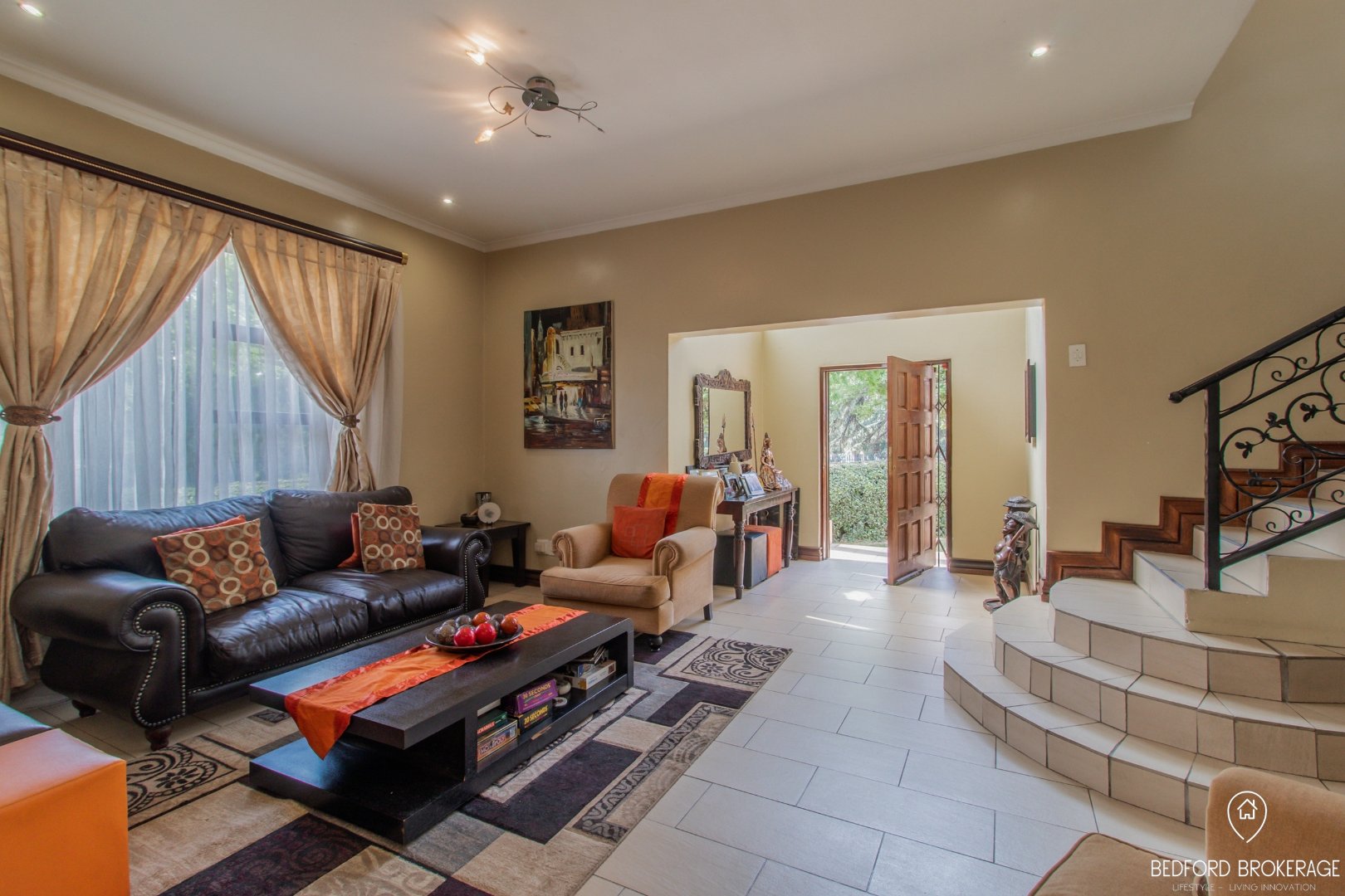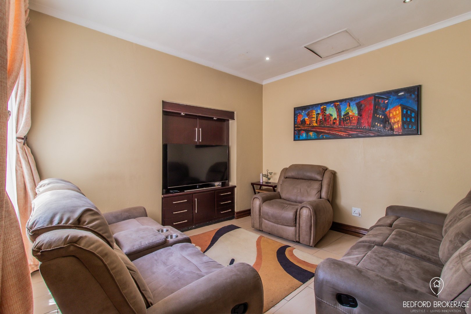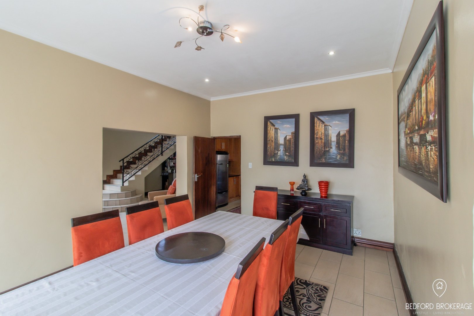 Downstairs offers 3 spacious bedrooms and 2 bathrooms. Each bedroom is carpeted and equipped with air conditioning for year-round comfort, while the rest of the house features elegant tiling.