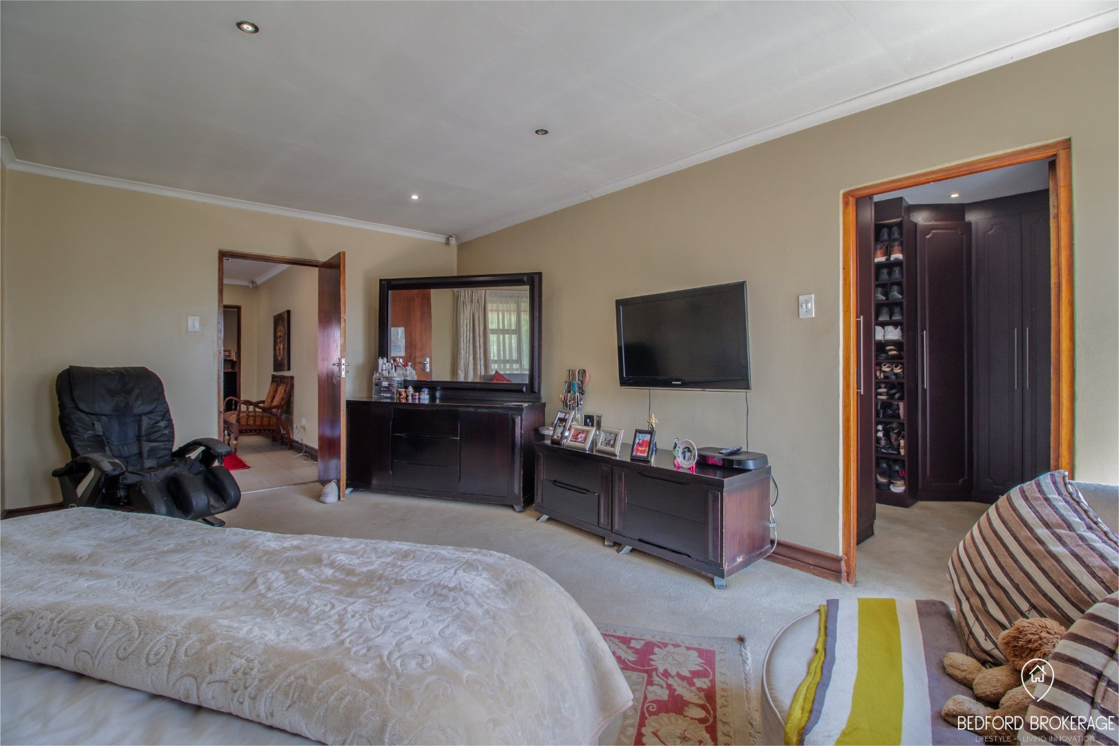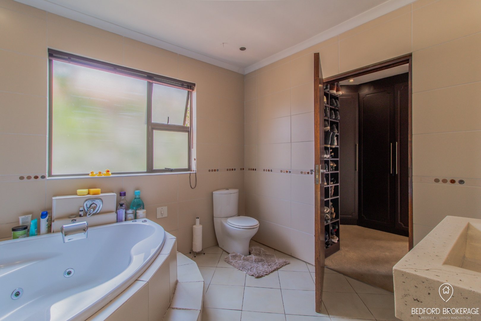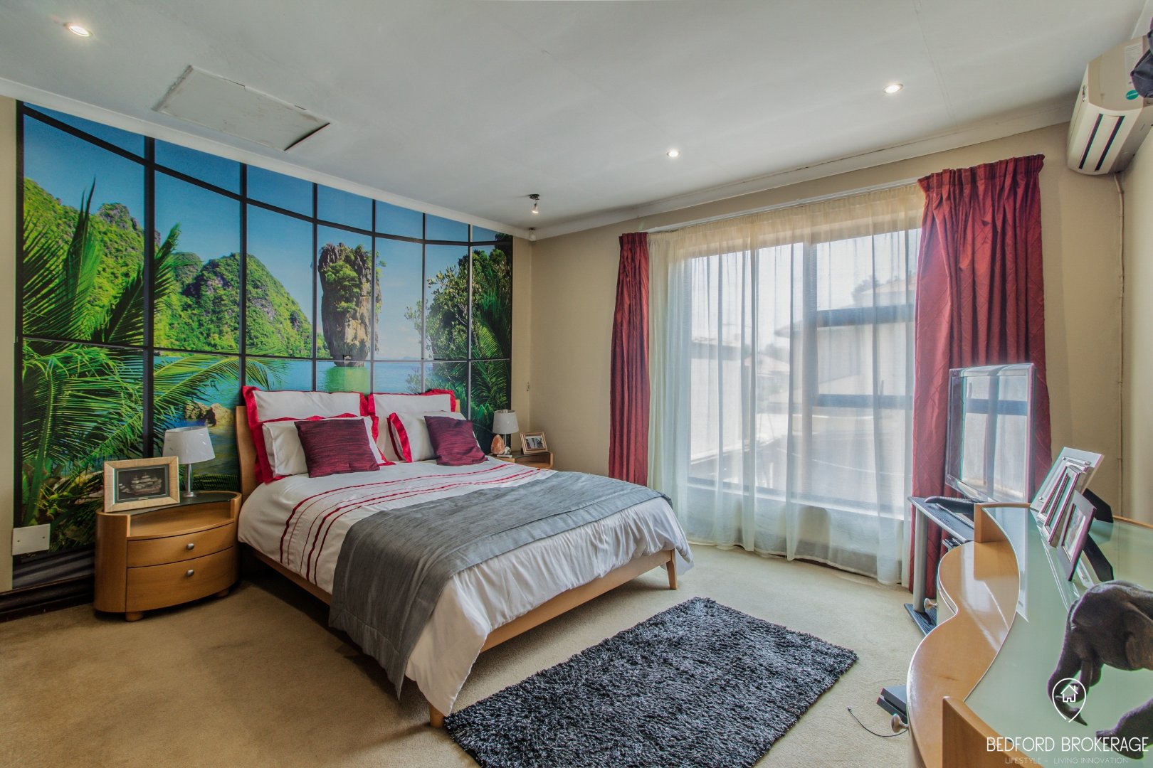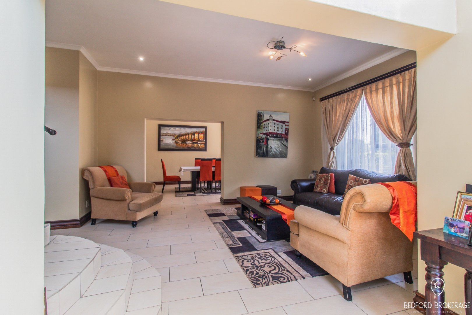 Downstairs offers 3 spacious bedrooms and 2 bathrooms. Each bedroom is carpeted and equipped with air conditioning for year-round comfort, while the rest of the house features elegant tiling.