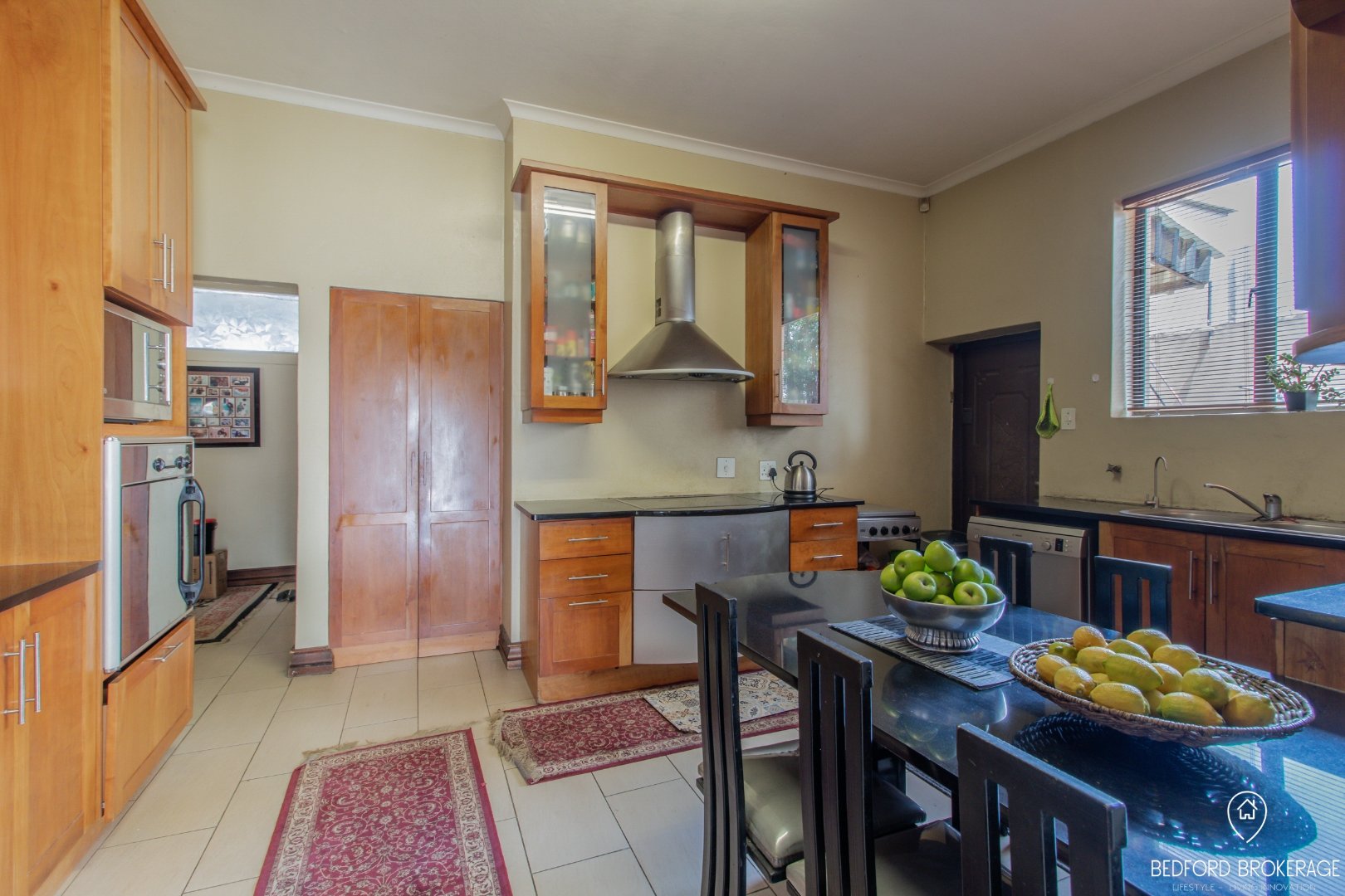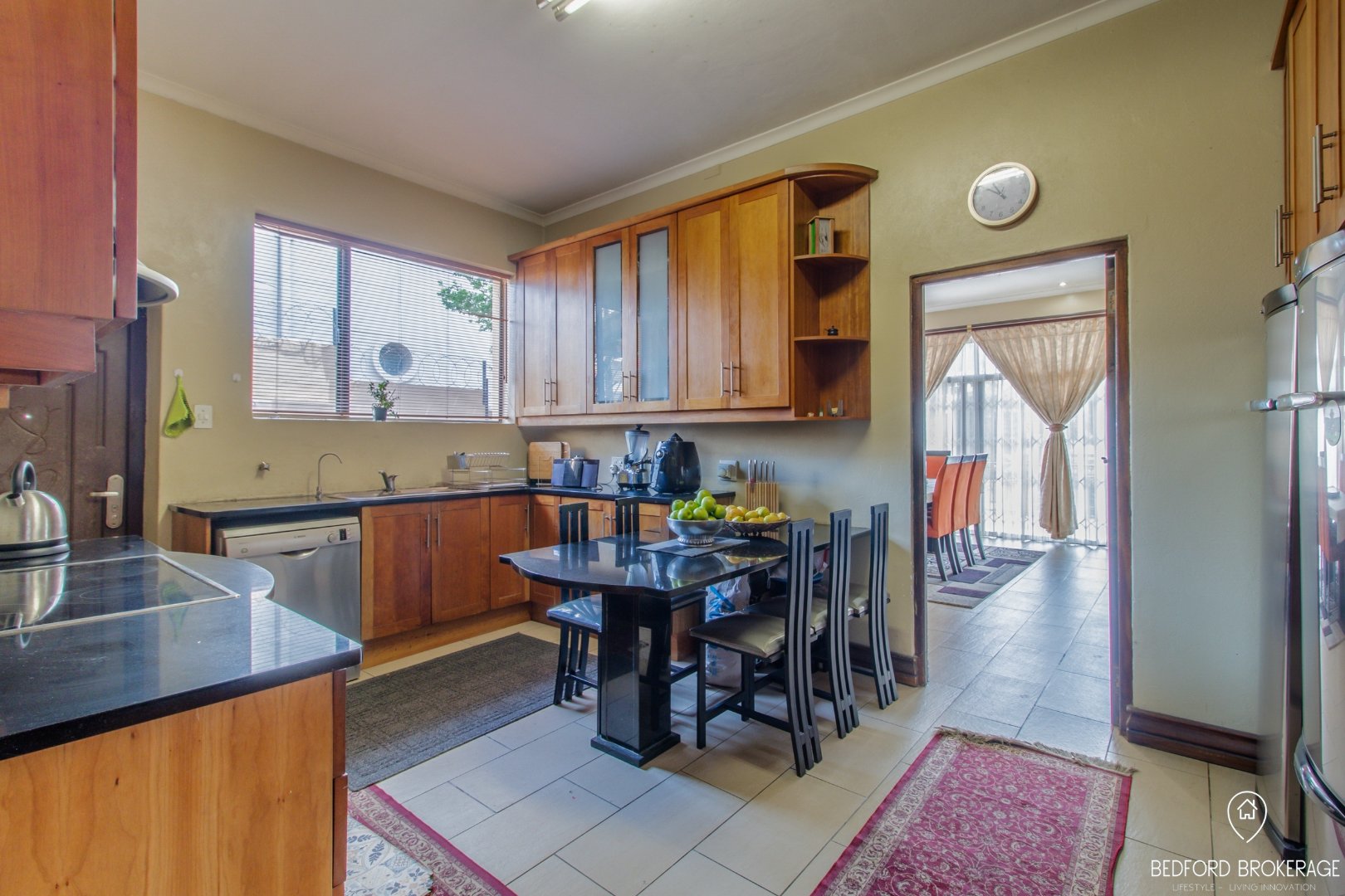 The heart of the home is the beautifully designed kitchen, featuring luxurious granite countertops, cherry wood cupboards, and top-of-the-line appliances, including a Defy stove top and eye-level oven. A separate laundry room ensures functionality and convenience.