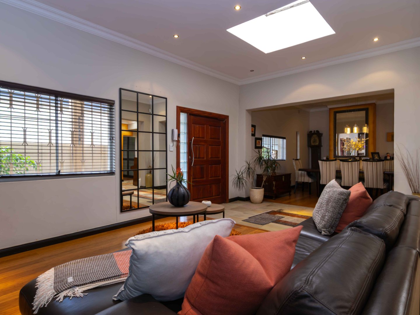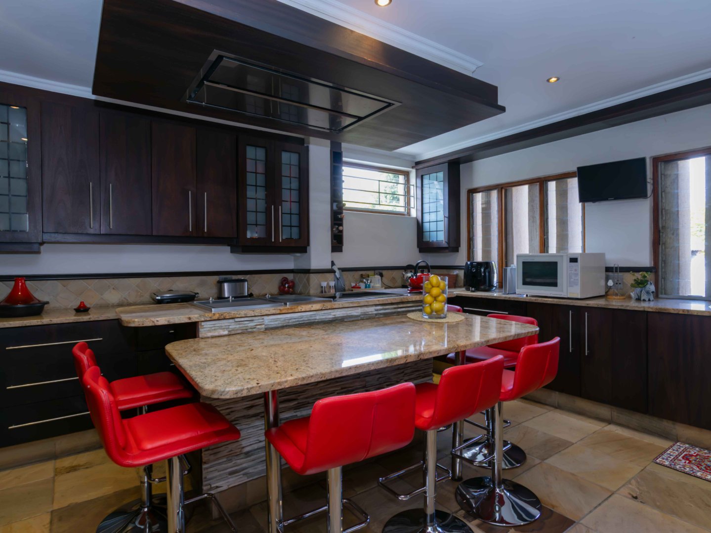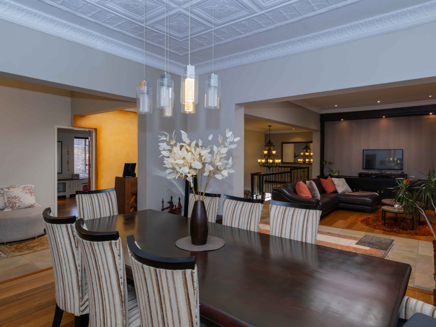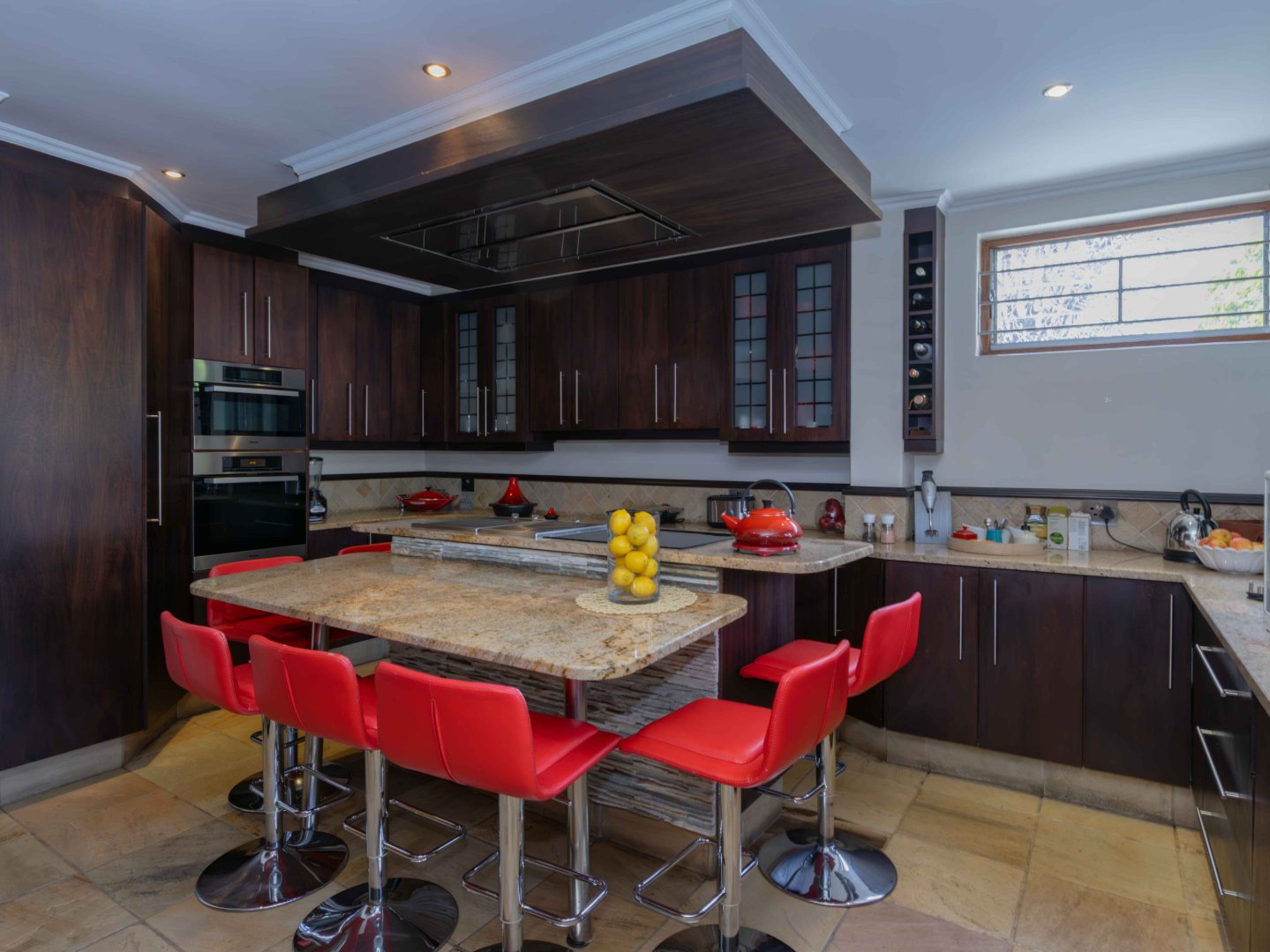 The chef’s kitchen is a showpiece, featuring premium appliances, generous workspace, a scullery, and laundry crafted for both grand dinner parties and everyday inspiration. Whether it’s dinner in the elegant dining room or sundowners on the patio overlooking Johannesburg’s skyline, every space is designed to impress.