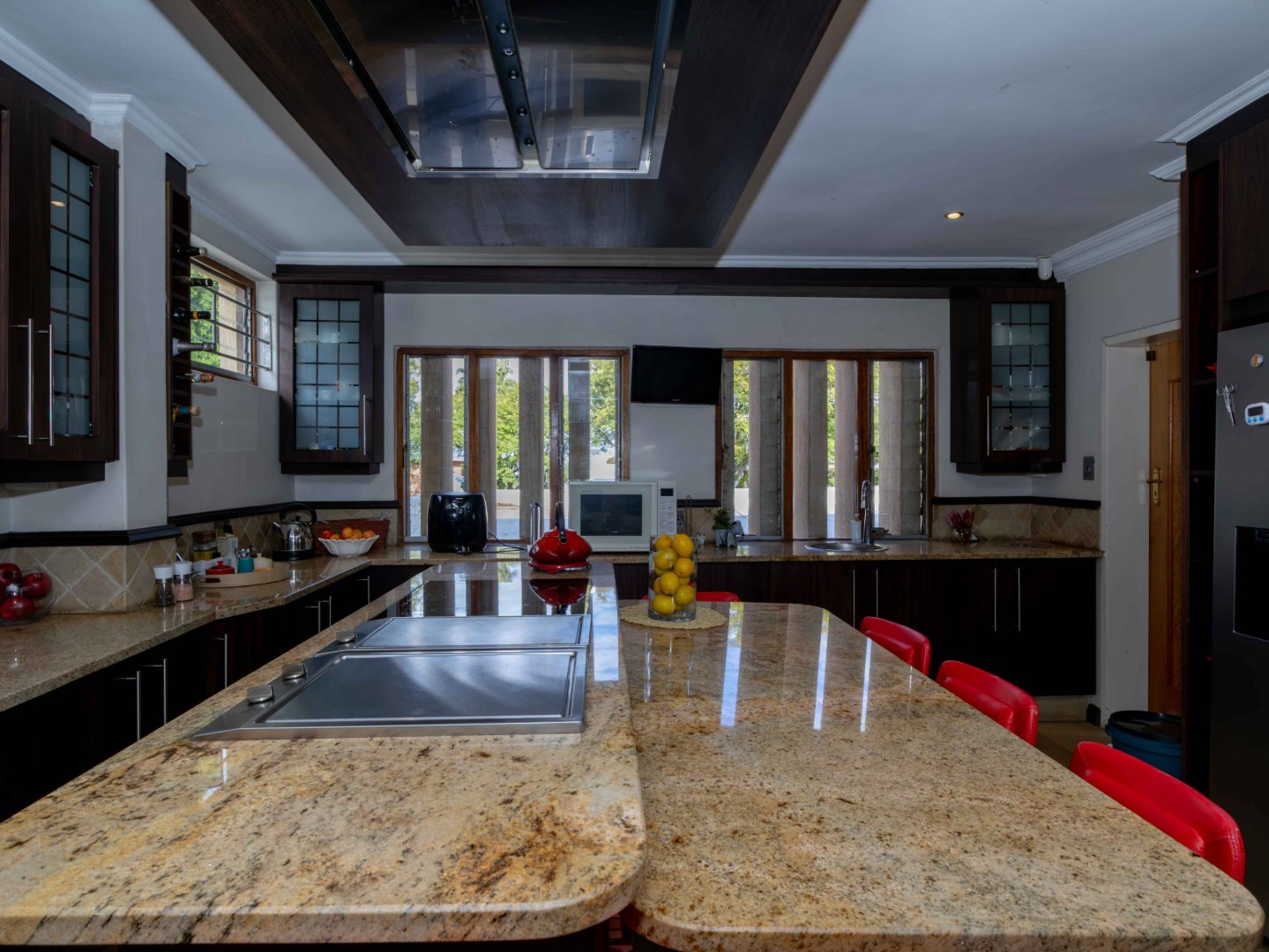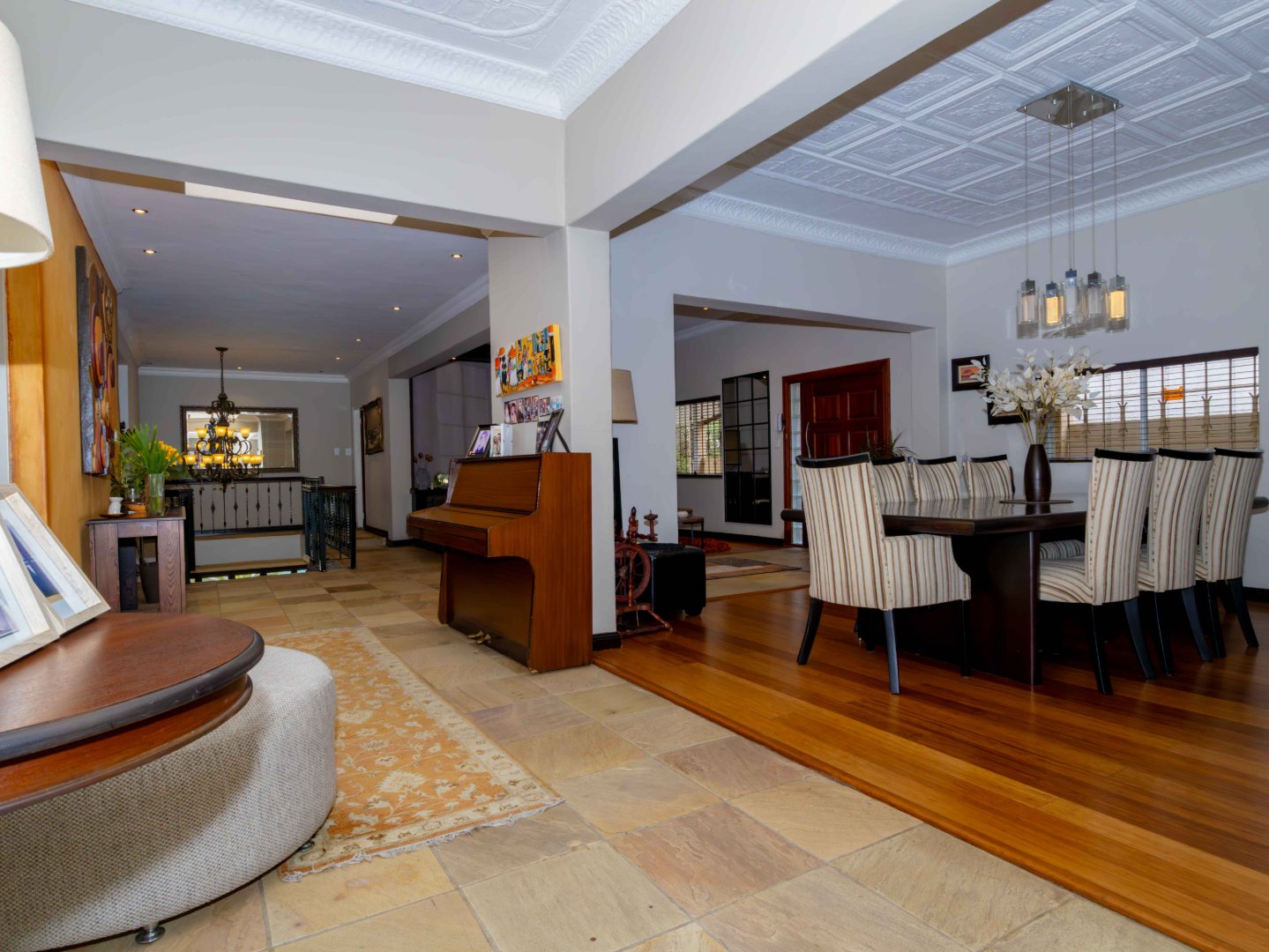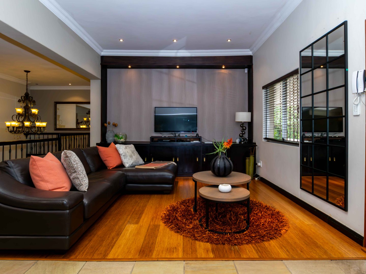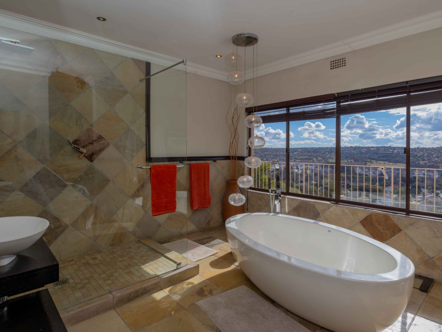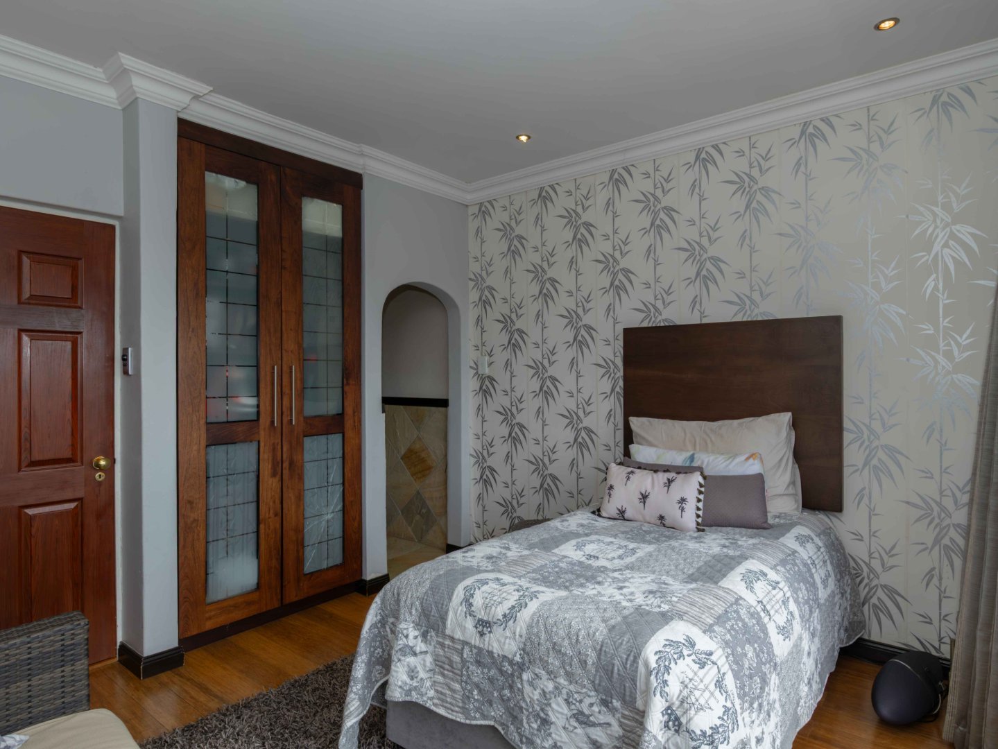 The chef’s kitchen is a showpiece, featuring premium appliances, generous workspace, a scullery, and laundry crafted for both grand dinner parties and everyday inspiration. Whether it’s dinner in the elegant dining room or sundowners on the patio overlooking Johannesburg’s skyline, every space is designed to impress.