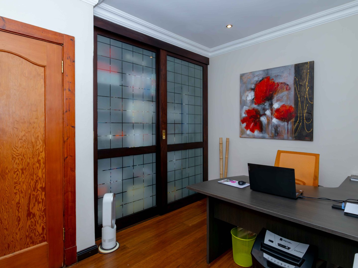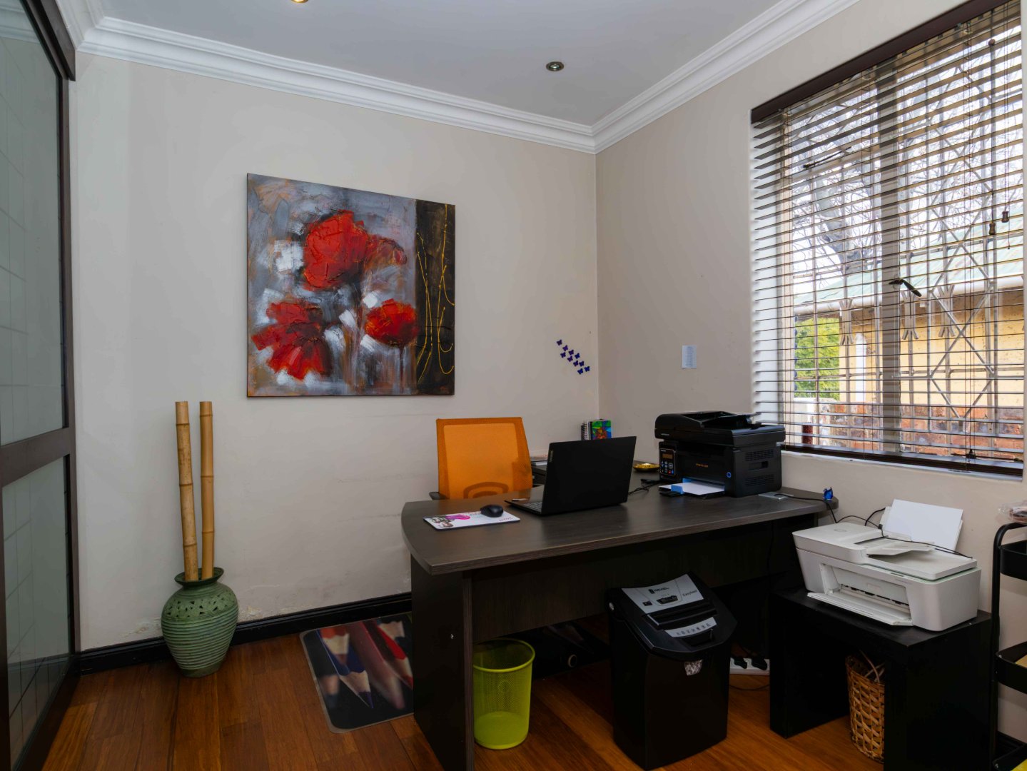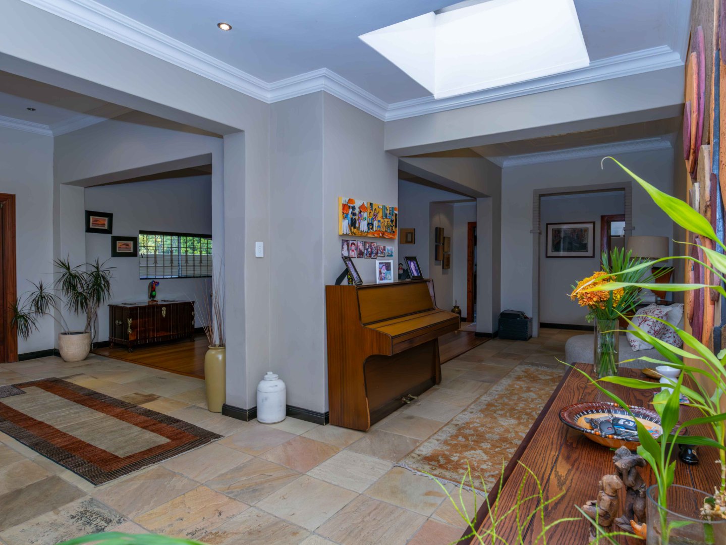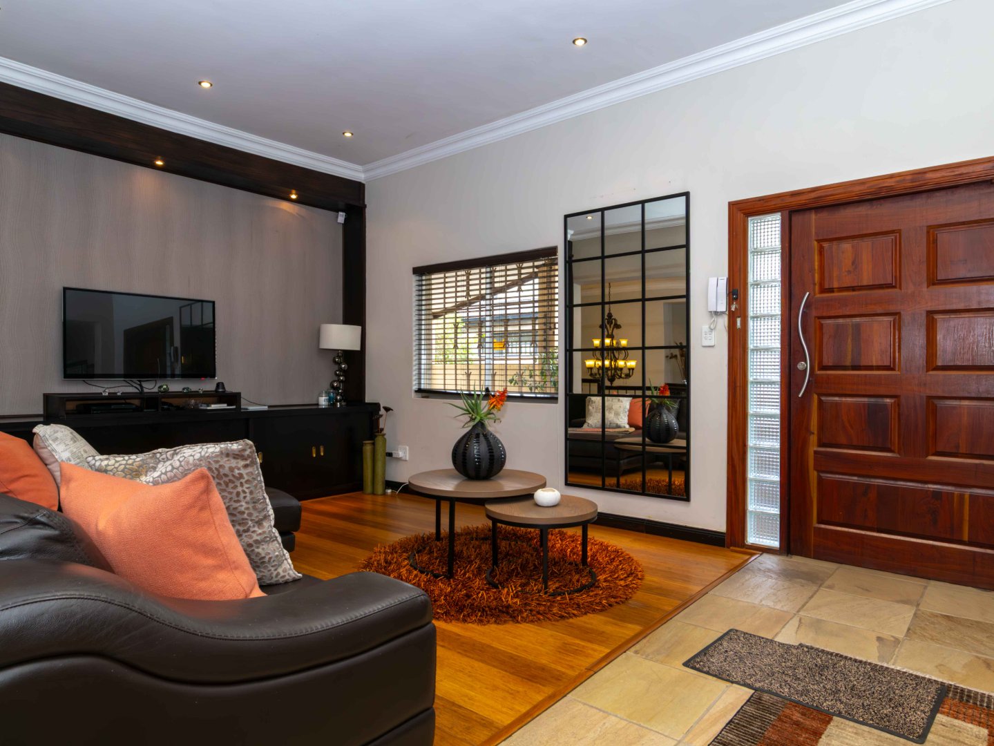 The chef’s kitchen is a showpiece, featuring premium appliances, generous workspace, a scullery, and laundry crafted for both grand dinner parties and everyday inspiration. Whether it’s dinner in the elegant dining room or sundowners on the patio overlooking Johannesburg’s skyline, every space is designed to impress.