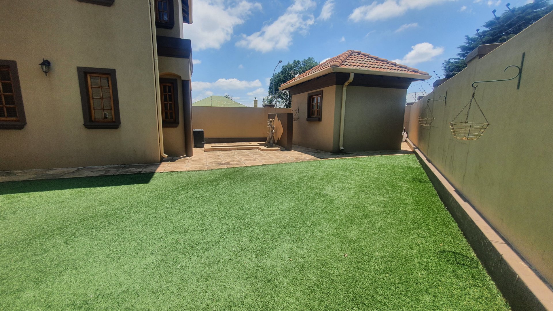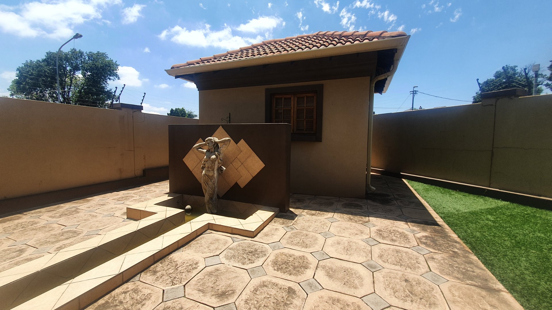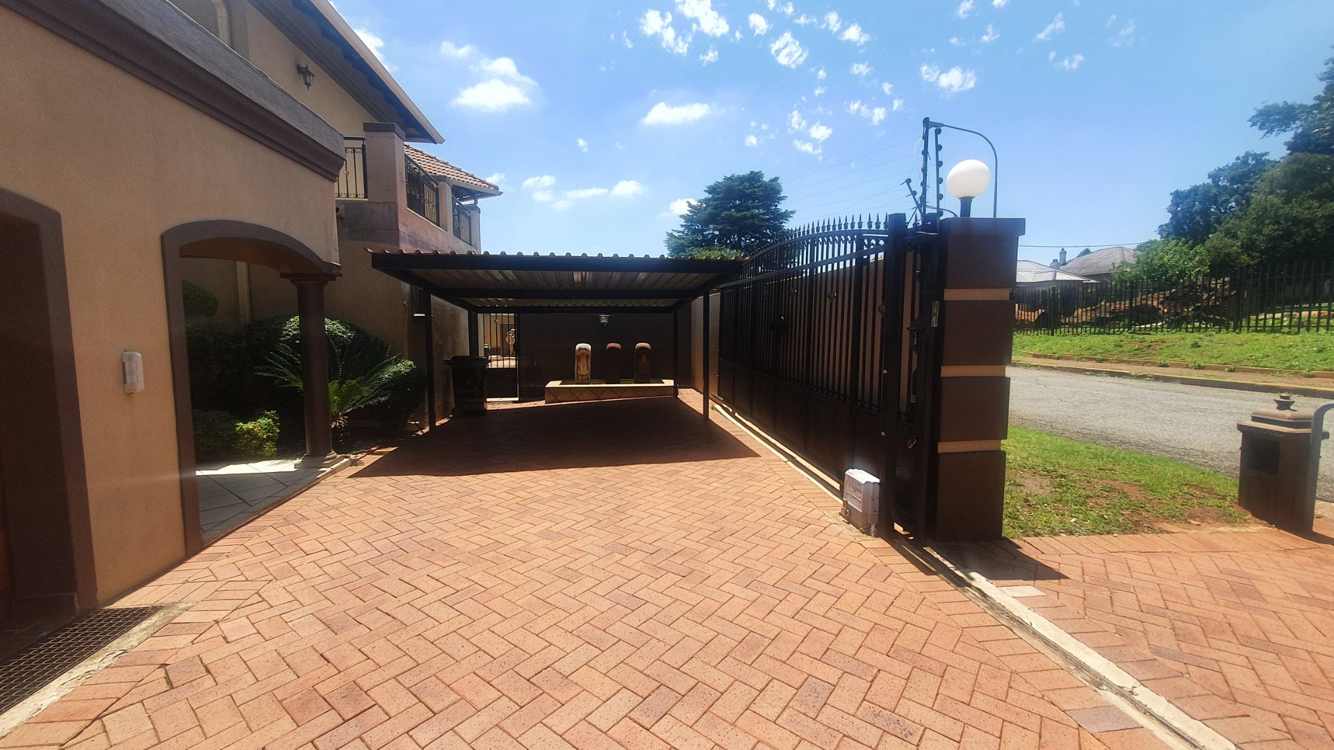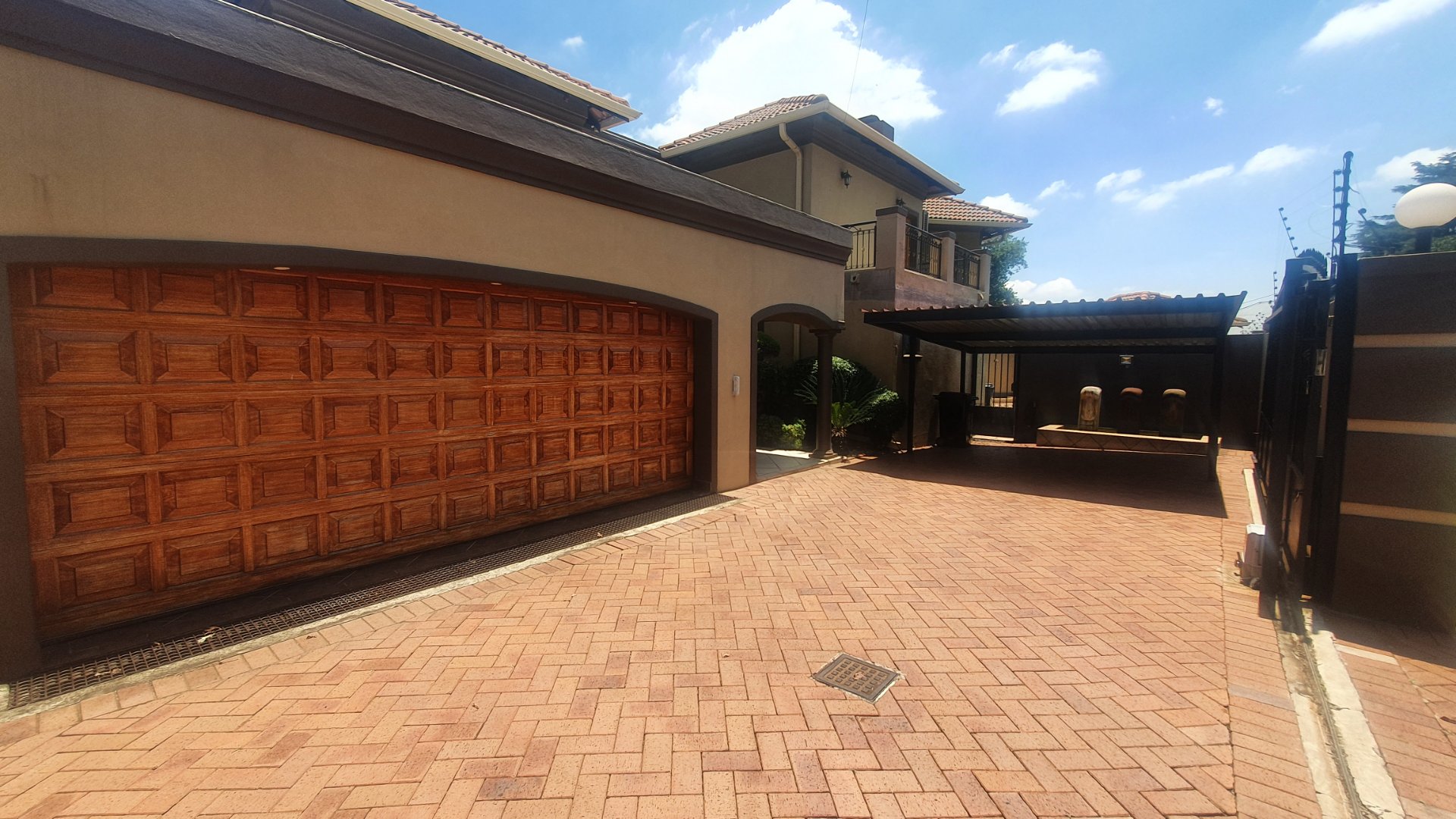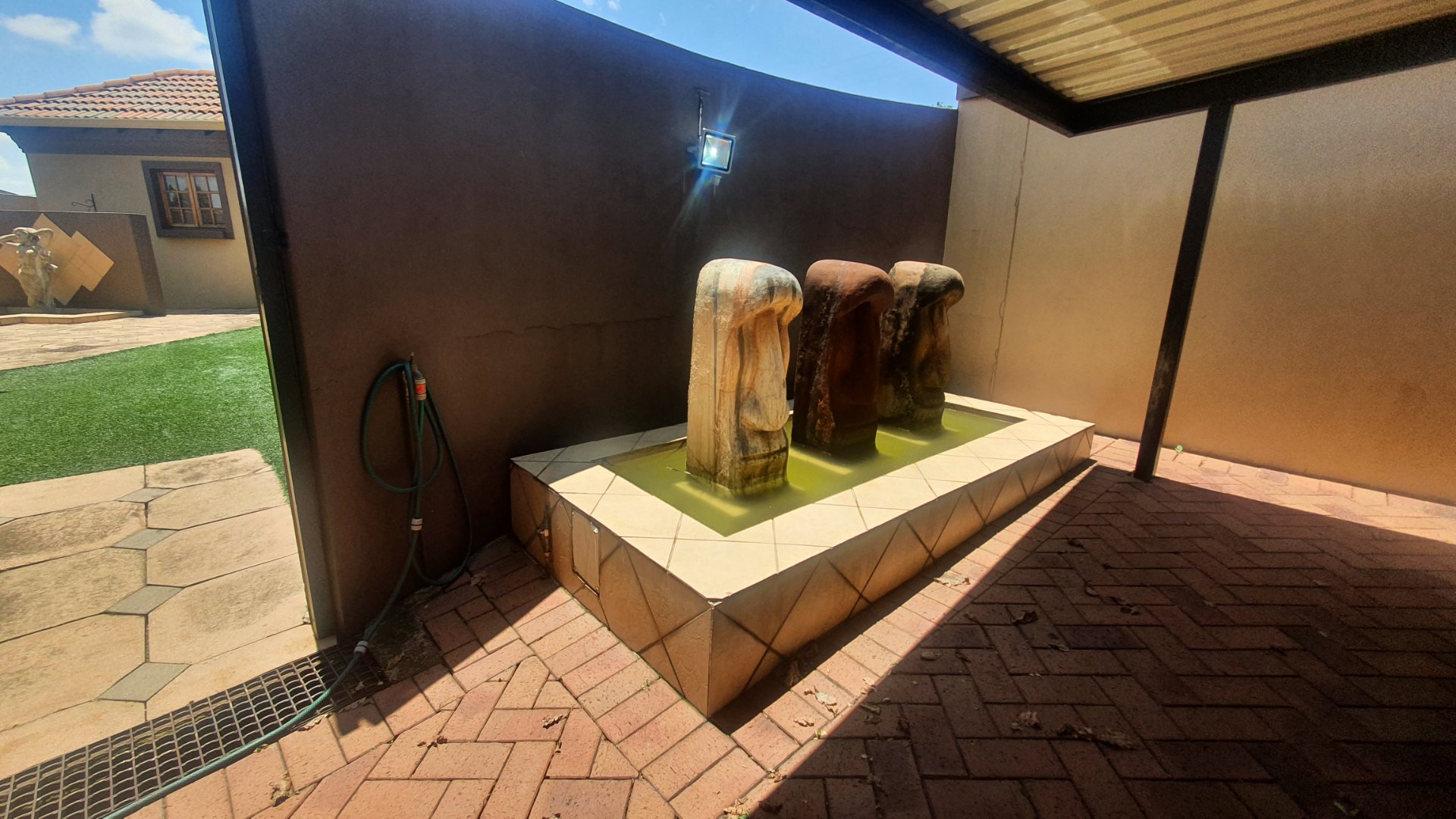 This house can fit the whole family. The property is close to outstanding schools, has easy access to all the highways, and was constructed with clay bricks and a three meter wall to ensure durability. In addition to a carport and a sizable paved area to park at least two additional vehicles, there is a double garage with a beautiful remote controlled Meranti door. There are several water features, and you can fall asleep to the sound of running water in your yard.