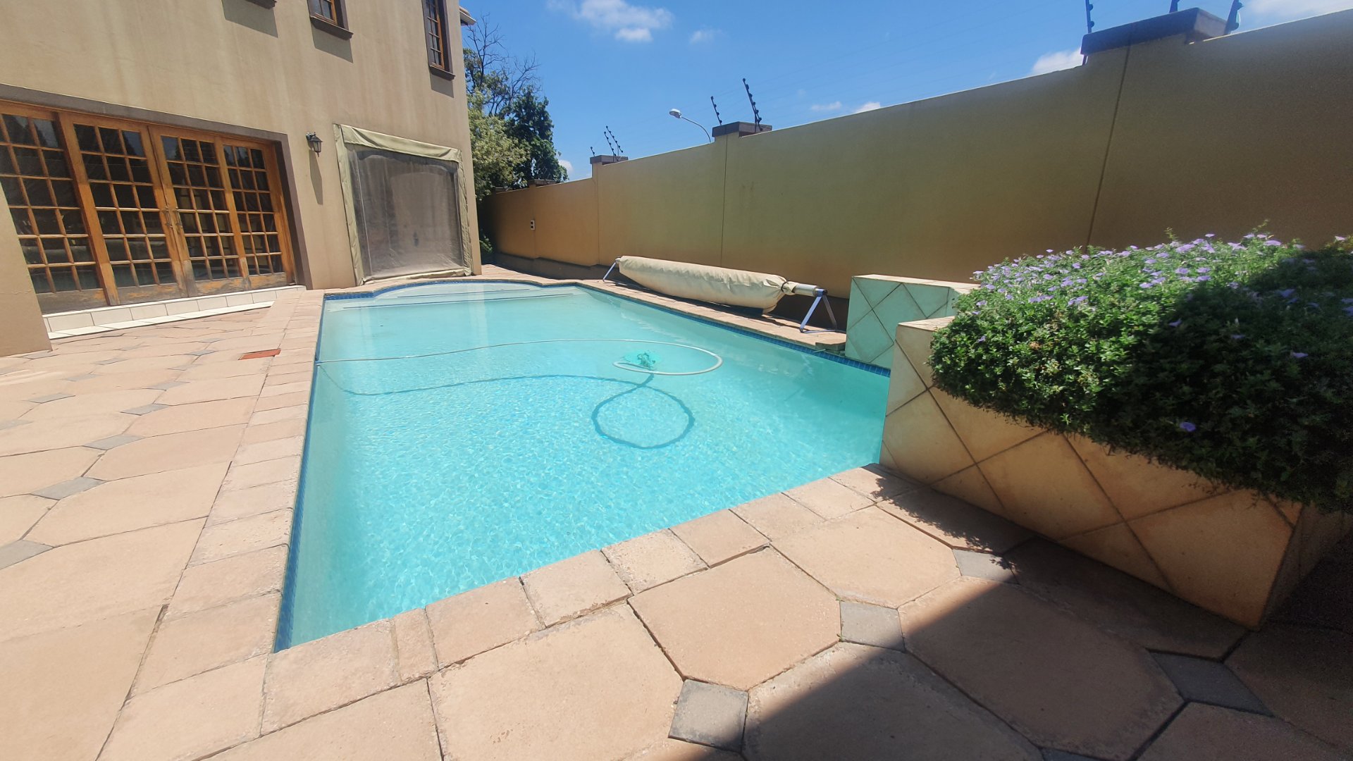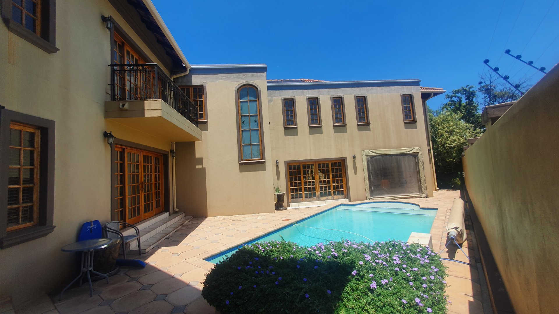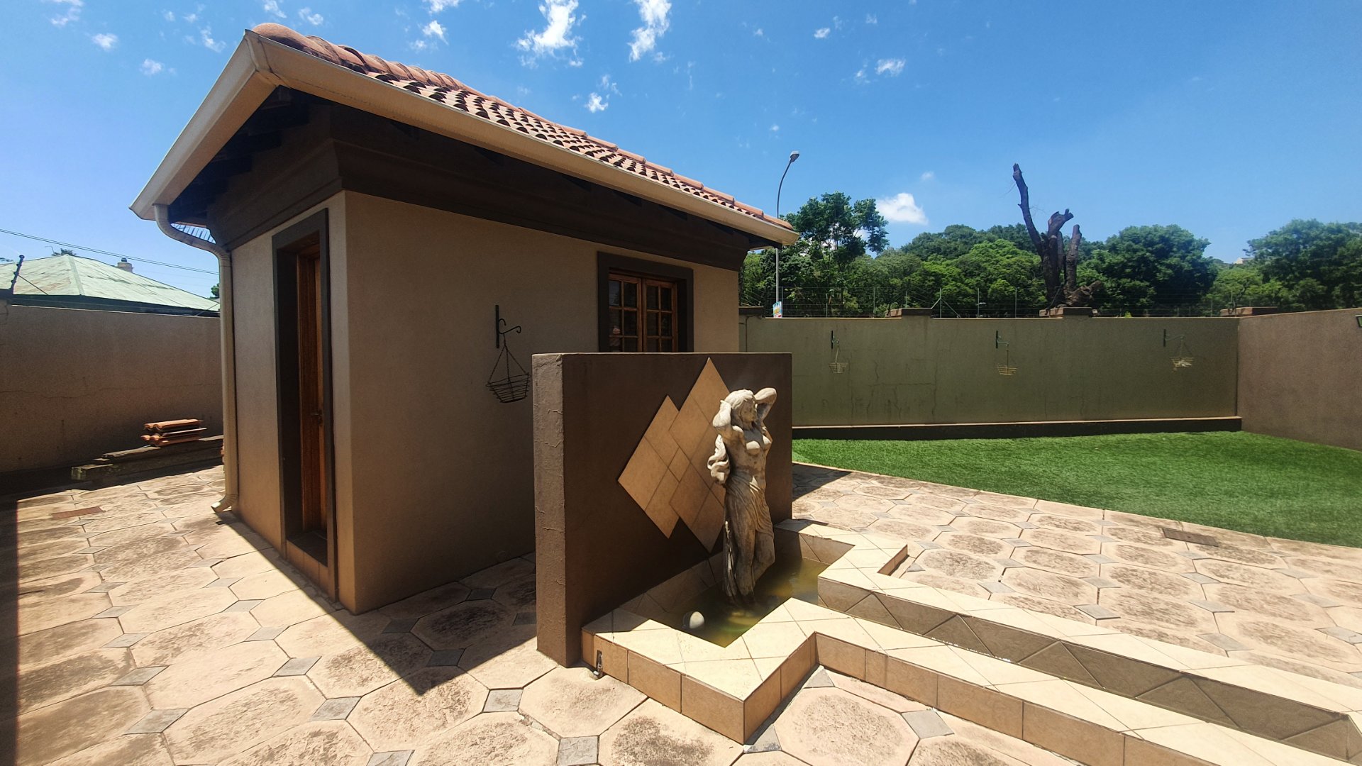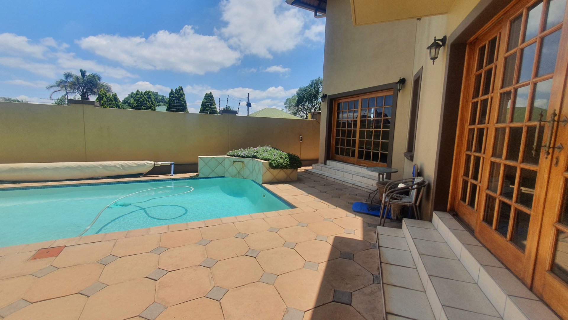 This house can fit the whole family. The property is close to outstanding schools, has easy access to all the highways, and was constructed with clay bricks and a three meter wall to ensure durability. In addition to a carport and a sizable paved area to park at least two additional vehicles, there is a double garage with a beautiful remote controlled Meranti door. There are several water features, and you can fall asleep to the sound of running water in your yard.