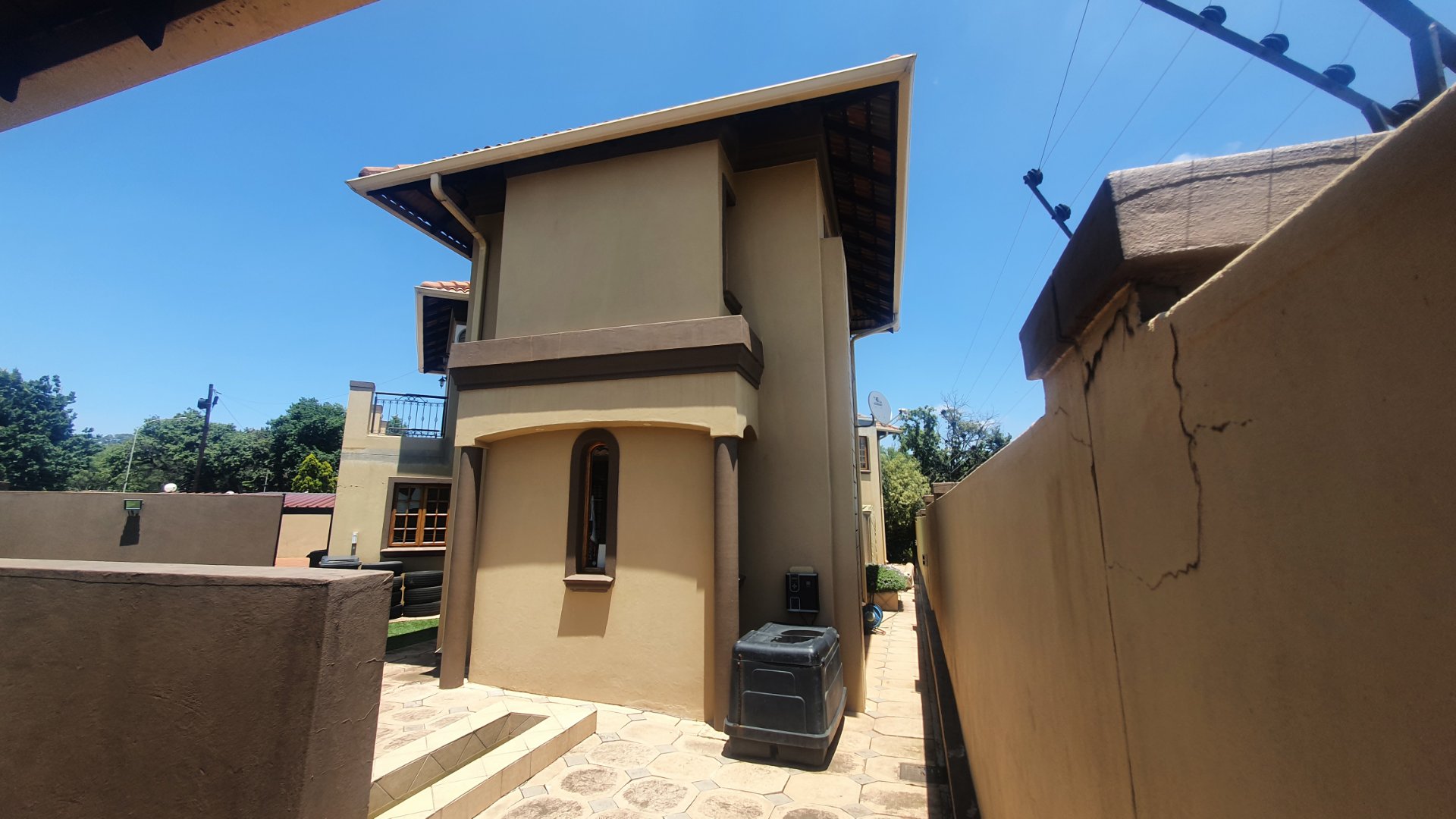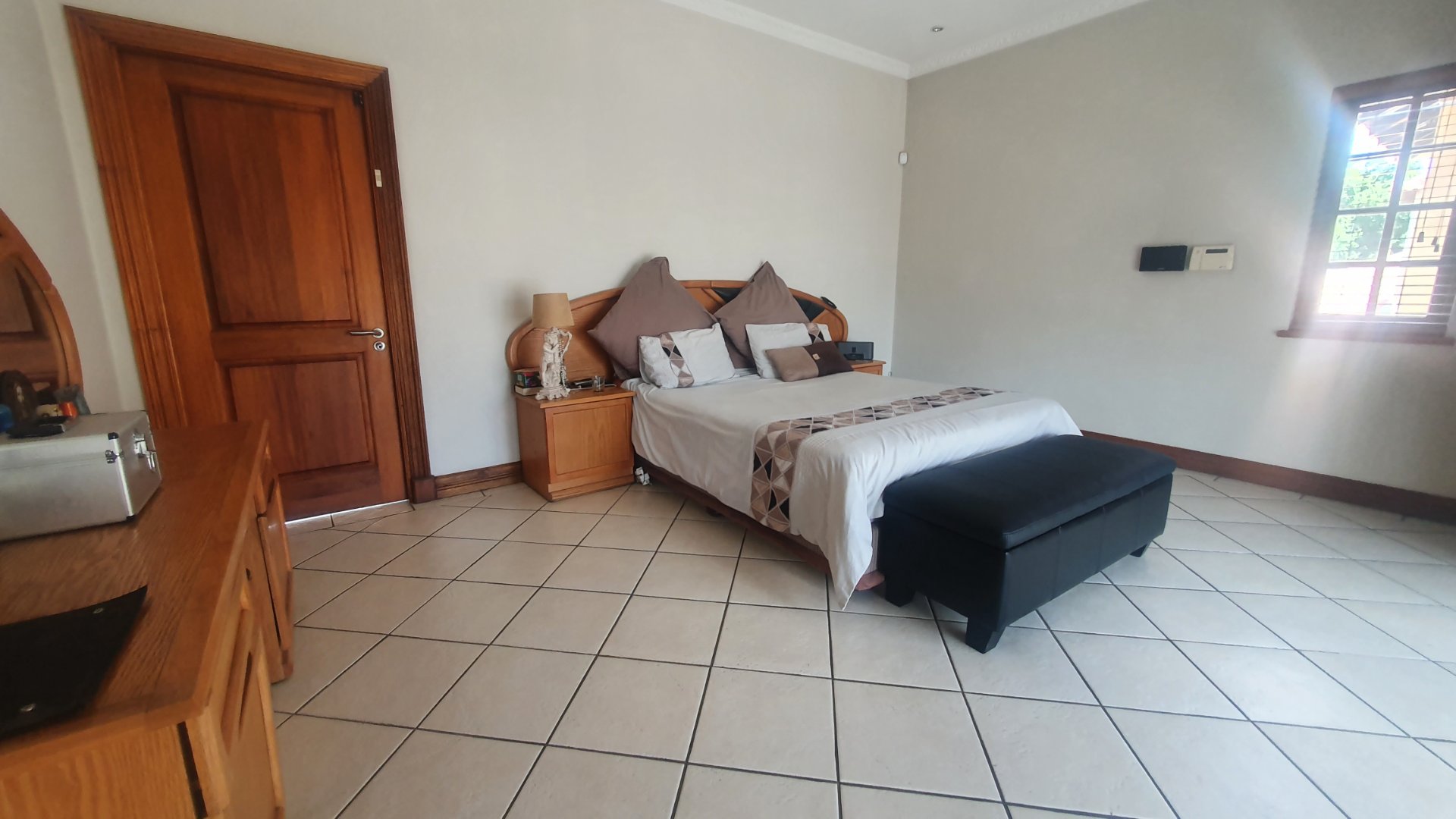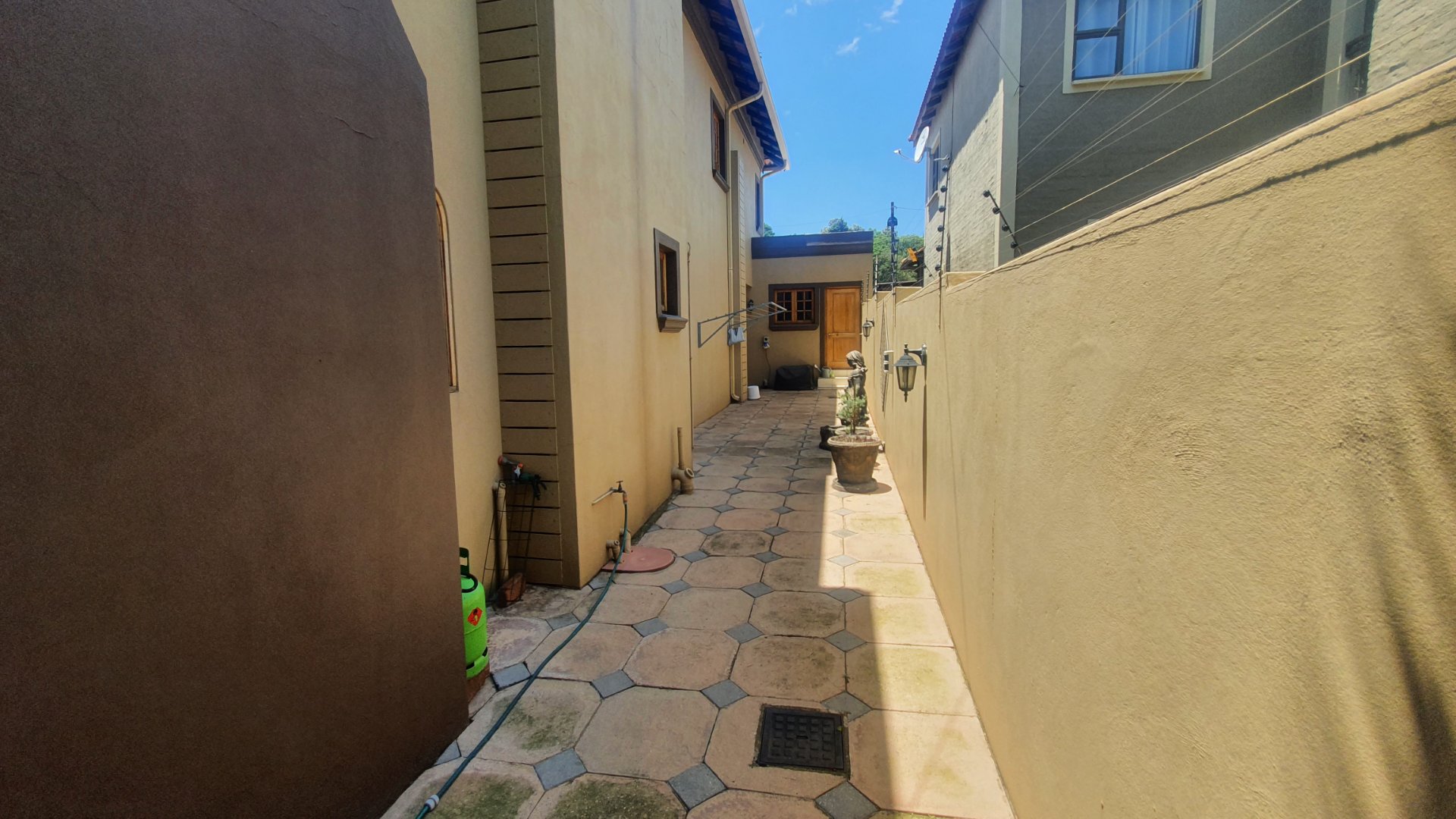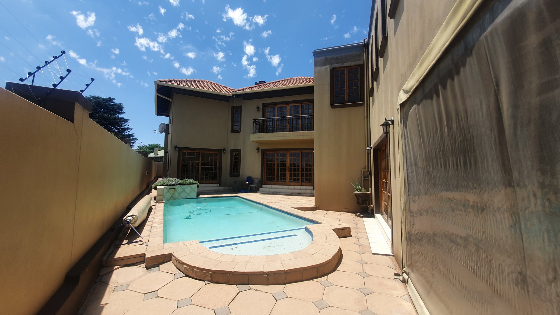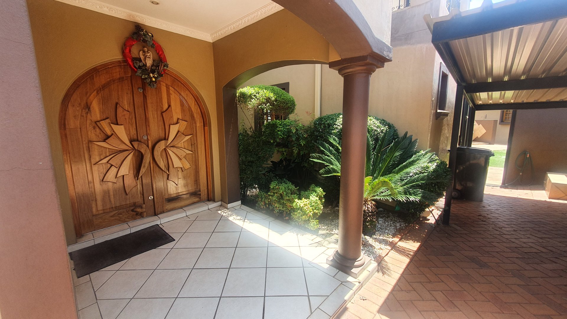 This house can fit the whole family. The property is close to outstanding schools, has easy access to all the highways, and was constructed with clay bricks and a three meter wall to ensure durability. In addition to a carport and a sizable paved area to park at least two additional vehicles, there is a double garage with a beautiful remote controlled Meranti door. There are several water features, and you can fall asleep to the sound of running water in your yard.