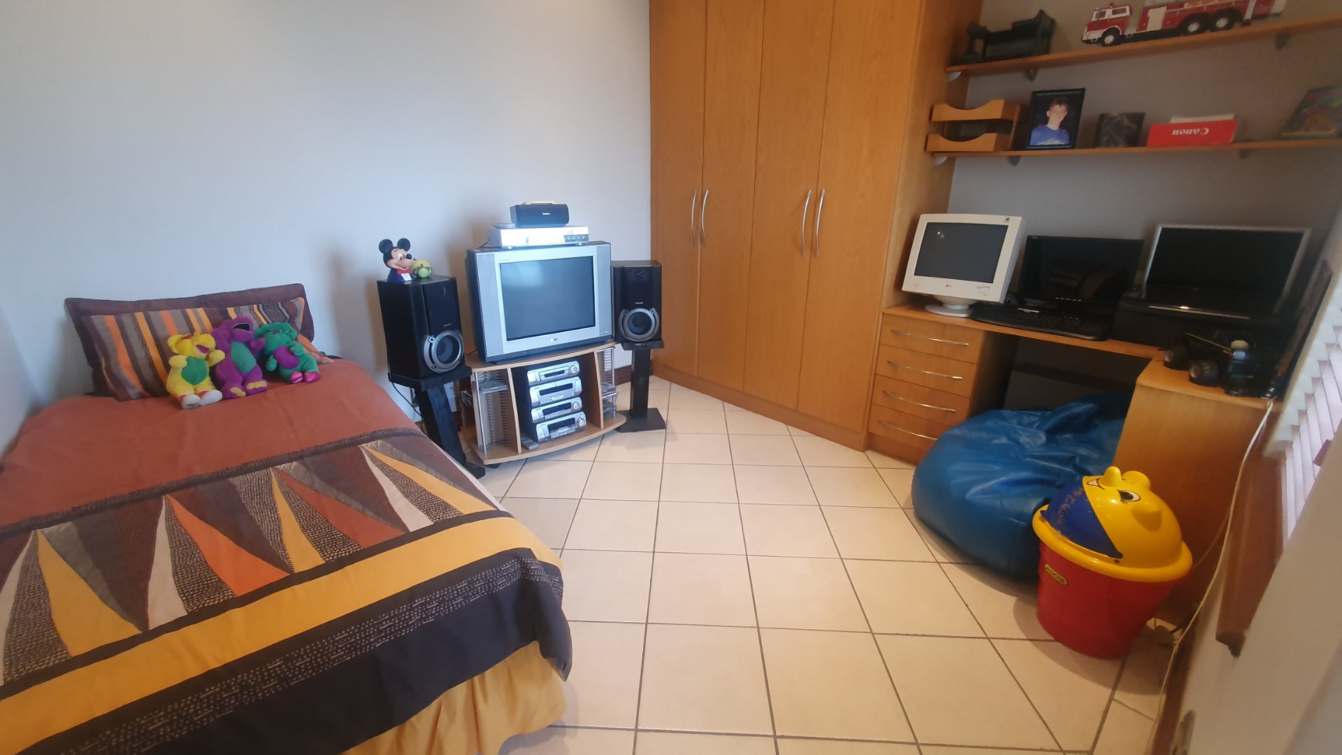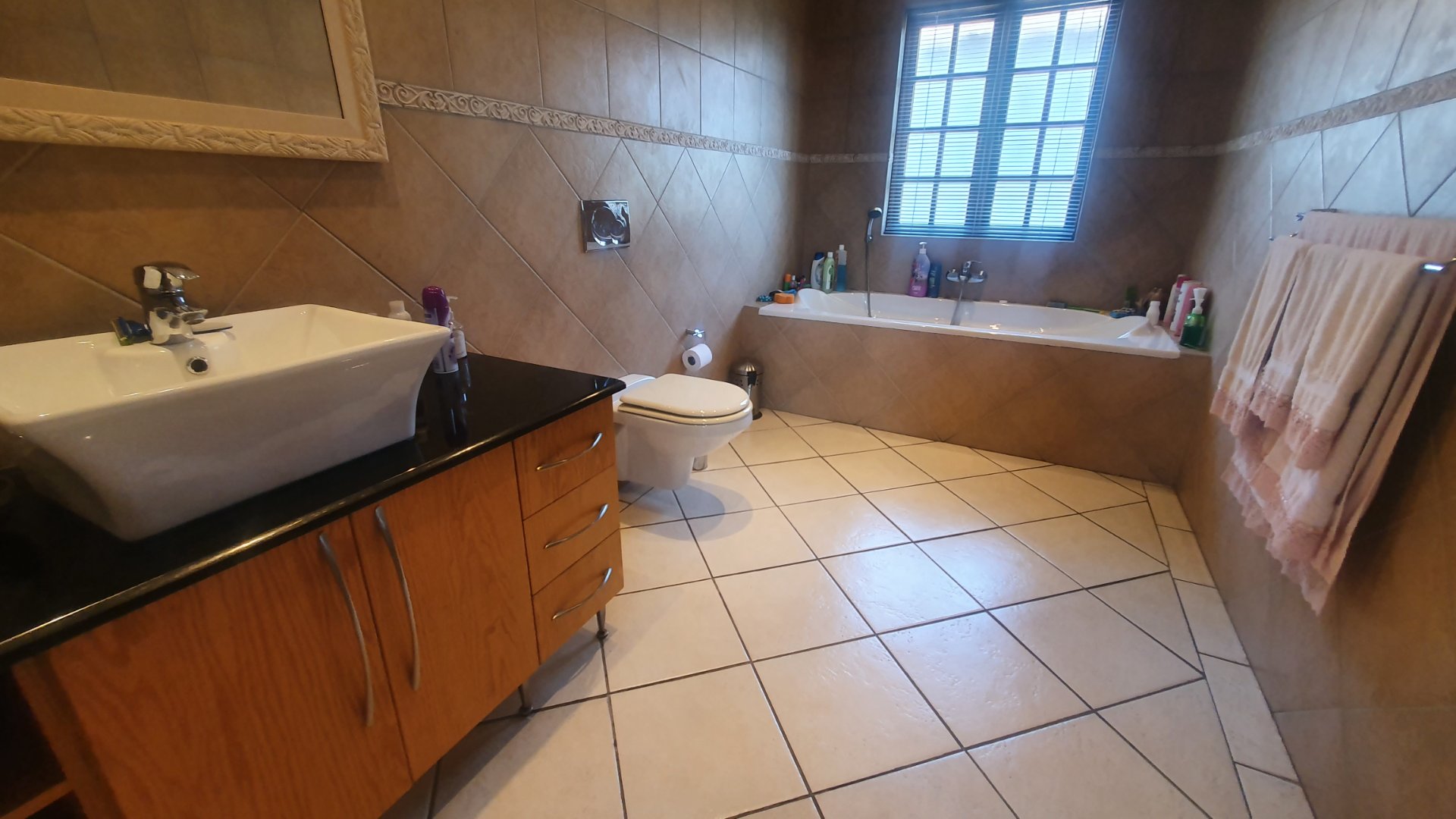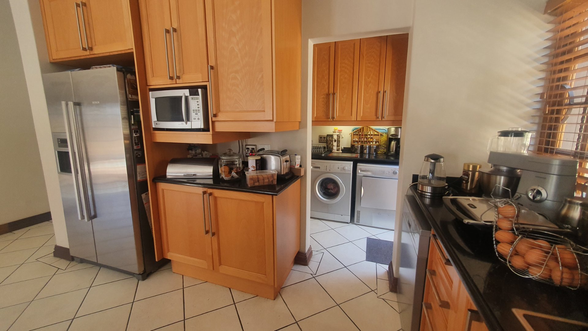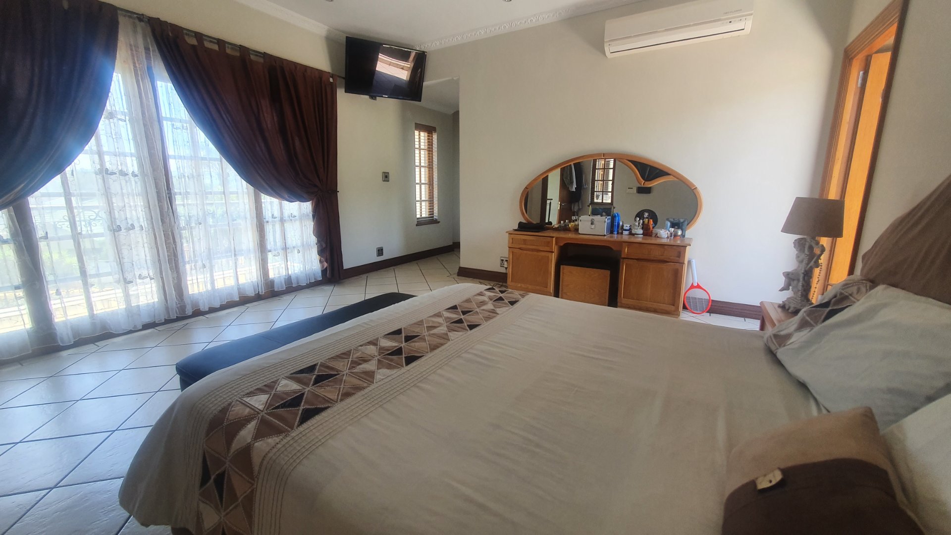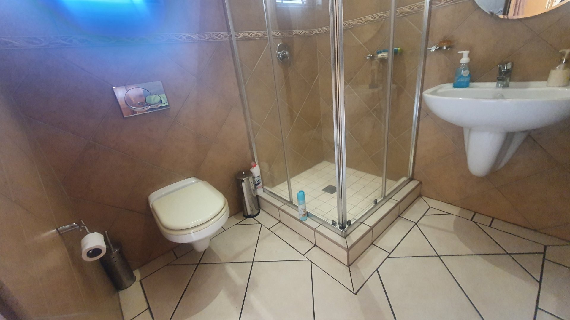 This house can fit the whole family. The property is close to outstanding schools, has easy access to all the highways, and was constructed with clay bricks and a three meter wall to ensure durability. In addition to a carport and a sizable paved area to park at least two additional vehicles, there is a double garage with a beautiful remote controlled Meranti door. There are several water features, and you can fall asleep to the sound of running water in your yard.