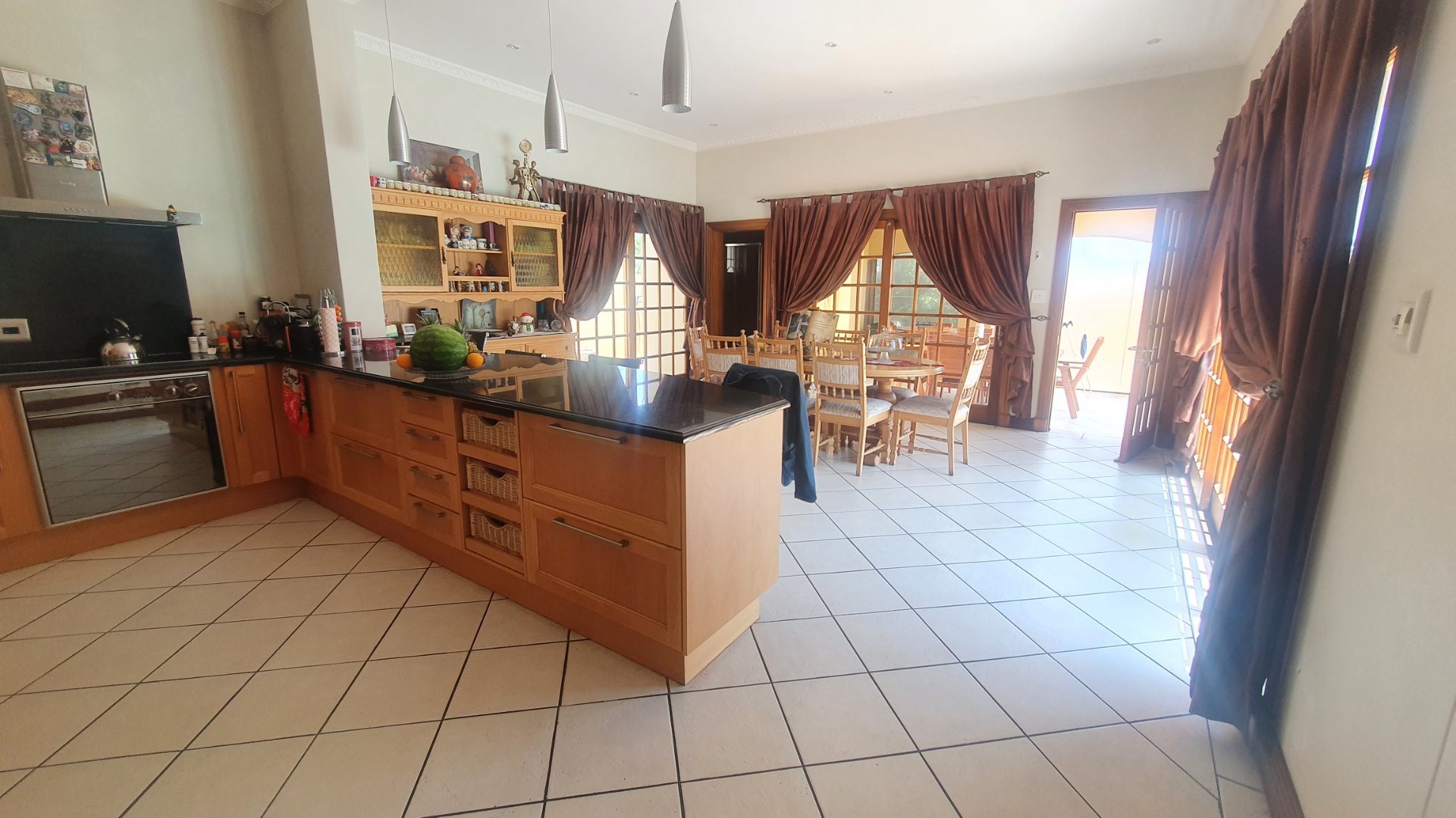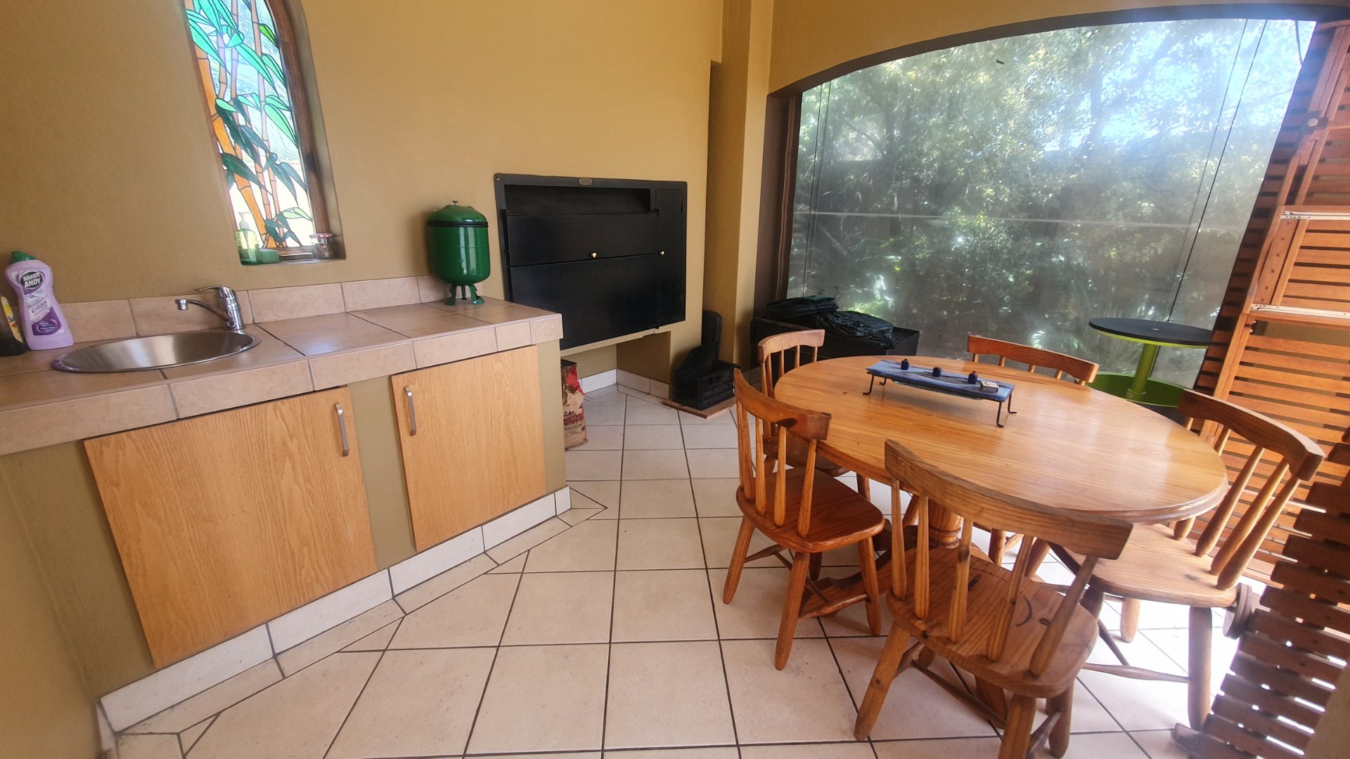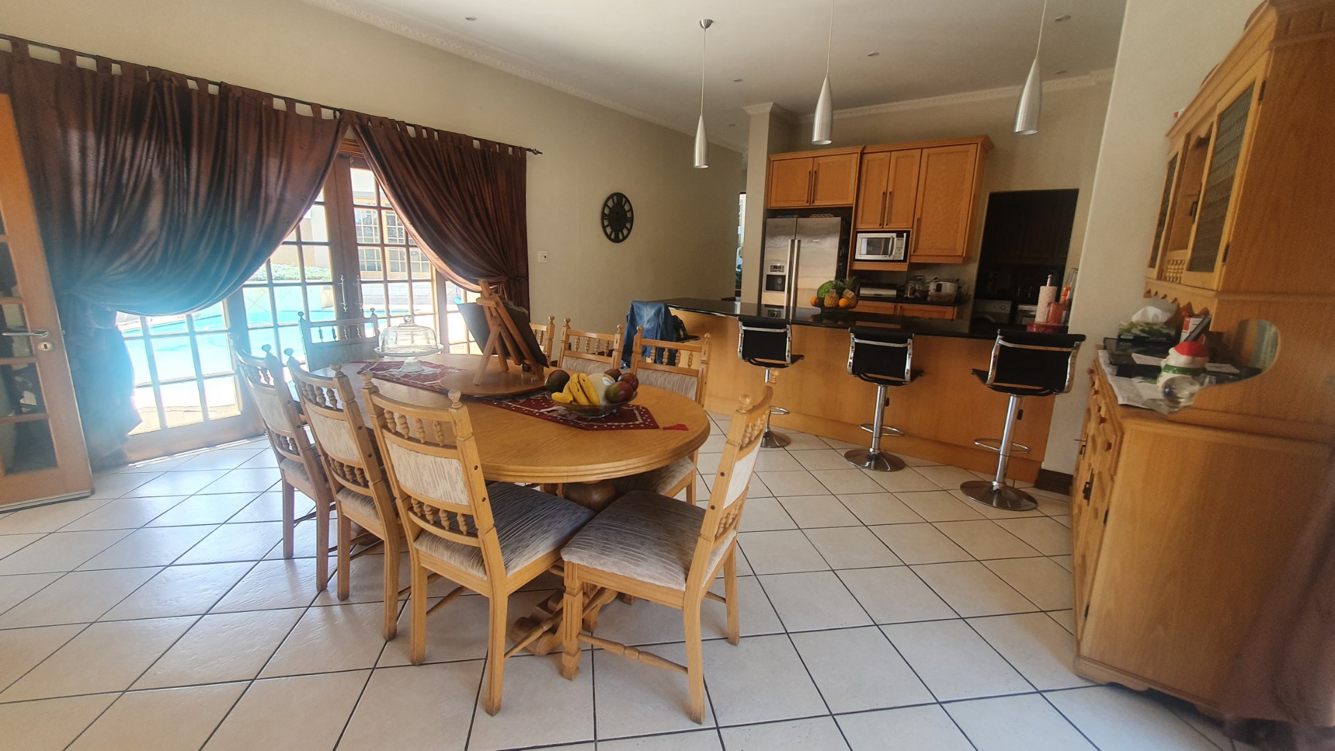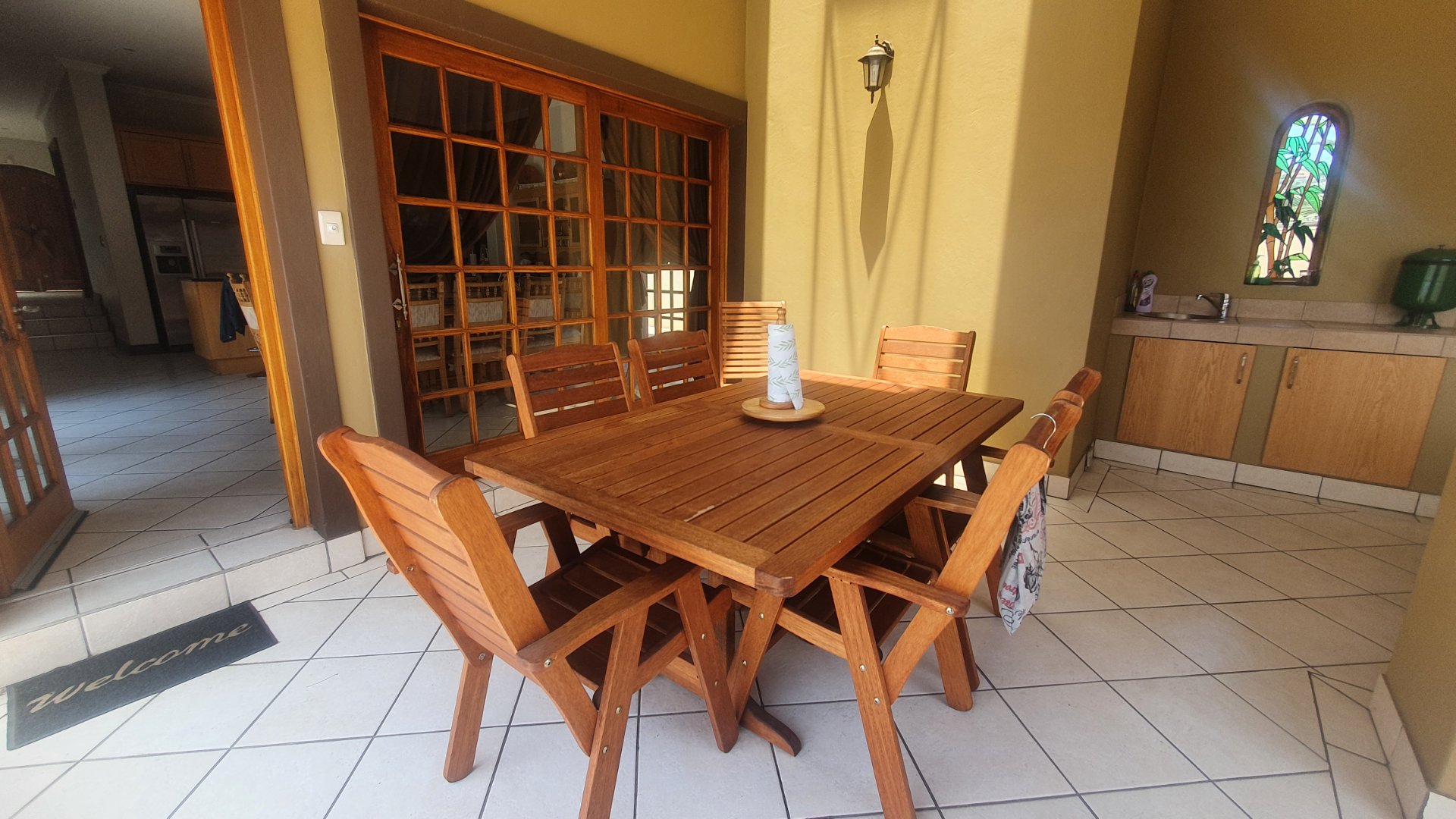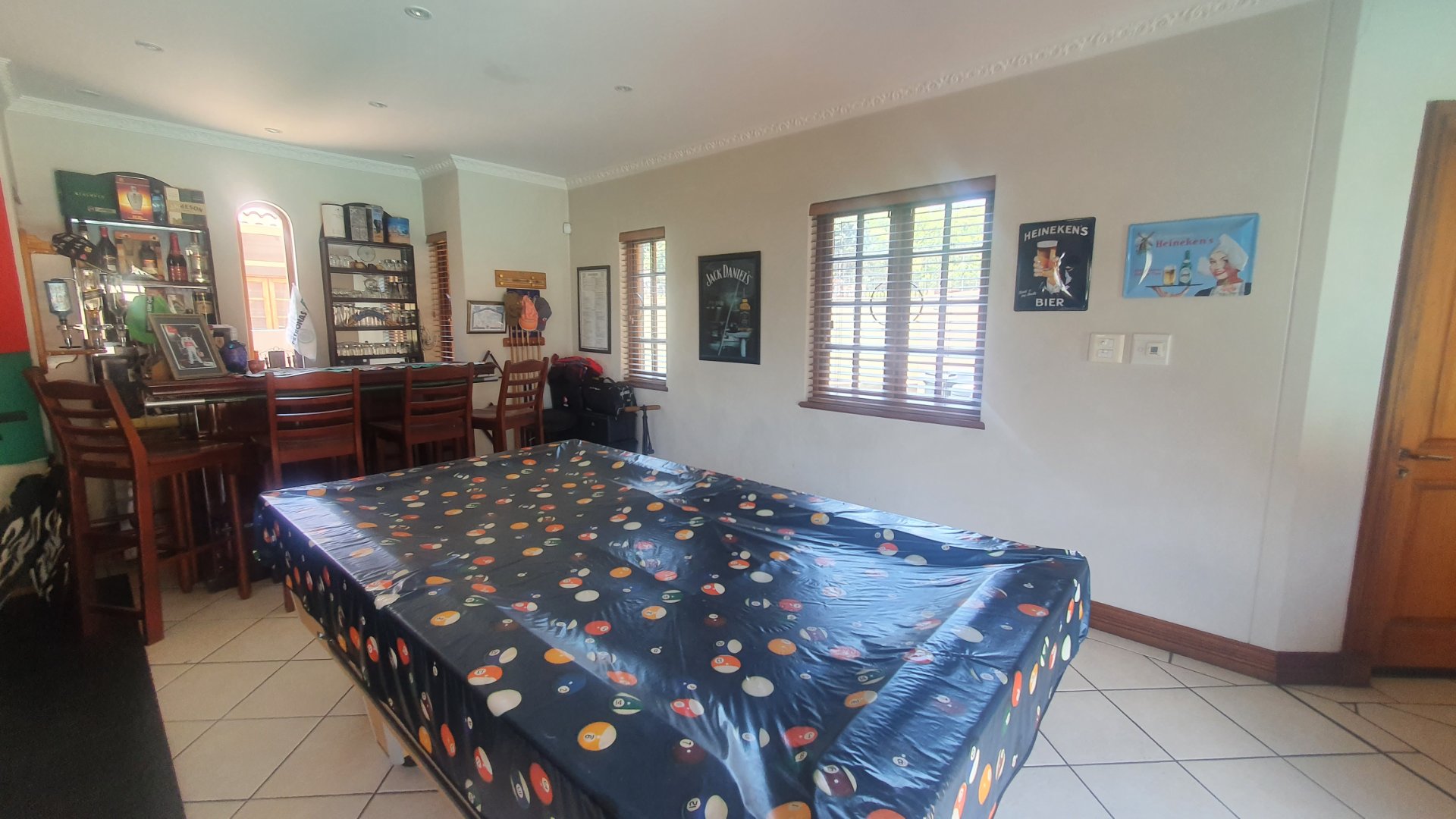 The entire family will have the most fun and relaxation in your entertainment room. The sophisticated lounge opens into the games room with a built in pub and has a lovely working fireplace. The excellent kitchen is open to the cozy dining area and a covered patio for outdoor braai gatherings.