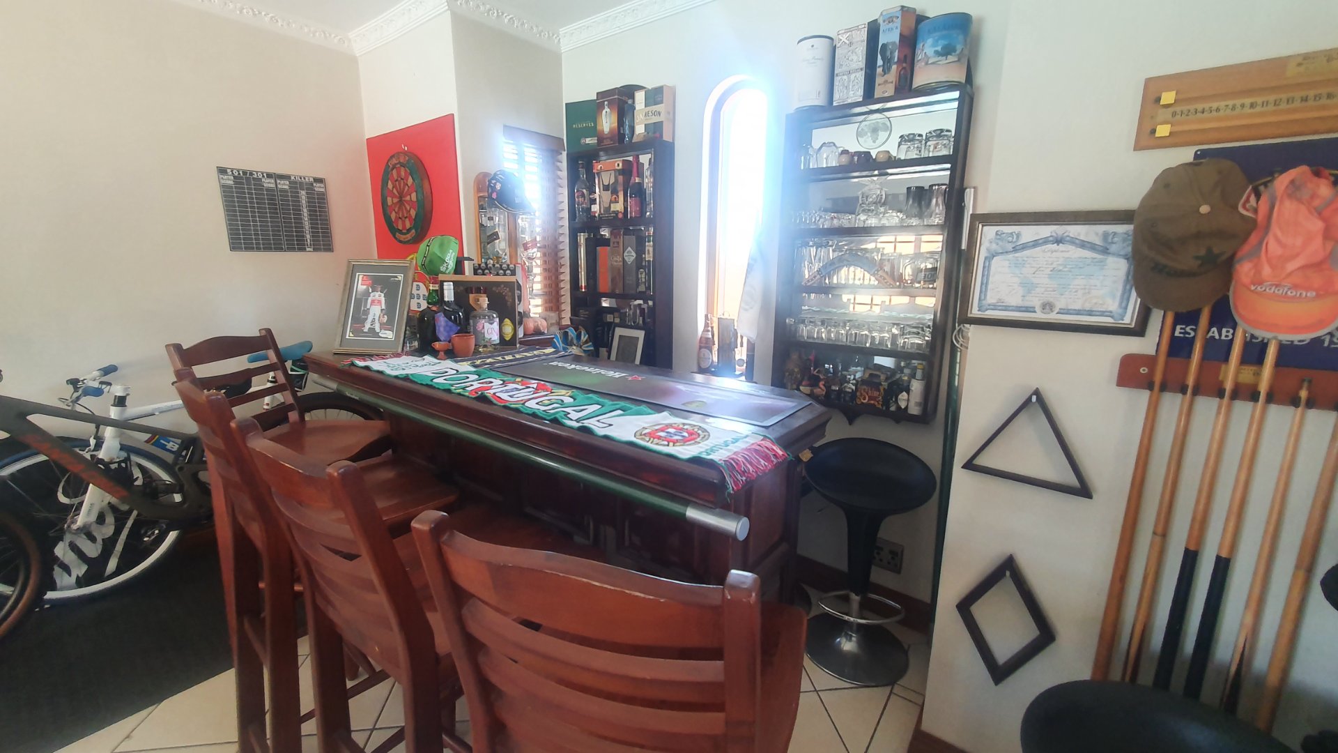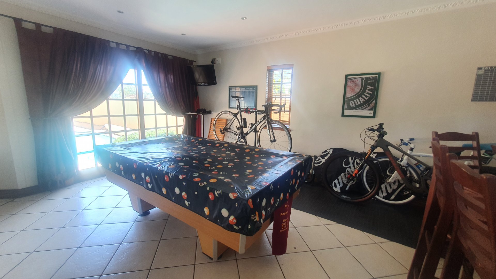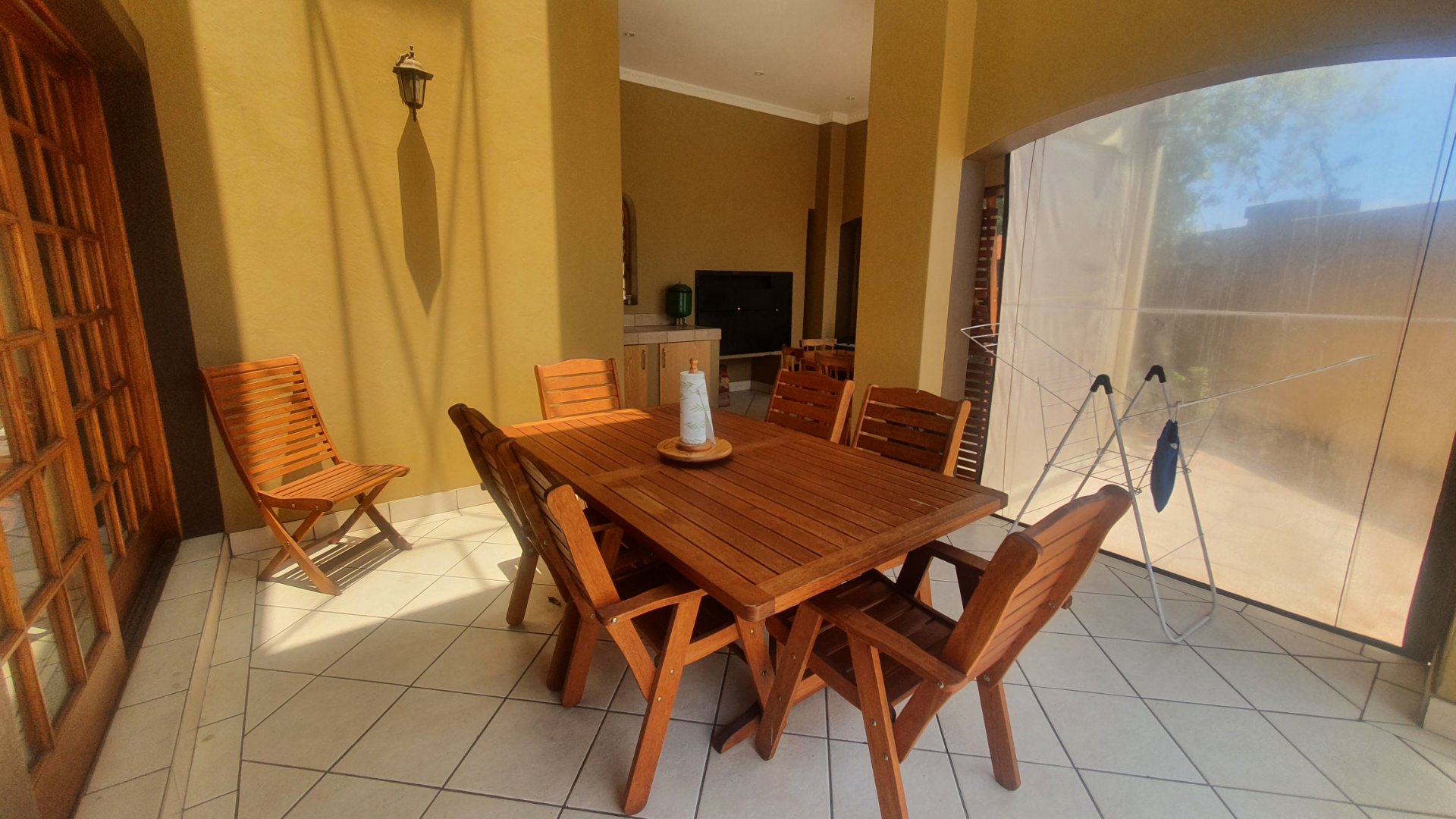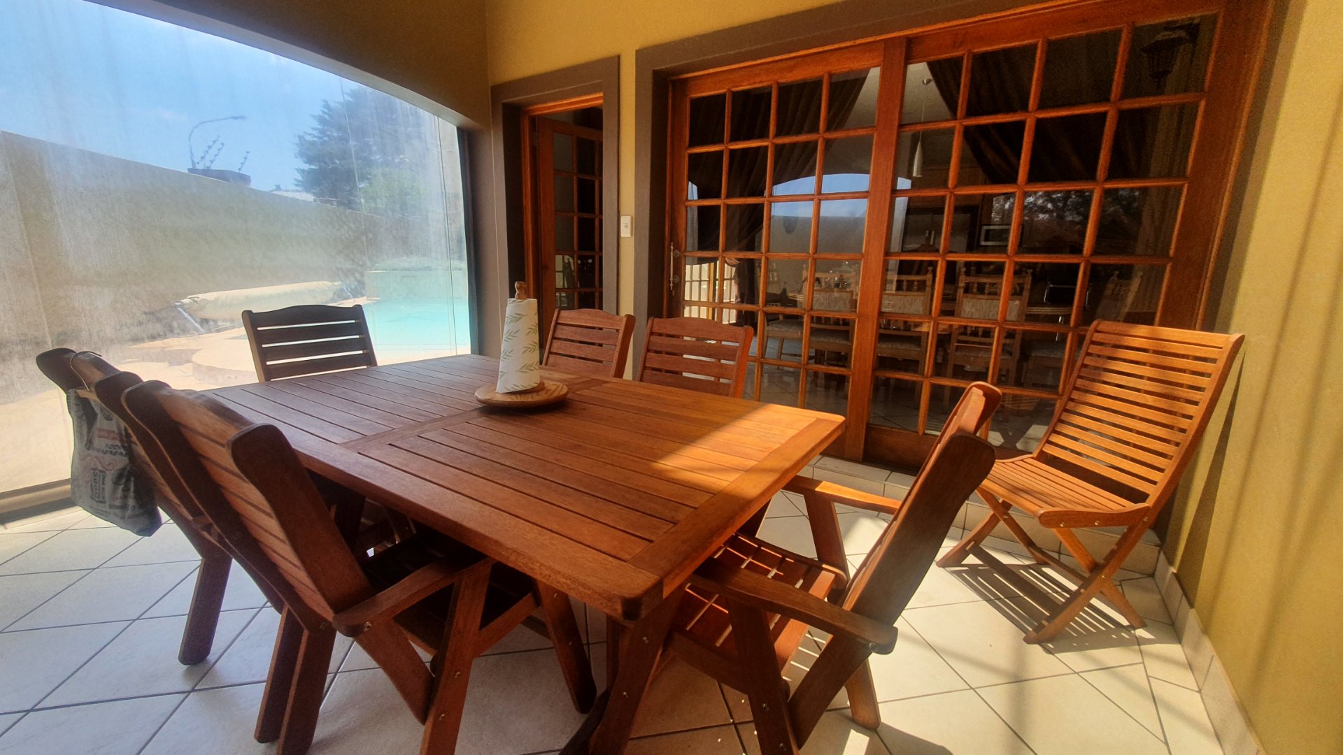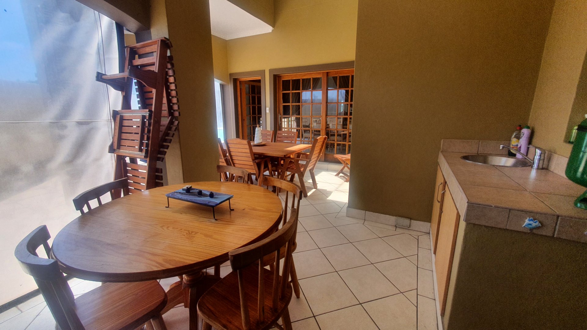 The entire family will have the most fun and relaxation in your entertainment room. The sophisticated lounge opens into the games room with a built in pub and has a lovely working fireplace. The excellent kitchen is open to the cozy dining area and a covered patio for outdoor braai gatherings.