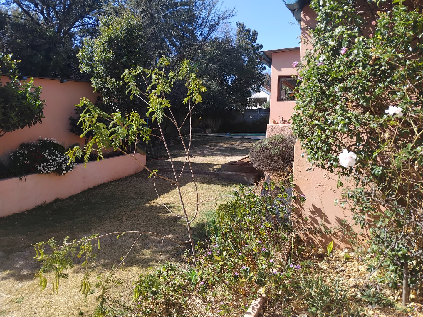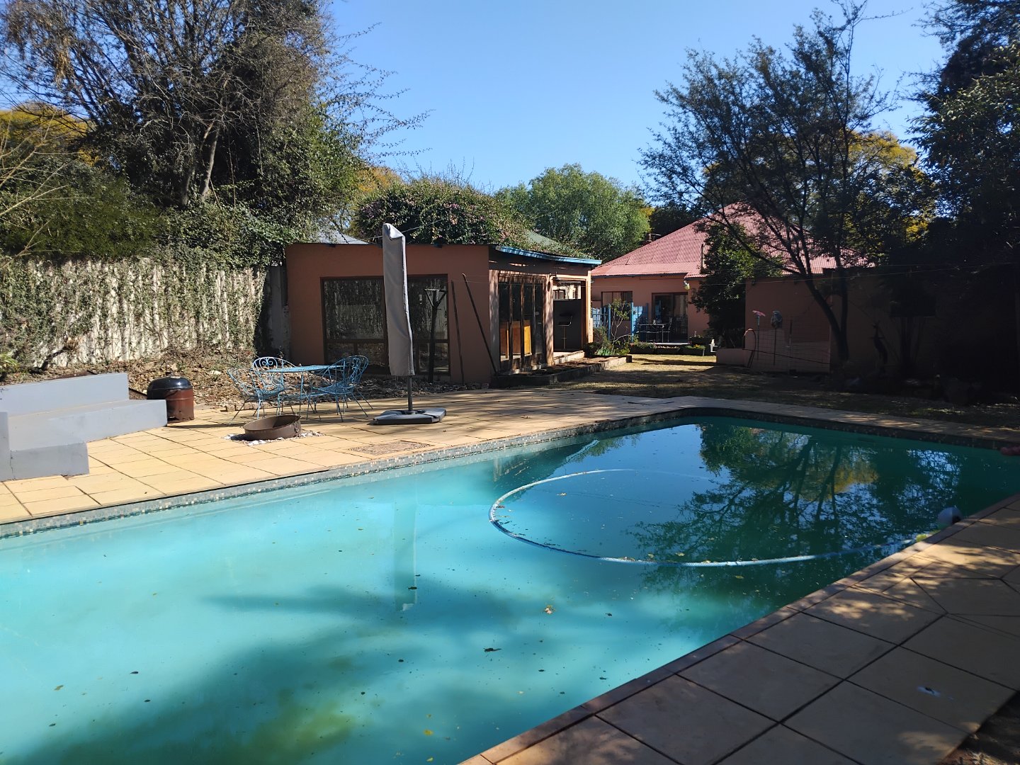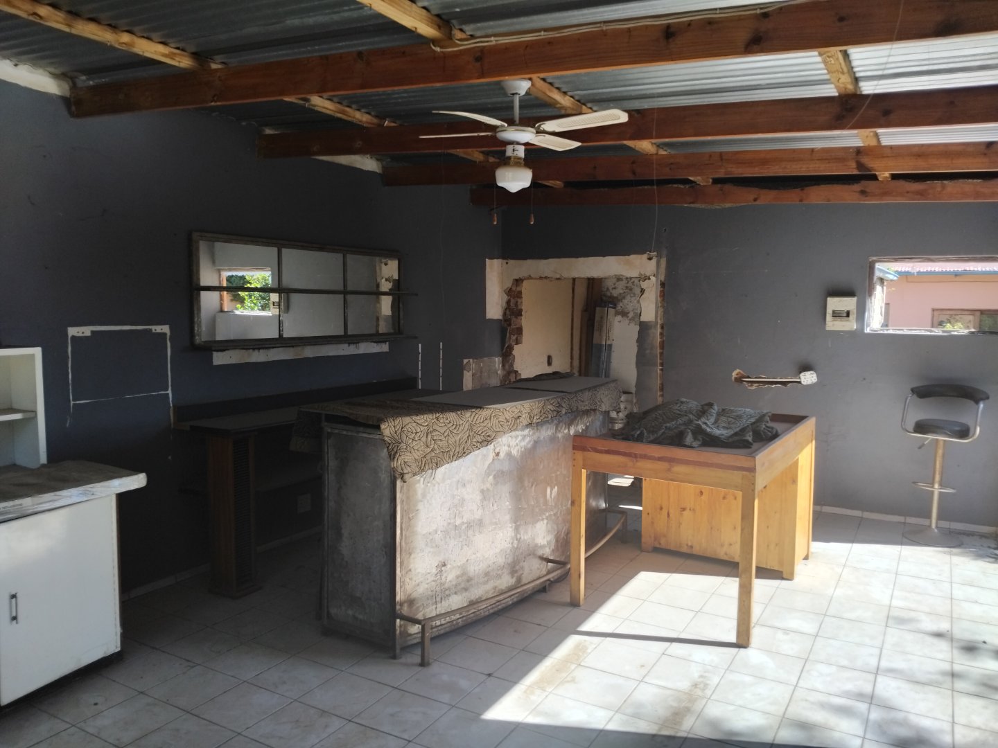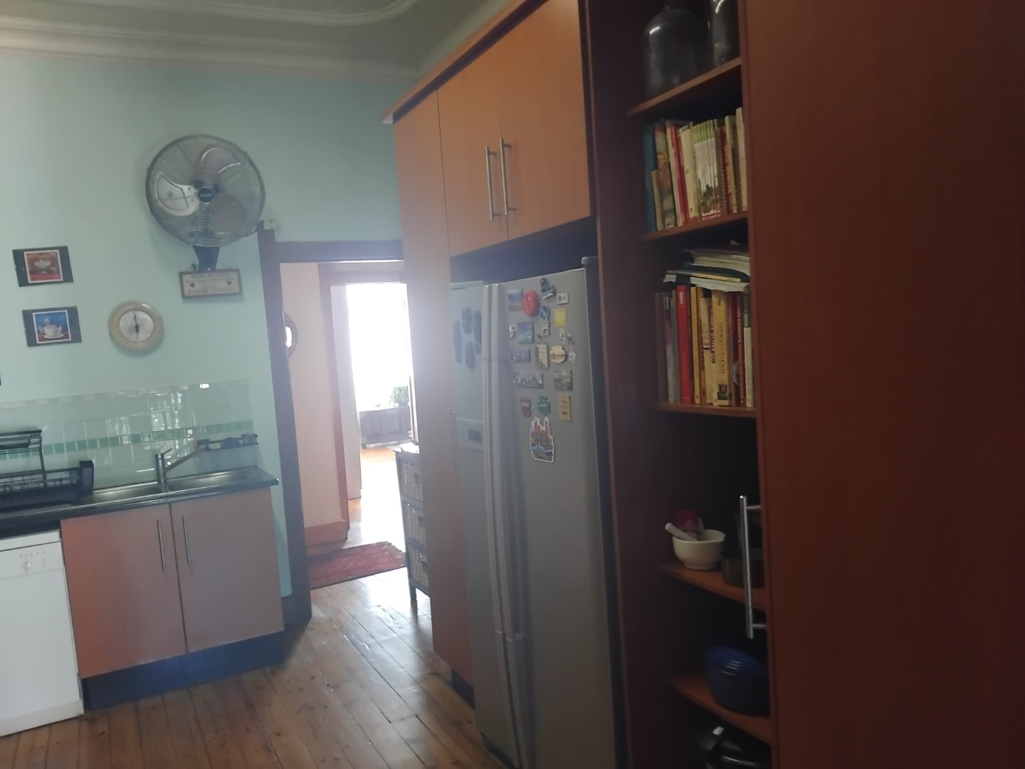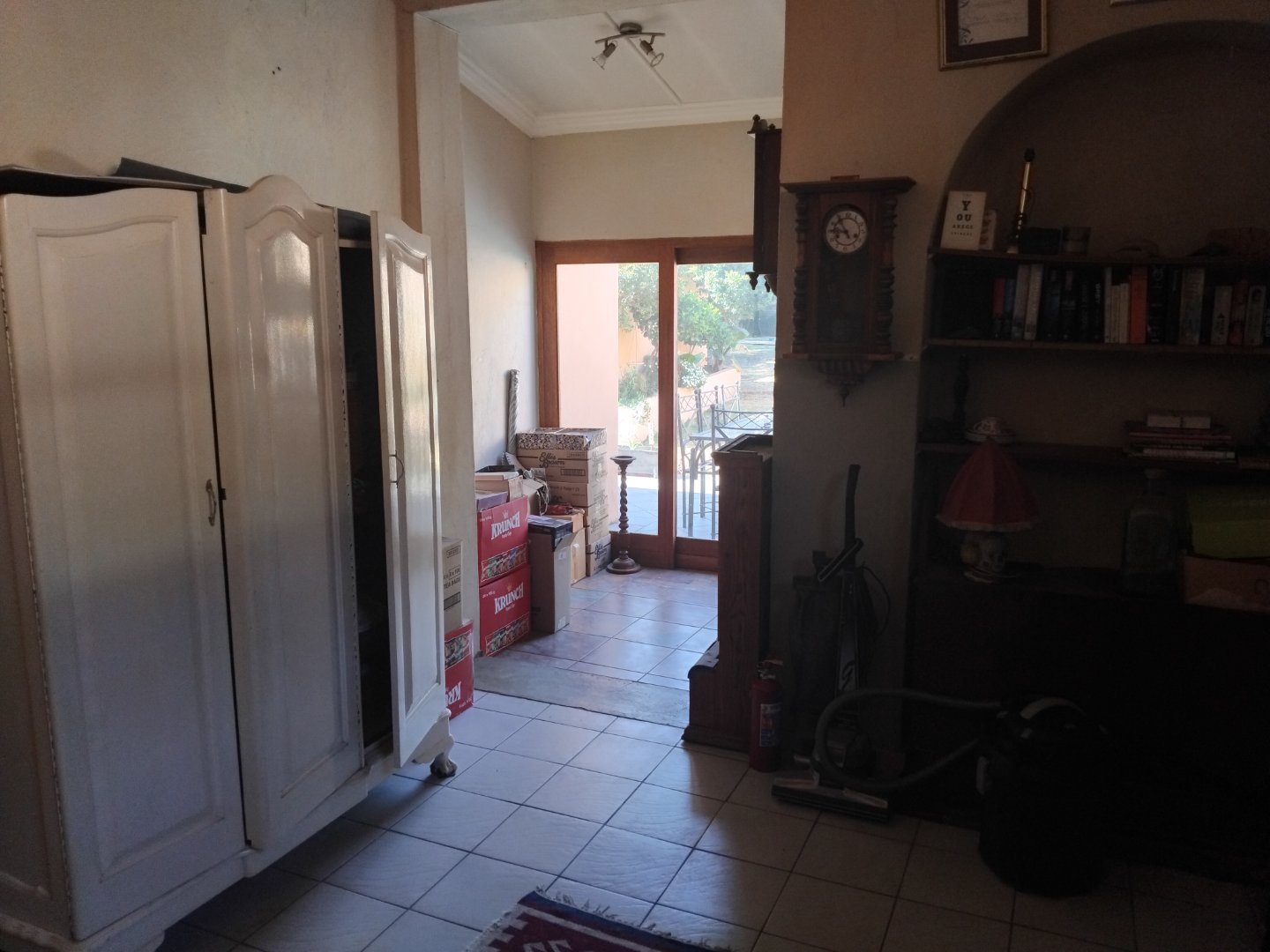 The open-plan kitchen is a highlight, featuring granite tops and a gas stove, perfect for family meals and entertaining. The home includes a large lounge, a braai area, staff accommodation, and additional parking.