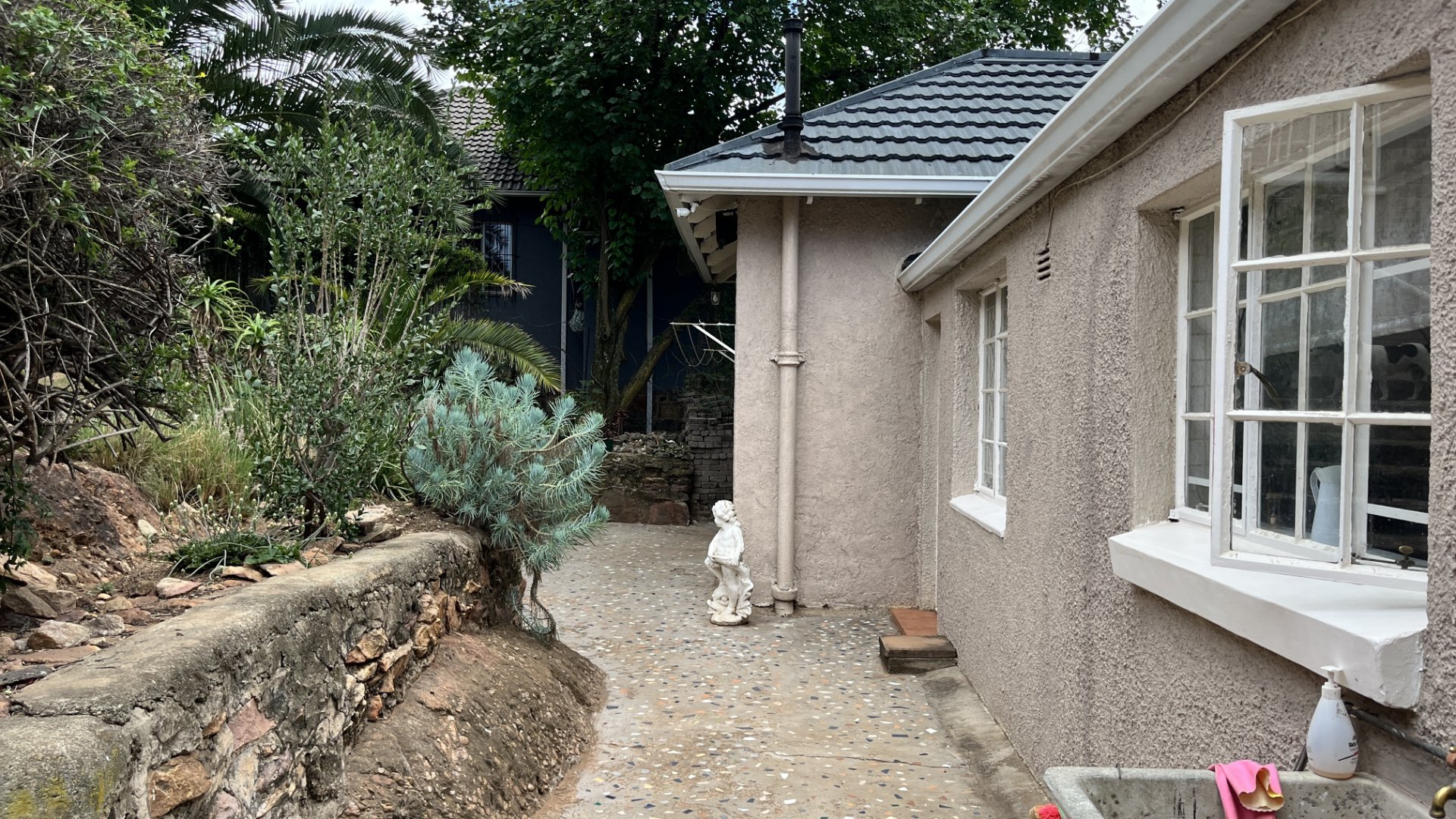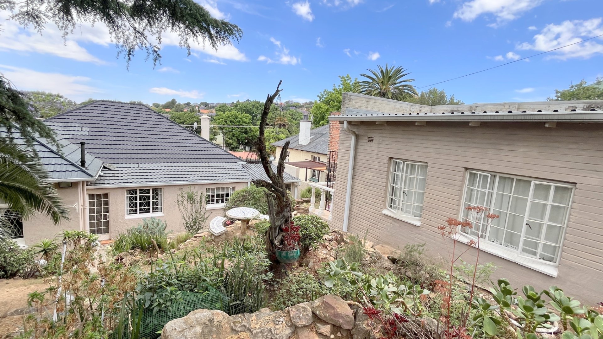 Welcome to this beautiful home that is sunny and cozy with lots of character. This is truly a gem. Build on a raised foundation. The stand is a double stand with bachelor garden cottage. There is CCTV Cameras monitoring the gate and the property at all times. Entrance hall leading into the lounge and dining area. The lounge is spacious with a cottage bay window with blinds. Built-in Fire Place. Open plan separate dining area suitable for a 8 seater. Invite your family and friends to join you on the outside covered patio with a braai area great for entertainment. The kitchen is tiled throughout with a gas stove, lots of packing space and a separate scullery. Space for as double fridge. The scullery can accommodate 3 appliances. The main ensuite is large with a full bathroom and cottage bay windows. The home has beautiful yellow wooden floors throughout. The 2nd bathroom is newly renovated with a large shower, toilet and basin. This serves the second and third bedroom. The 2nd bedroom is spacious and can accommodate a queen bed. Lots of built-in cupboards. The 3rd bedroom can accommodate a double bed and there is built-in cupboards. There is a additional cupboard space and a attic. The garden cottage is a open plan bachelor with a separate toilet, basin and shower. This home have so much to offer. It is priced exceptionally well for a double stand.