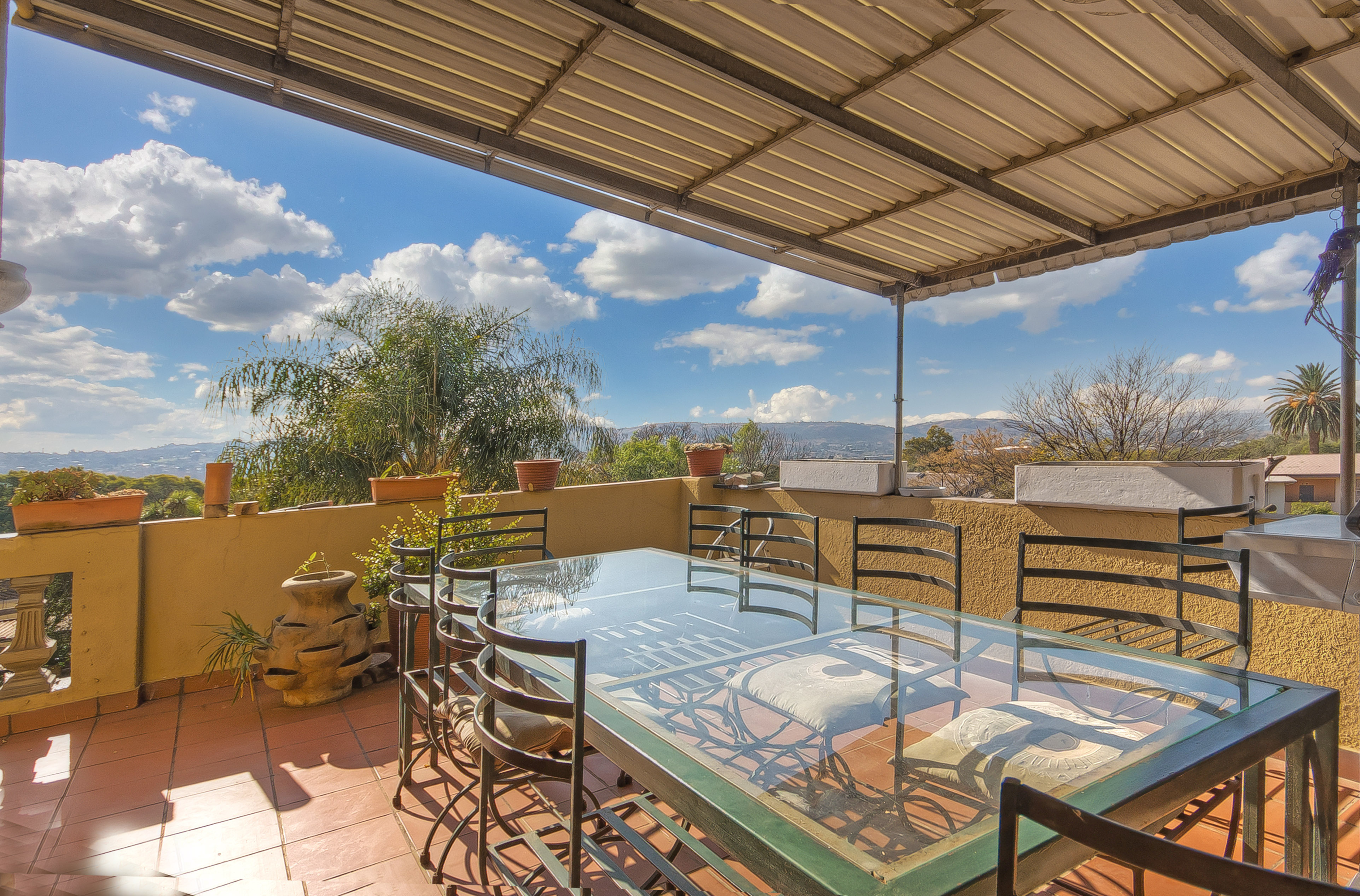 Home boasts 4 spacious bedrooms 2 bath ensuite, study, lounge, TV room two covered patios, well equipped kitchen leading onto a patio and balcony with the view of the beautiful mountains, garden and a pool.