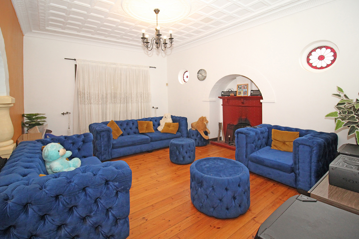 This inviting family residence features three bedrooms, two of which are en-suite—one equipped with a full bath and the other with a shower, toilet, and basin. The home also includes a separate toilet, two additional bathrooms, a laundry room, a cozy lounge with a fireplace, a dining area, an entrance hall, and a kitchen with ample cupboard space. Enjoy the open veranda, a front garden, a swimming pool with an entertainment area, and parking for up to five cars.