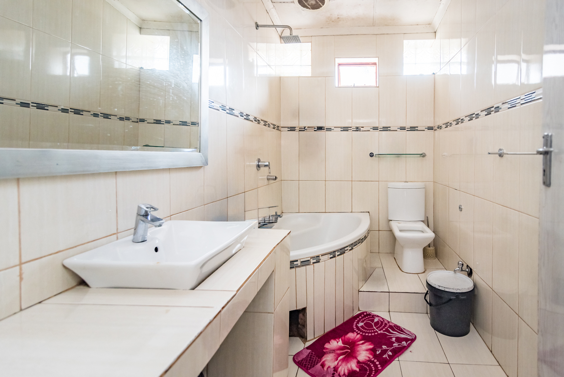 1 bathroom housing a bathtub with a showerhead, vanity and loo, providing all the essentials for daily living.