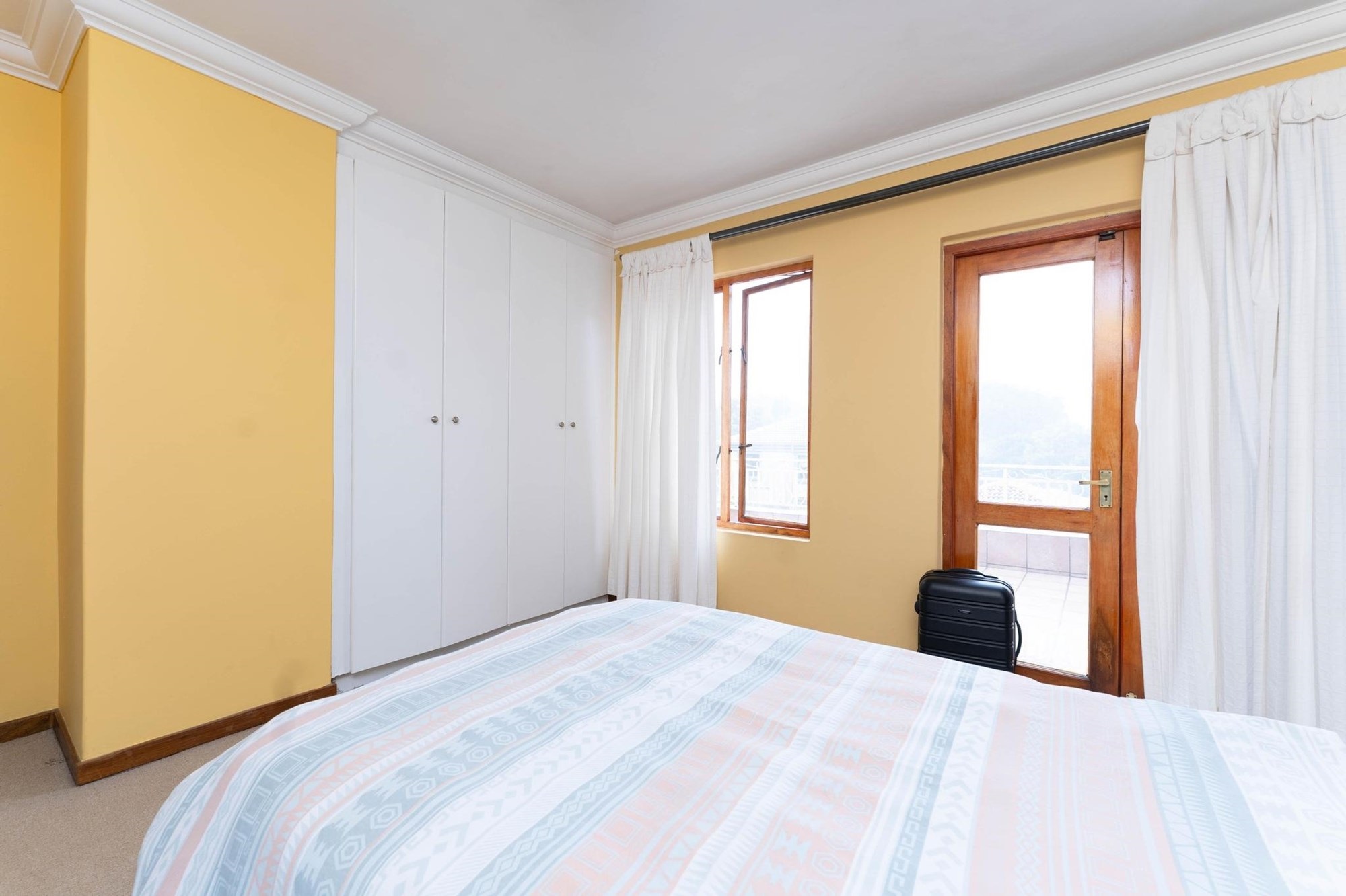 Up the stairs, is a sandblasted window letting in the sunlight as you continue to the private family space. Two roomy family bedrooms, both carpeted and with plenty of bedroom cupboards. These are north facing with wooden doors leading out to a tiled shared front verandah. These two bedrooms also share a full bathroom. Tiled in a neutral colour, with white porcelain fittings. A cupboard boasting a lovely black granite counter top.