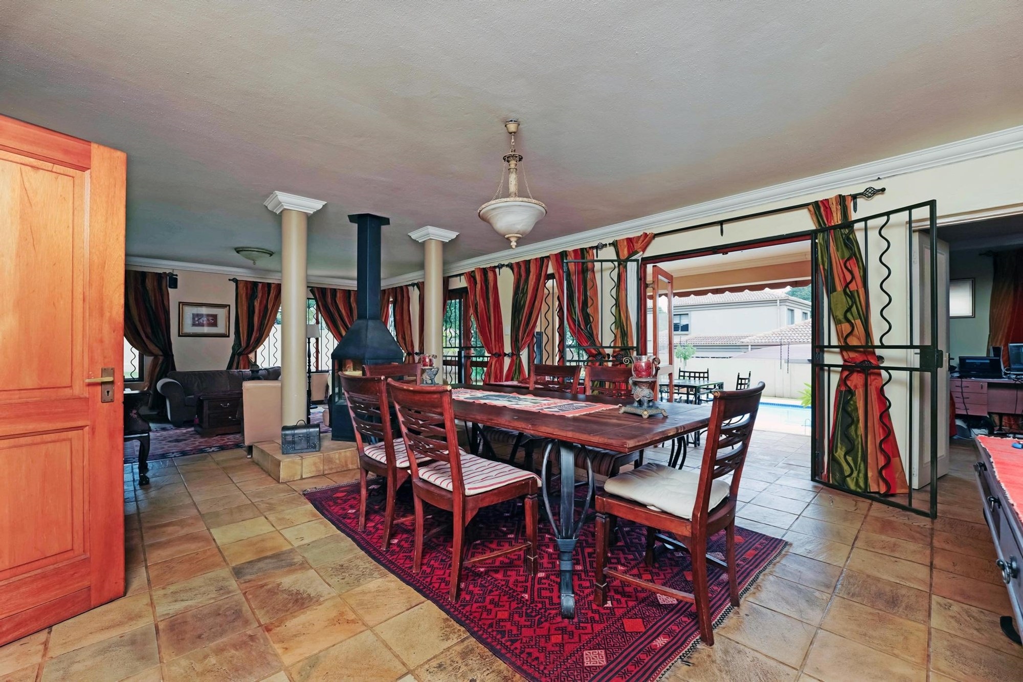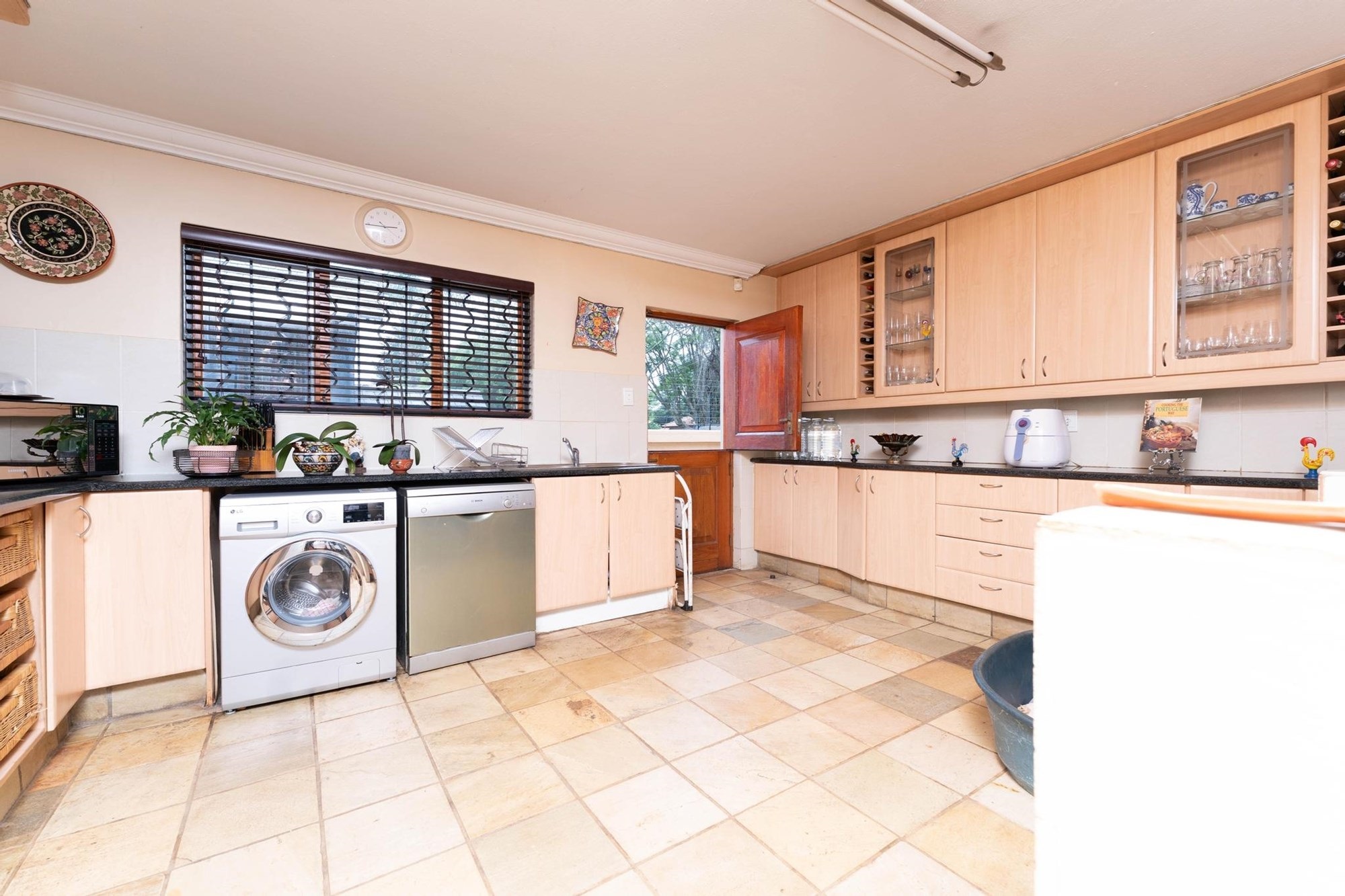 From the street, a double garage behind automated gates is visible. Plenty of additional paved parking to the left of the house. The front door is centre front of the building as you enter the Italian style portico, ready to reveal the timeless elegant interior. as you enter into the living area, you are able to see right through to the other side of the property, beautiful wooden doors opening out to the back patio. An open plan dynamic with a kitchen to the right, dining area and large lounge to the left.