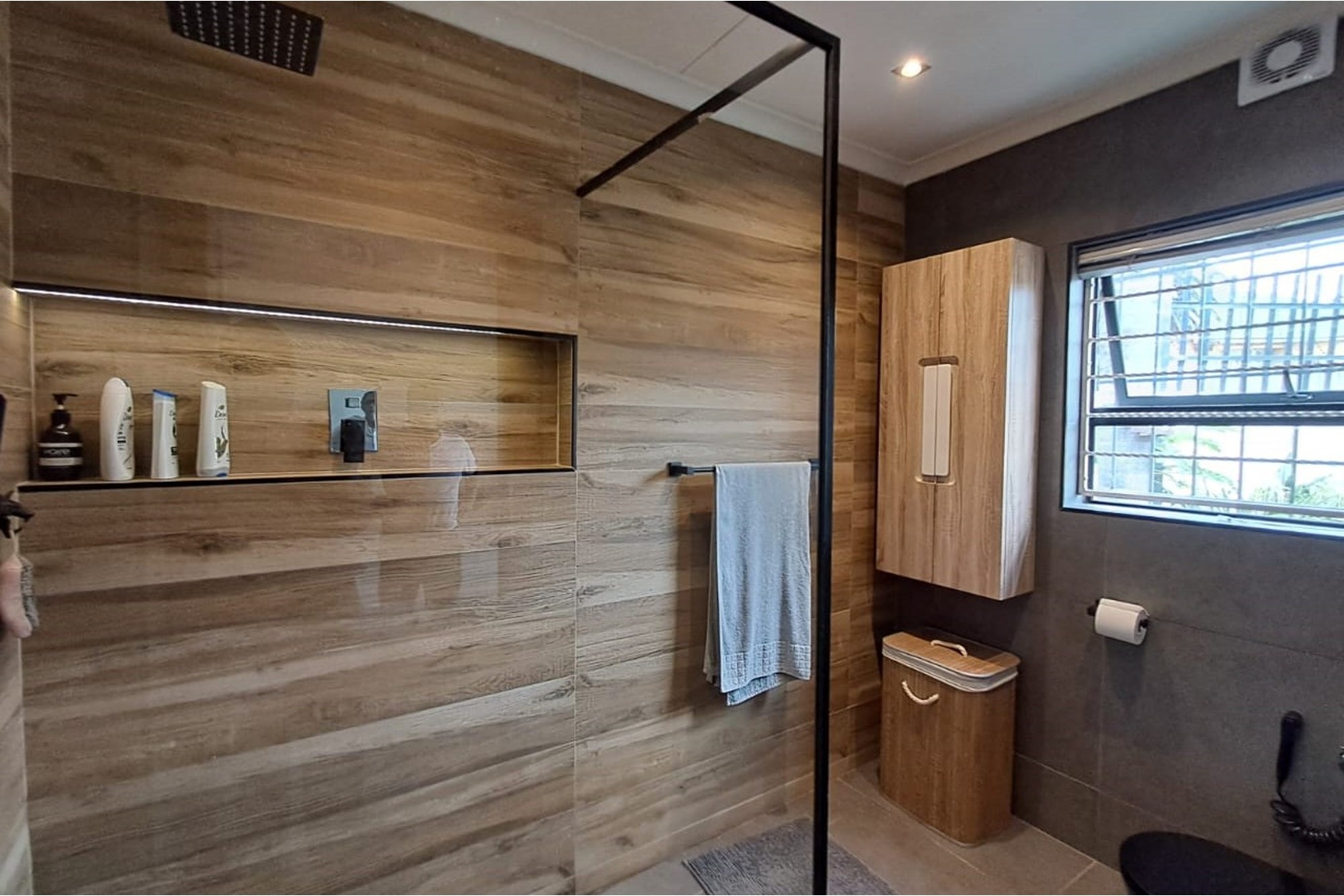 This modern home features four bedrooms, three of which have ensuite bathrooms.