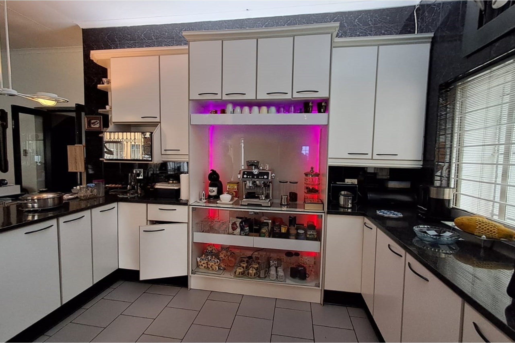 Upon entering, you are welcomed by an entrance hall that leads to a spacious lounge, a guest toilet, a linen cupboard, and a cozy coffee bar. The kitchen is beautifully designed with granite tops, and there is a TV room adjacent to it.