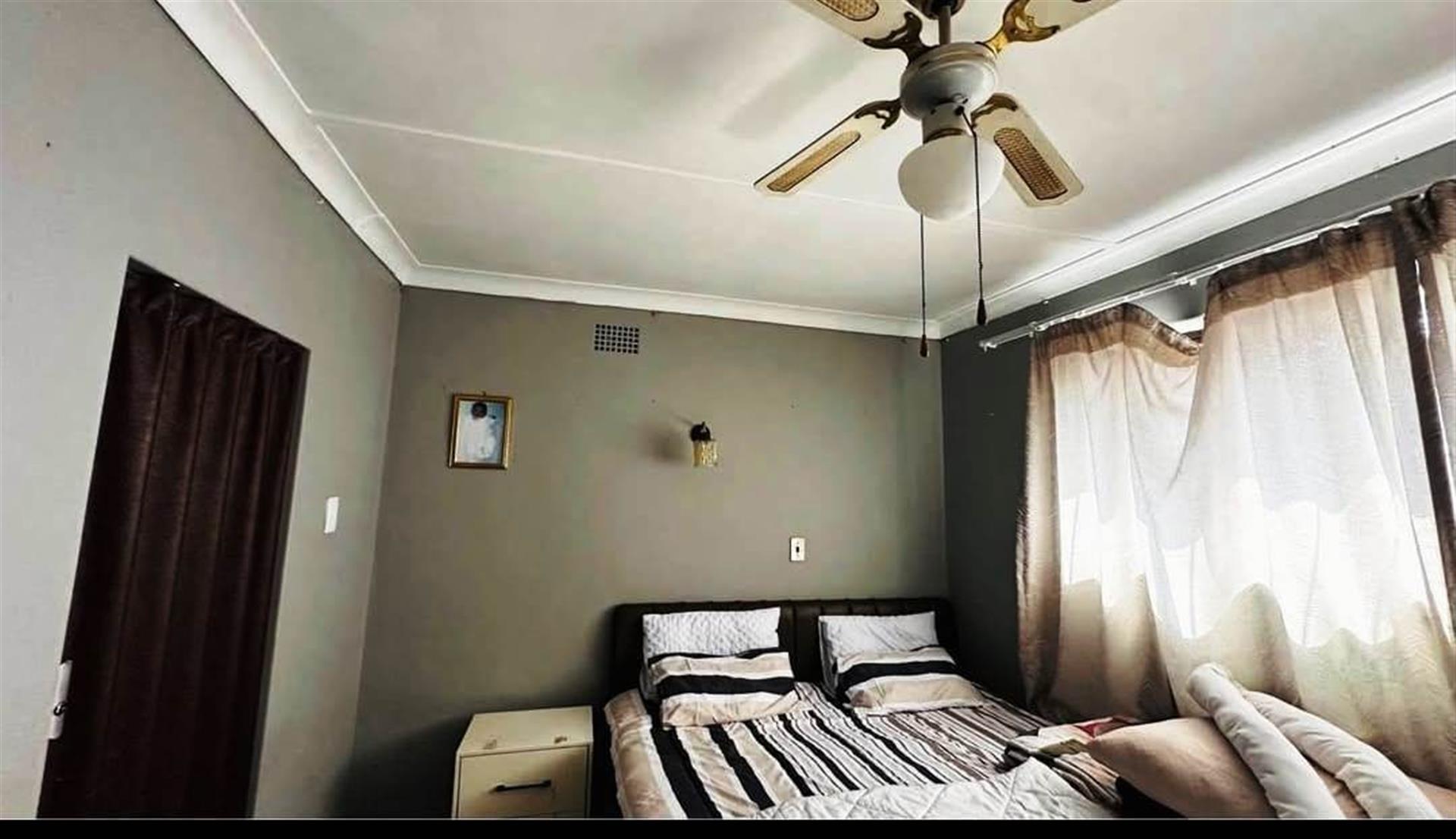 Additional features of this property include aluminium windows that enhance natural light, tiled floors for easy maintenance, and a stylish plaster wall finish that complements the overall aesthetic. The exterior boasts a sturdy brick wall, ensuring privacy and security. With fans installed throughout, you can enjoy a cool and comfortable environment year-round. This house provides a perfect blend of functionality and style, making it a wonderful place to call home.