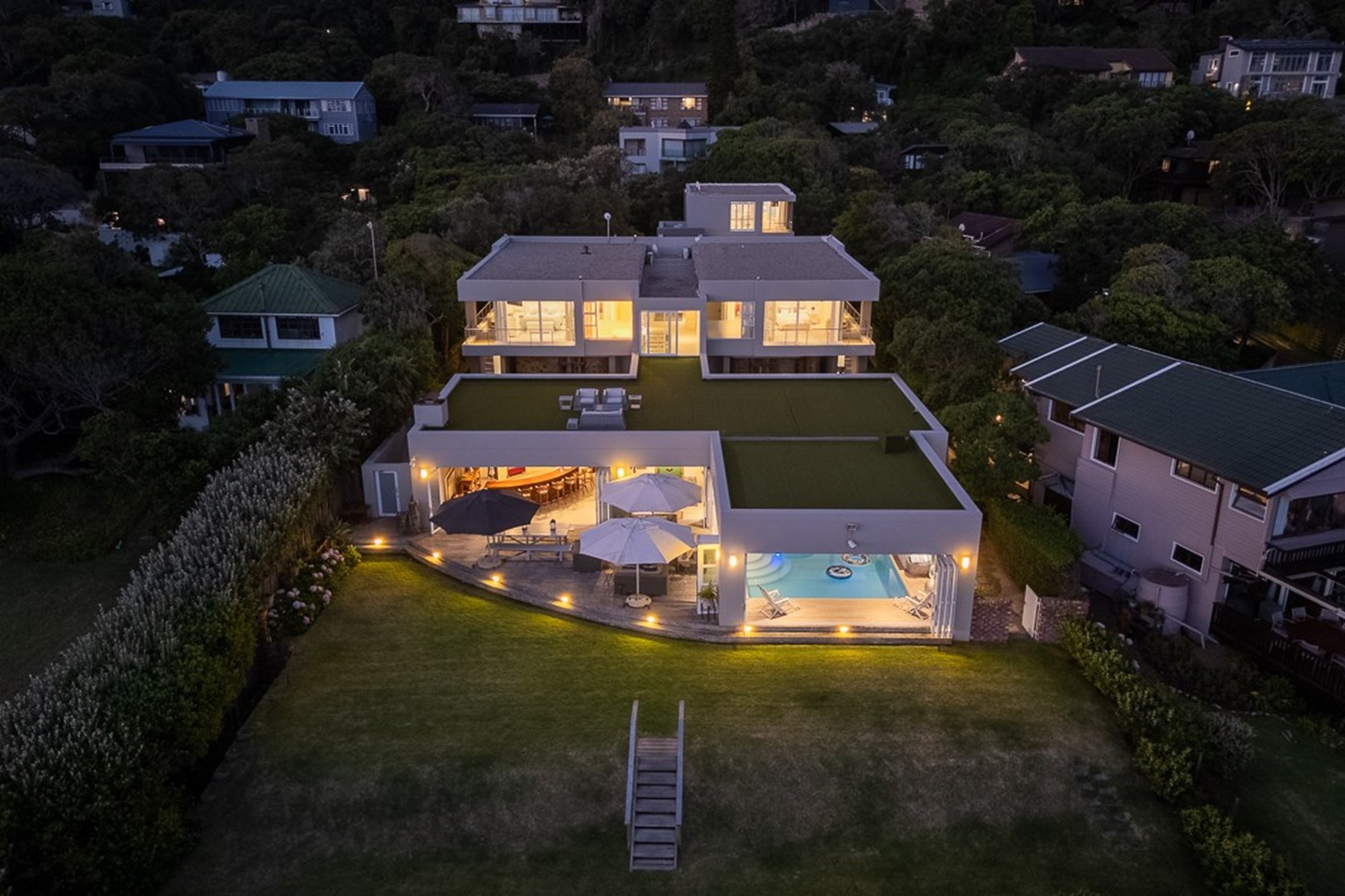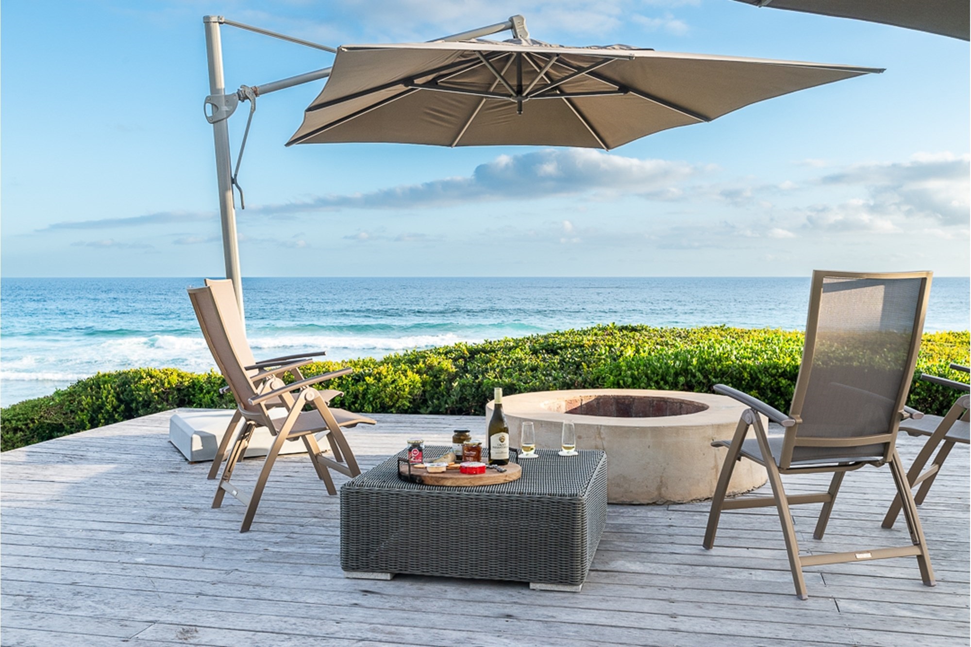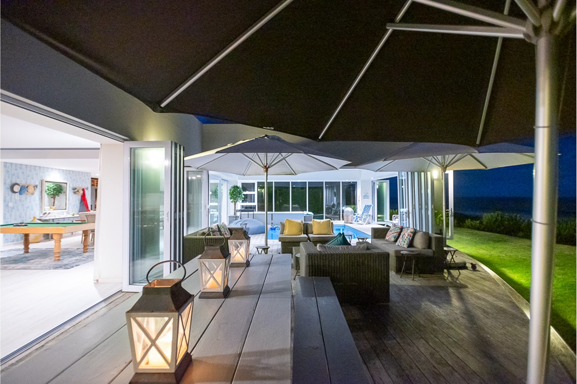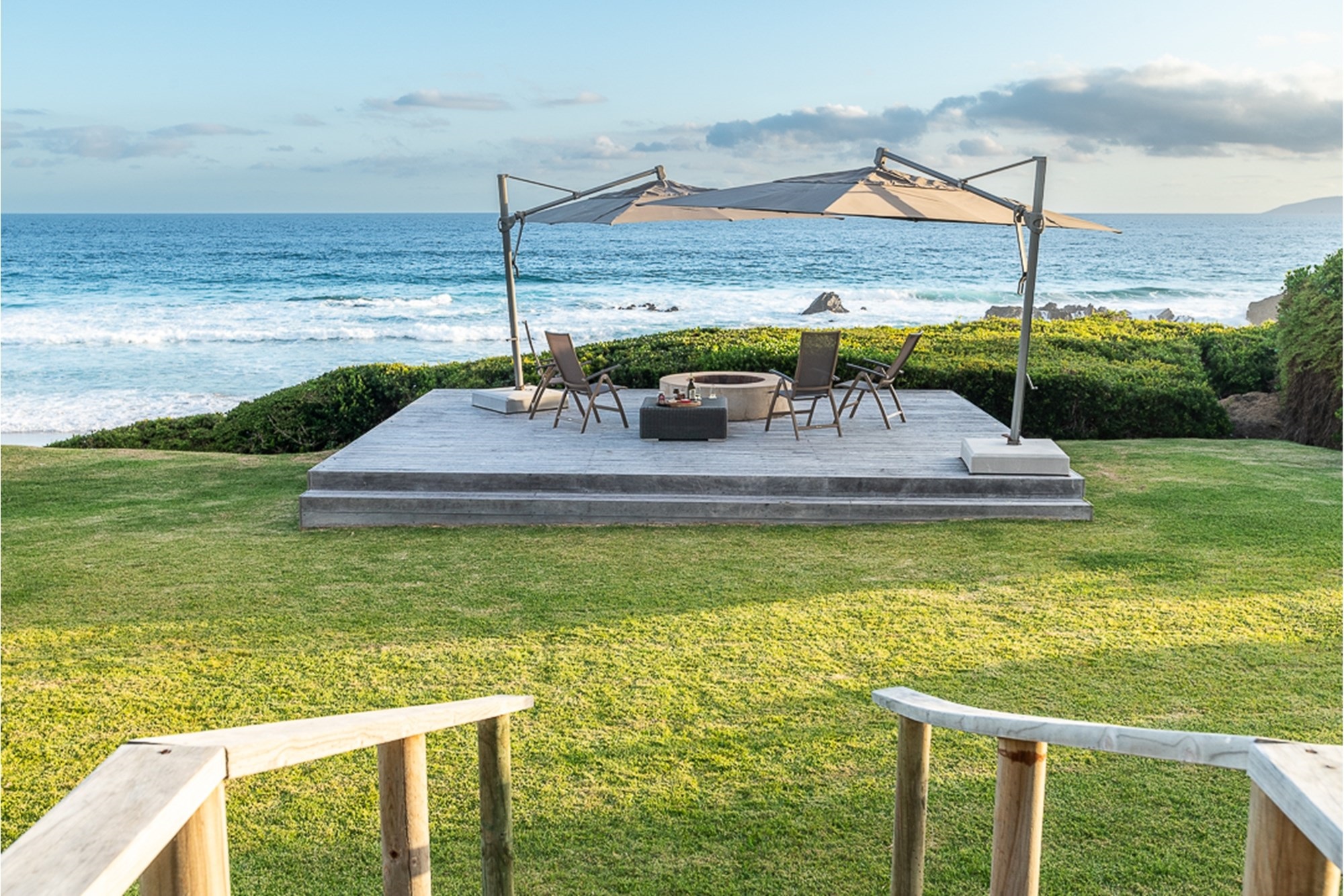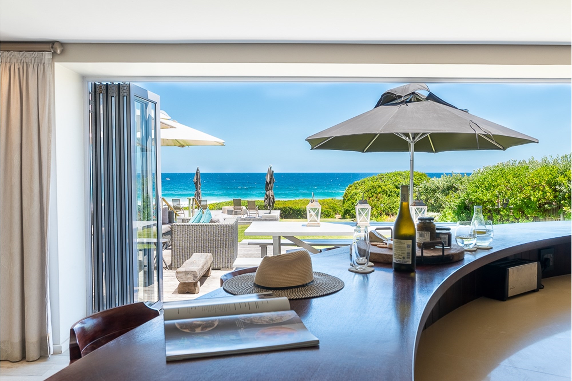 Seamless flow to the outdoor entertainment patio, landscaped lawn, and fire pit area—perfect for sundowners by the sea.
