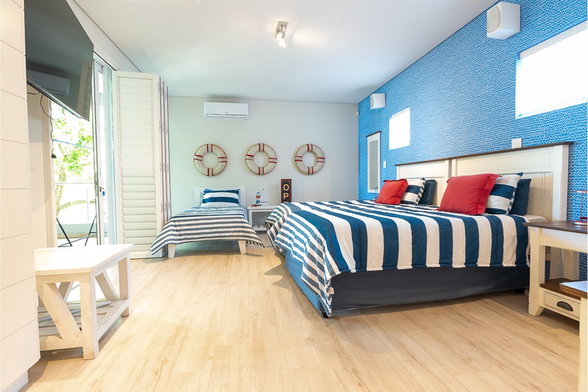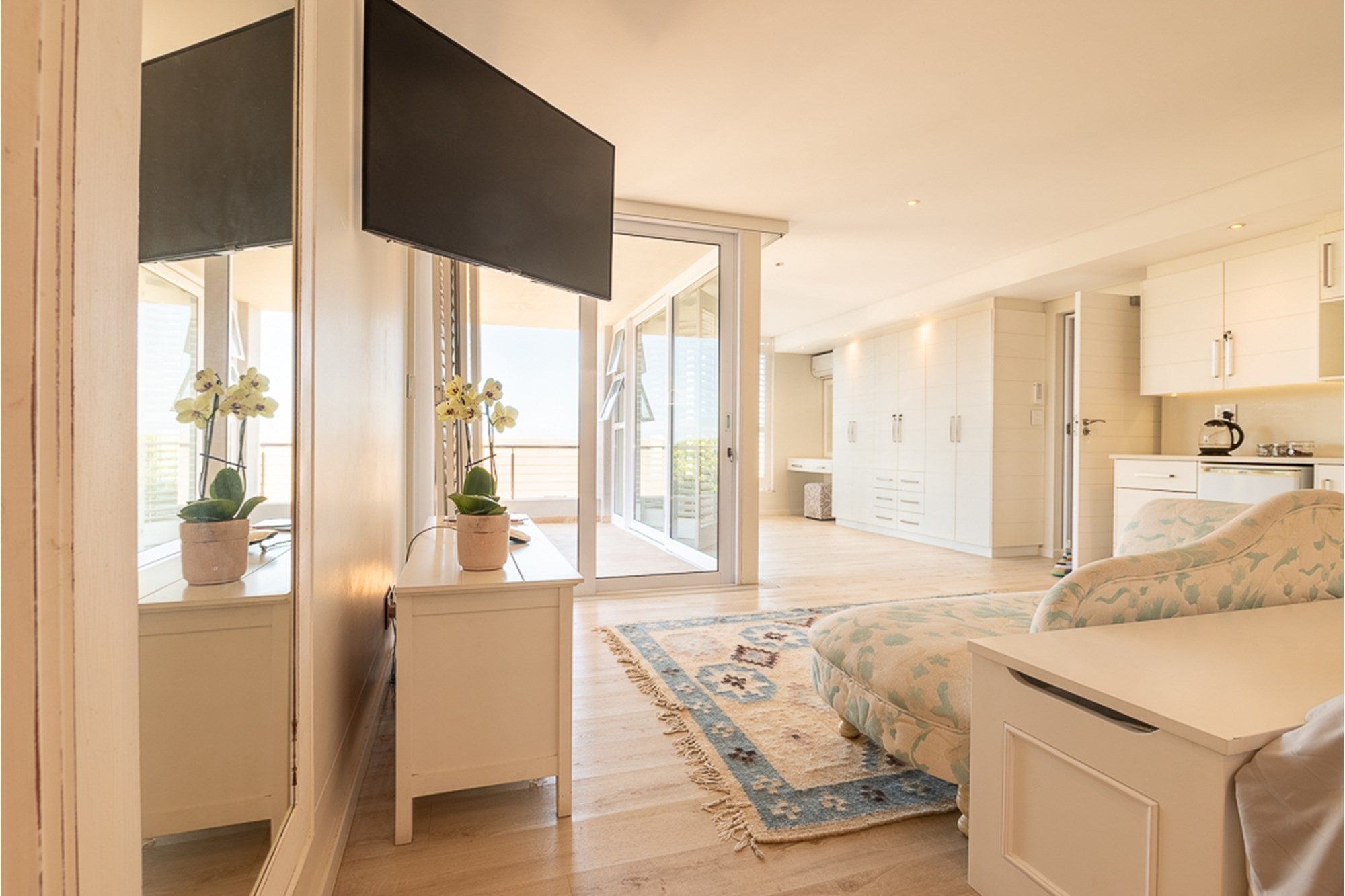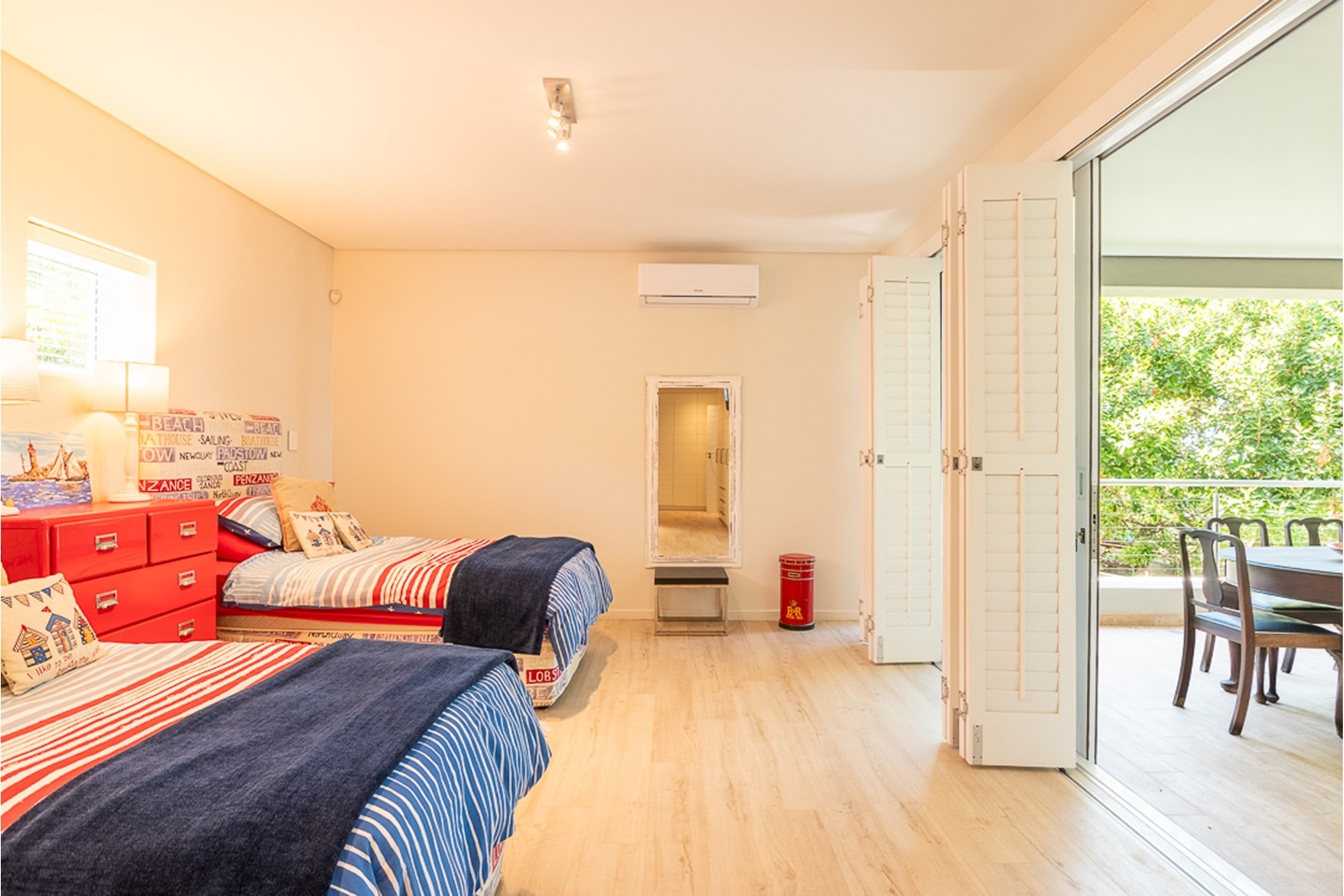-Four en-suite bedrooms sharing a lounge, balcony, and direct beach access—perfect for families.