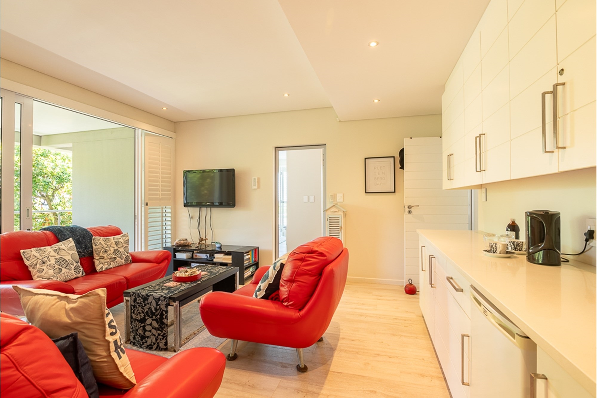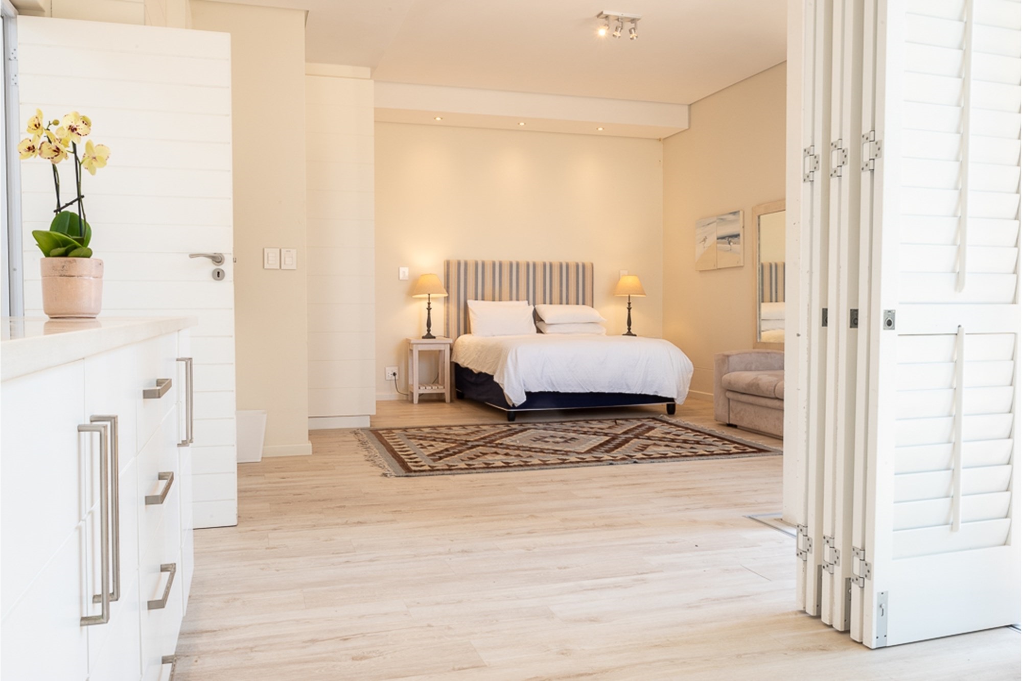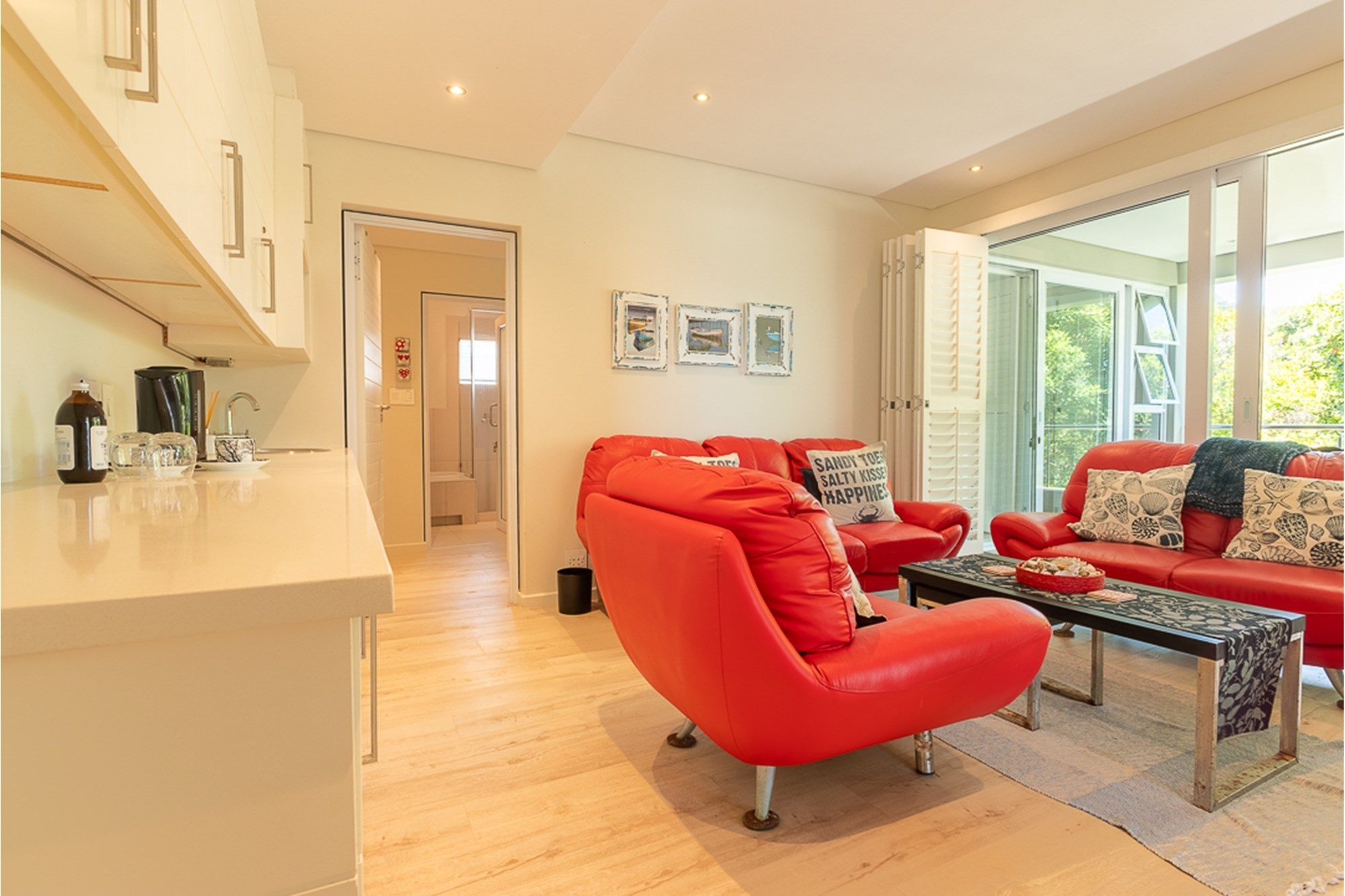 -Four en-suite bedrooms sharing a lounge, balcony, and direct beach access—perfect for families.