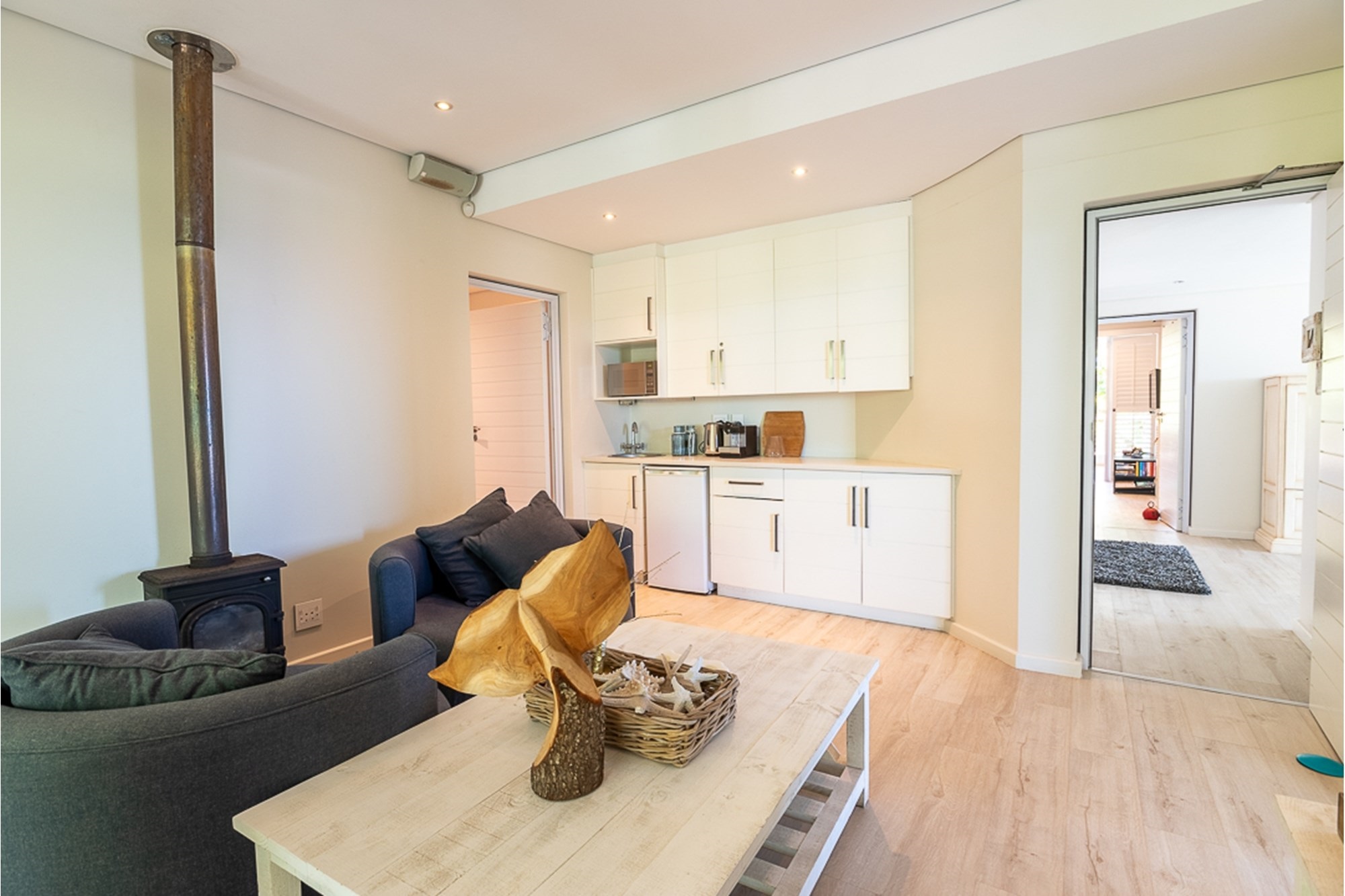 -Two private upper-level suites with full en-suite bathrooms, kitchenettes, and balconies—ideal for guest retreats.