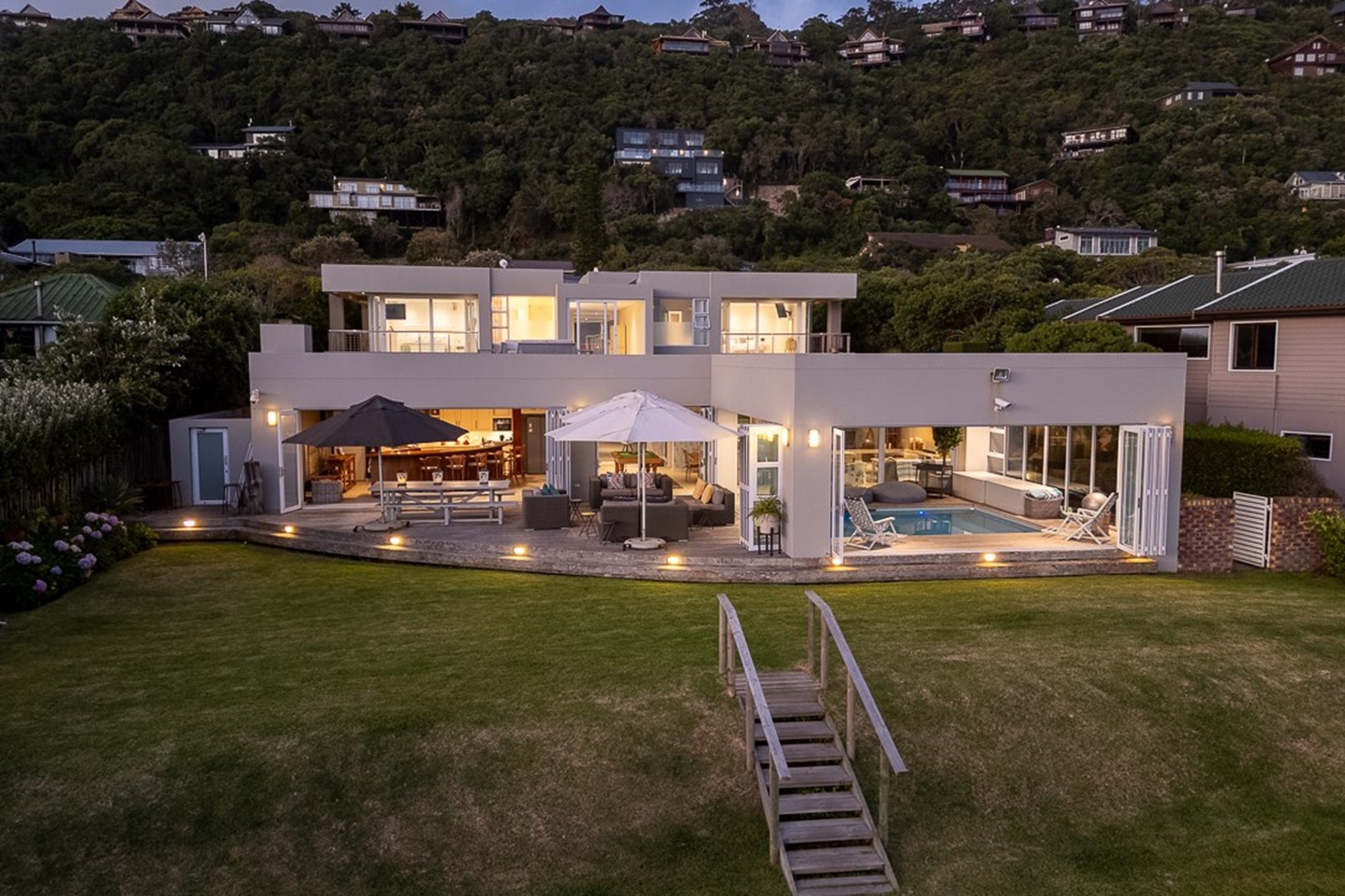 A private garden pathway leads directly to Keurbooms Beach for effortless access to the ocean.