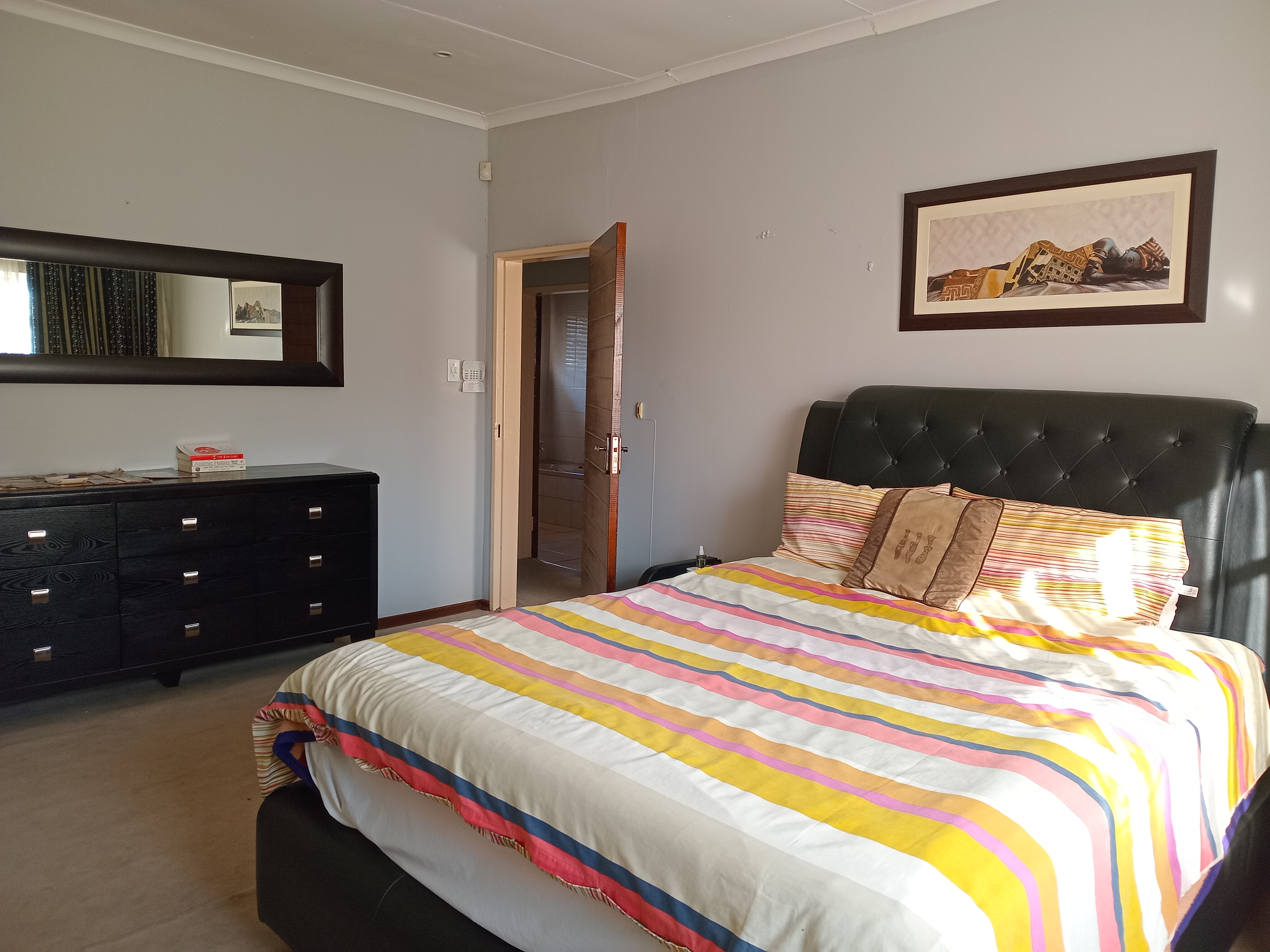 Sitting on a 1487sqm land, situated in the heart of Kew, 5 minutes from Balfour Park Mall, Eden College, Midway Mall, centrally located and easy access to major routes, highways and many other amenities. This warm family home offers 3 spacious bedrooms 2 bathrooms main-en-suite, dining room and lounge with fireplace, study, linen cupboard, spacious kitchen with lots of cupboards, 3 outside rooms and outside toilet, lapa, double garage and automated gate. Contact me to arrange a viewing.
