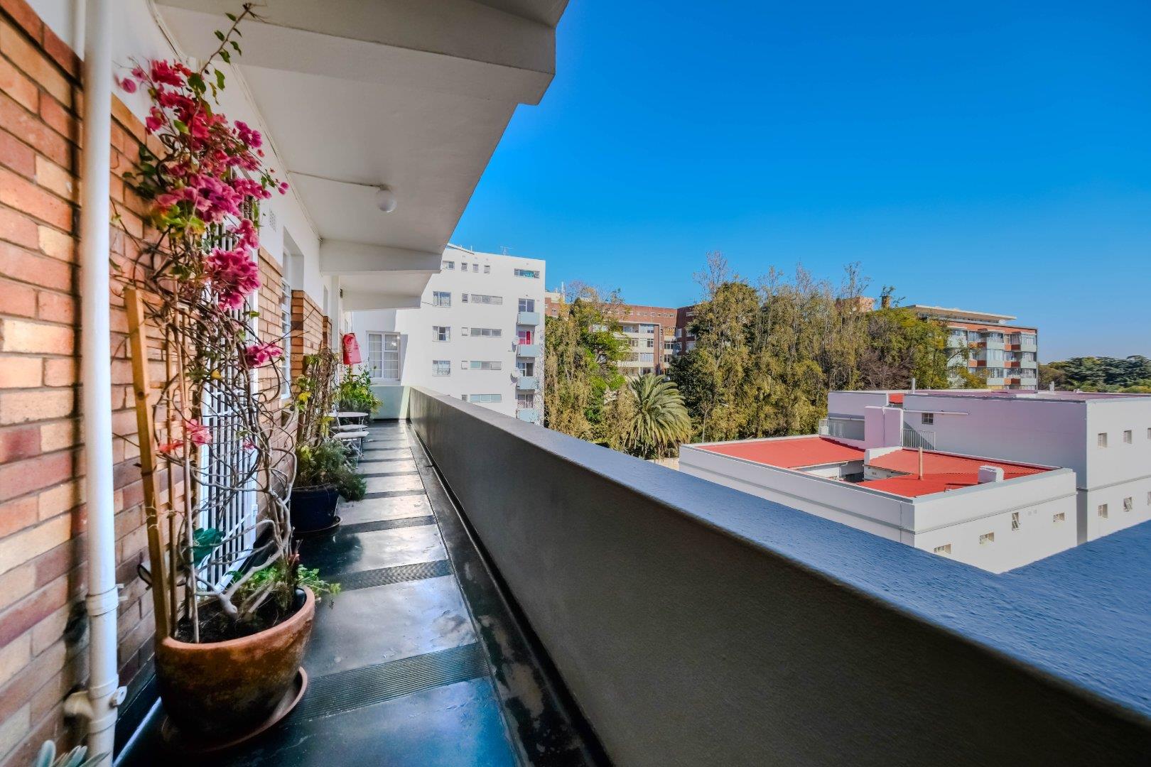 Airy and Bright! Private Corner unit. A perfect lock-up-and -go apartment. Two bedrooms with built in cupboards boasting parquet floors thru out the apartment. Two bathrooms main en suite tiled. Entrance, kitchen with built in cupboards tiled, dining room, lounge and an enclosed balcony./study. One garage and visitors parking inside the Complex. Communal ever green gardens. 24 Hours Security. Perfect for Newly weds, singles, family, health workers, students, and young entrepreneurs. Close to Freeways, public transport, Gaubus/Train route, hospitals, clinics, schools, Wits and walk to the Killarney Mall. Be the first to view this Art Deco apartment in this ever popular well looked after complex Daventry Court. N.B Pets allowed. No more worries about load shedding! Backup plan in place! Come and put your signature on this lovely home!