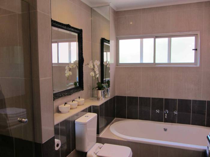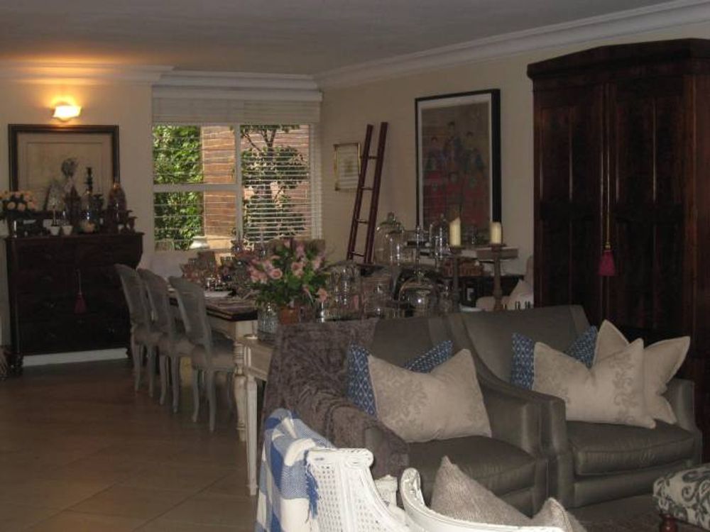 Upstairs: 3bedrooms, bic, 2bathrooms, (mes), walk in closet, italian marble staircase,downstairs: entrance, guest loo, kitchen with granite tops & aeg appliances, lounge, dingroom,underfloor heating,boasting hagrohe taps & duravit fittings through out, patio withterra-cota tiles, provincial private courtyards with water features, pvt staff quarters with own pvt bathroom,2bays, pool in complex, evergreen gardens, visitors parking, 24hrs security, close to all ammenities, just move in! No need to spend a cent!