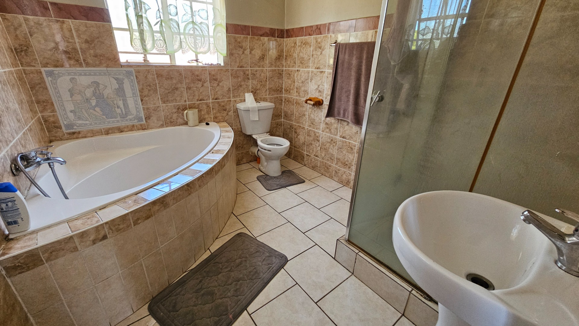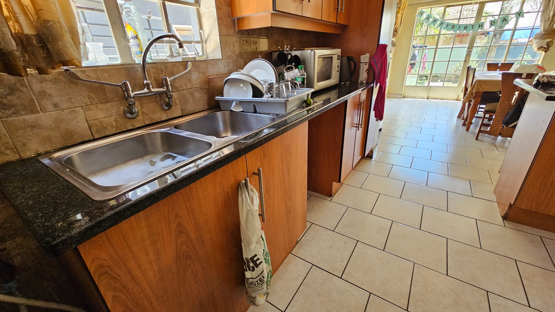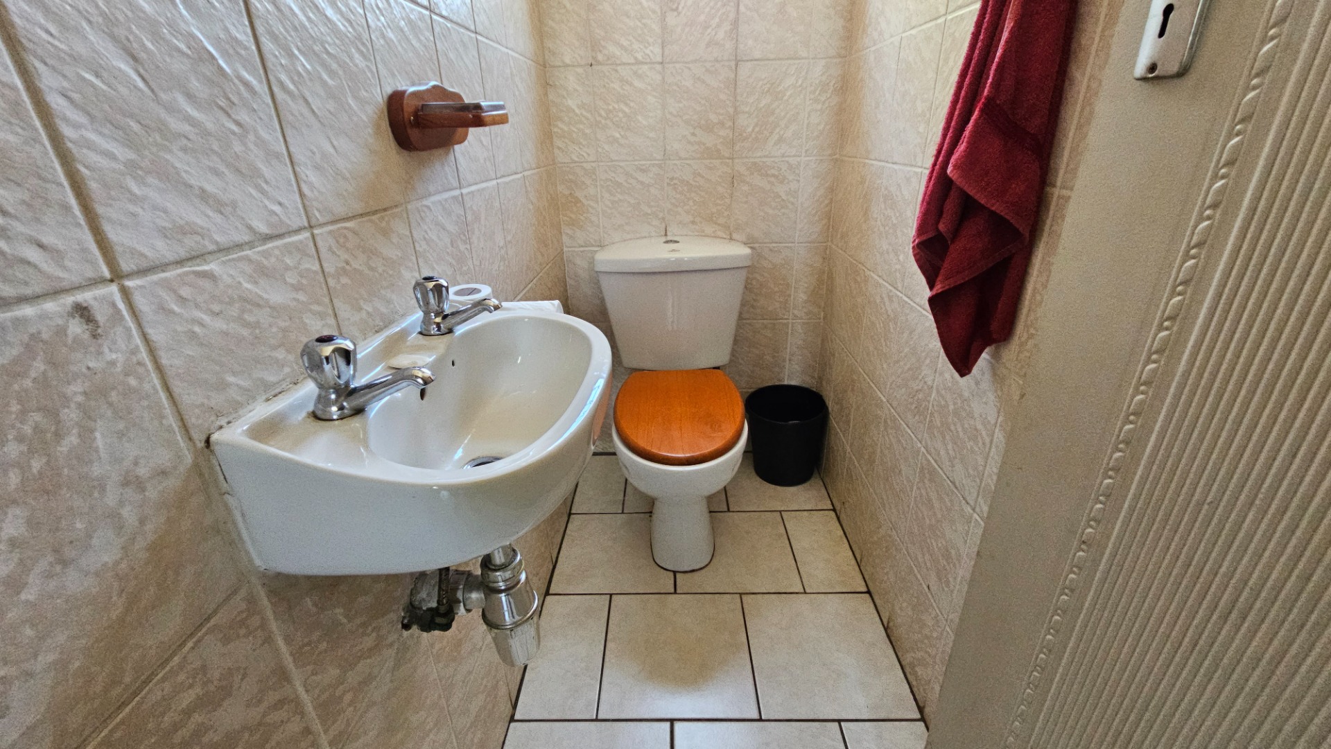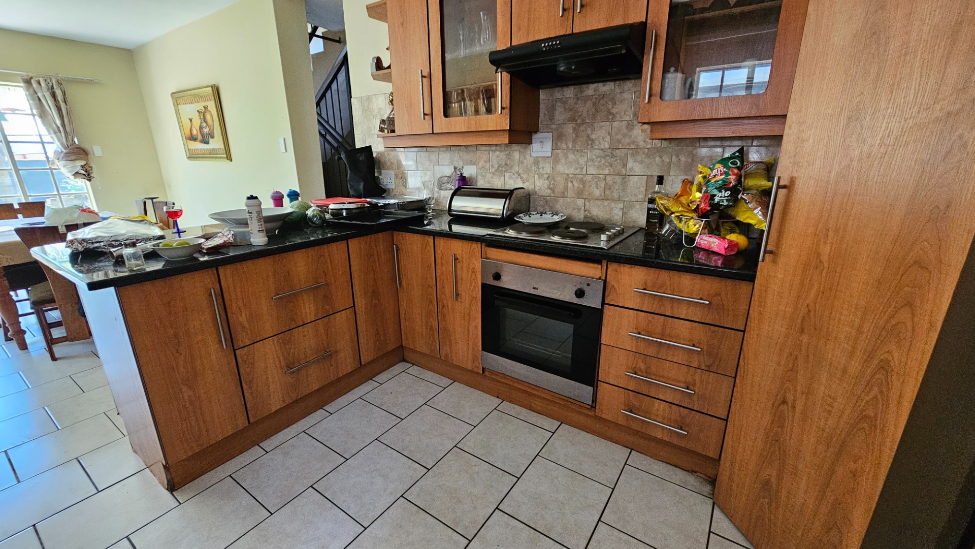 This street front family home is private and fully walled. The house offers 3 spacious bedrooms and 2 bathrooms upstairs. Downstairs is fully tiled and offers a lounge, guest toilet with basin and open-plan kitchen/dining room.