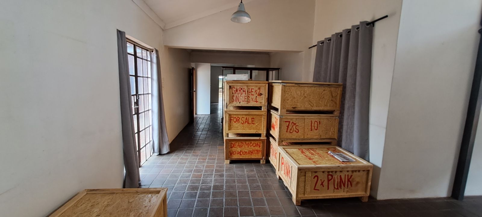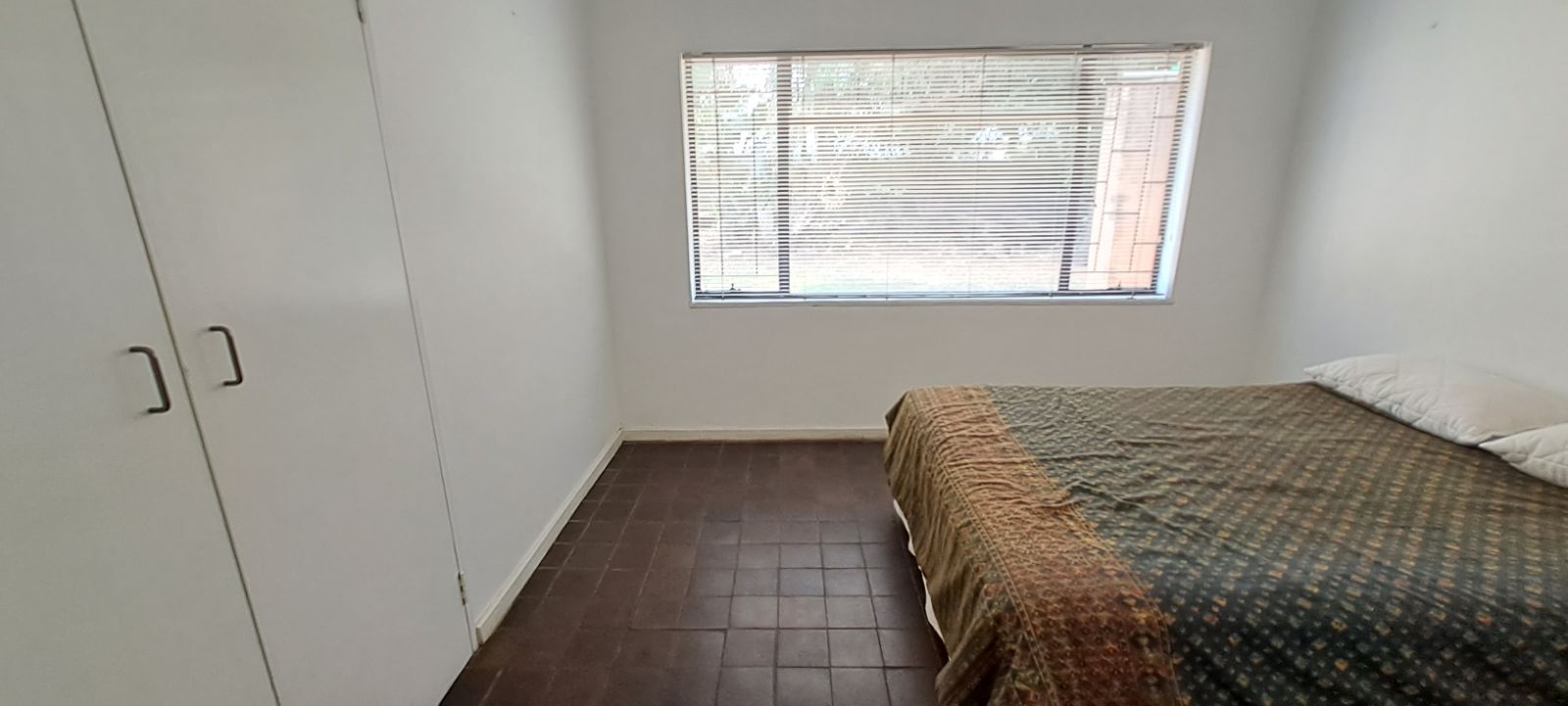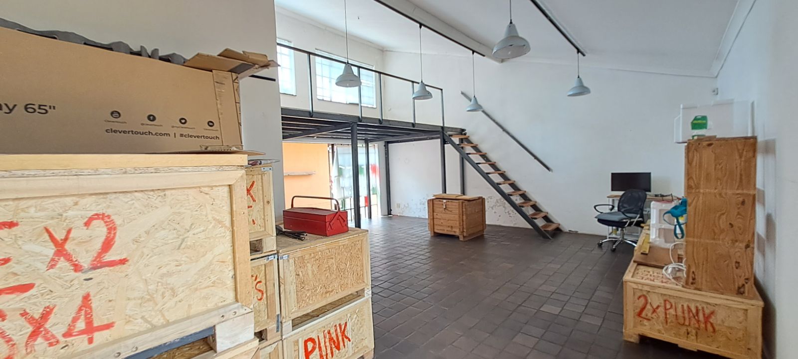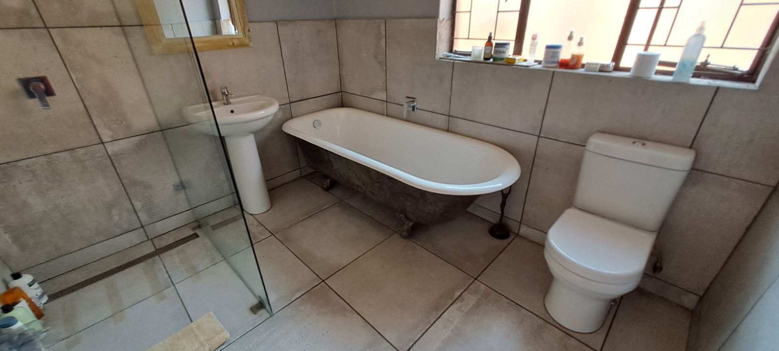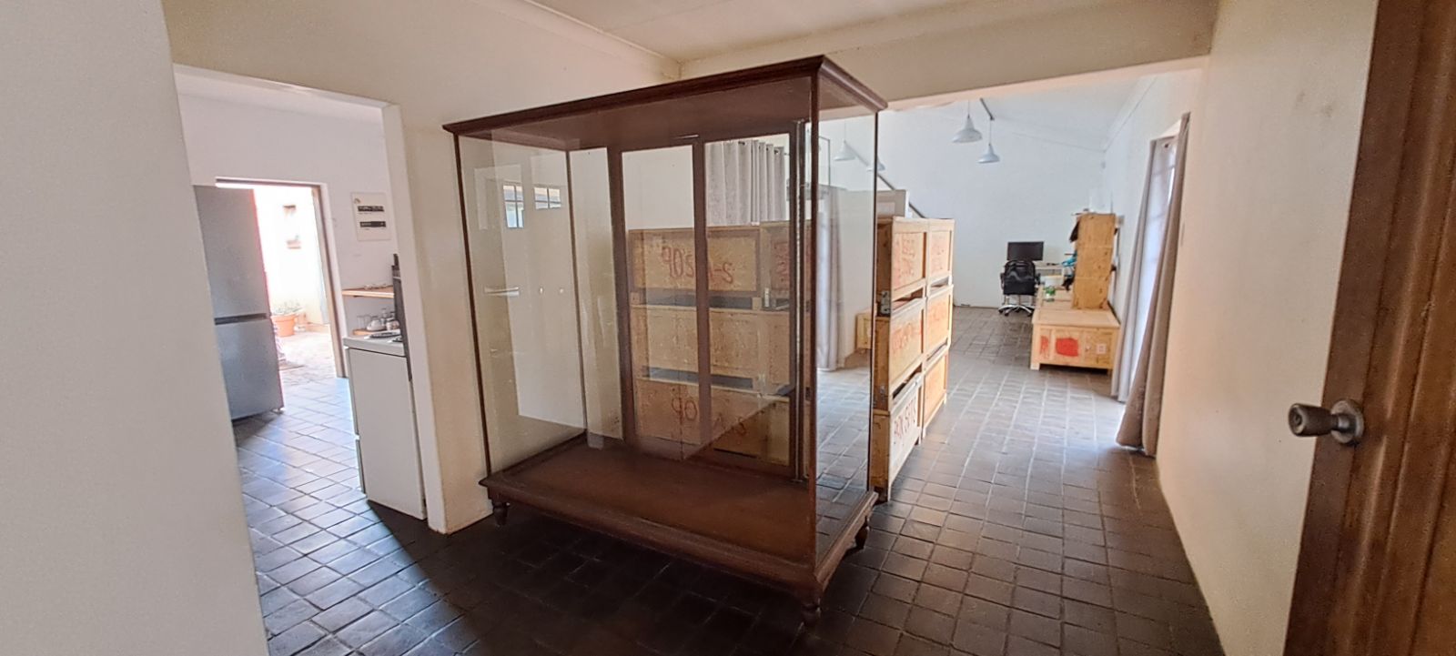 The fully tiled main house offers 3 north-facing bedrooms, a study, 2 modern bathrooms and vast open-plan living areas. One living area/studio with a loft and the other a lounge with an authentic coal stove. The lounge opens to a rustic looking braai/entertainment area and a fully walled, tree filled garden. The kitchen is well positioned and needs built in cupboards.