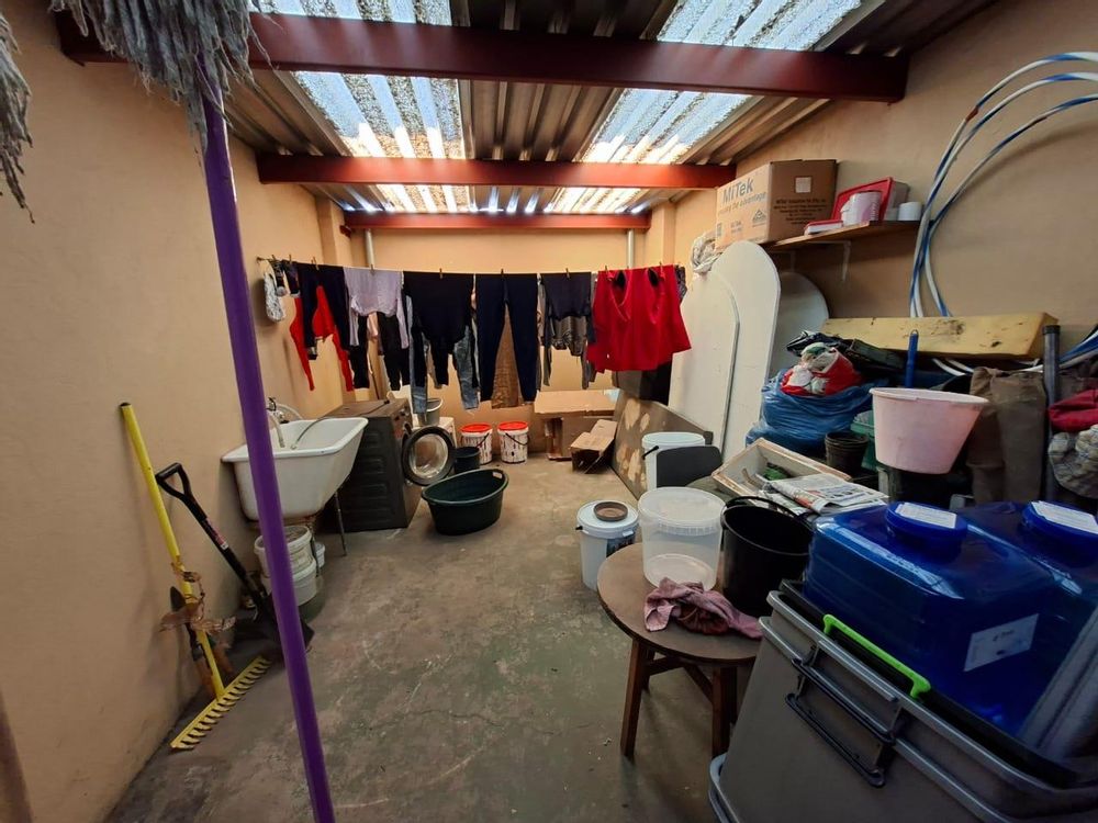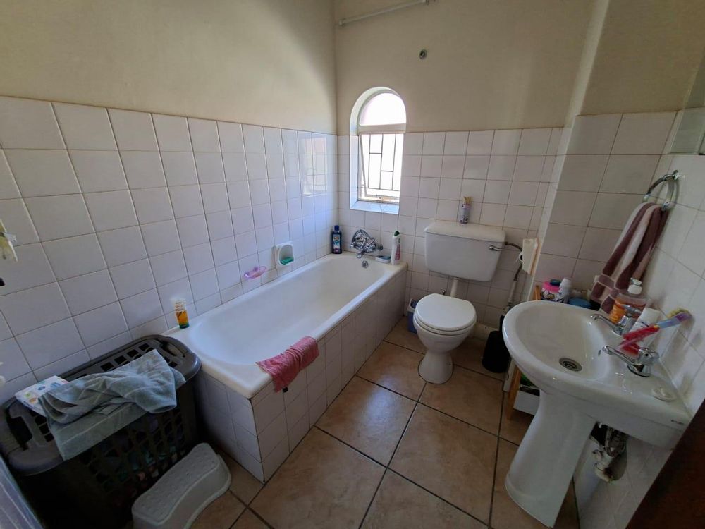 Upon entering, you'll be greeted by a spacious lounge that seamlessly flows into the dining area, both featuring elegant tiling throughout. The kitchen is well-equipped with ample cabinetry, a stove, and convenient access to a private courtyard, which includes space for a washing machine and a washing line, making household chores a breeze.