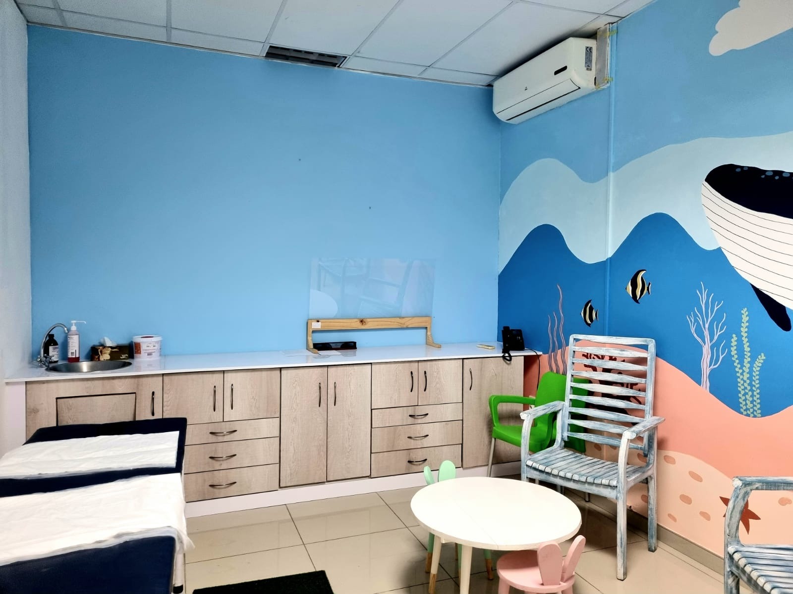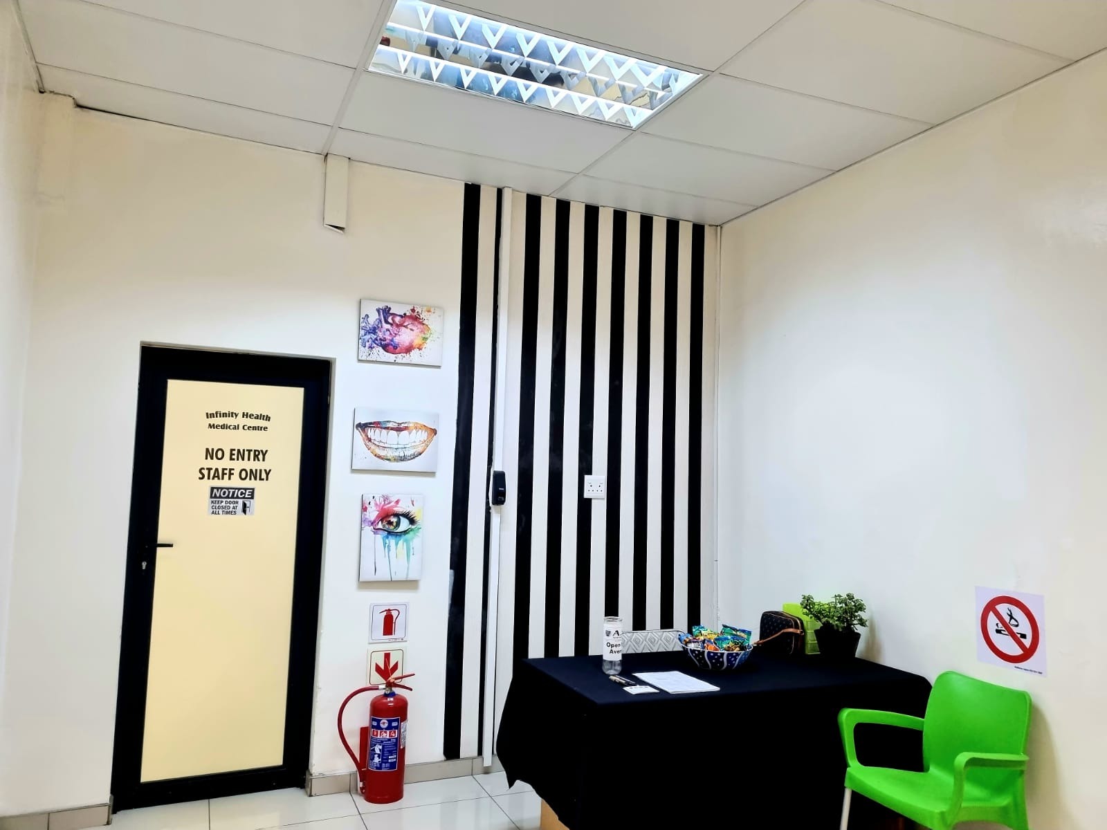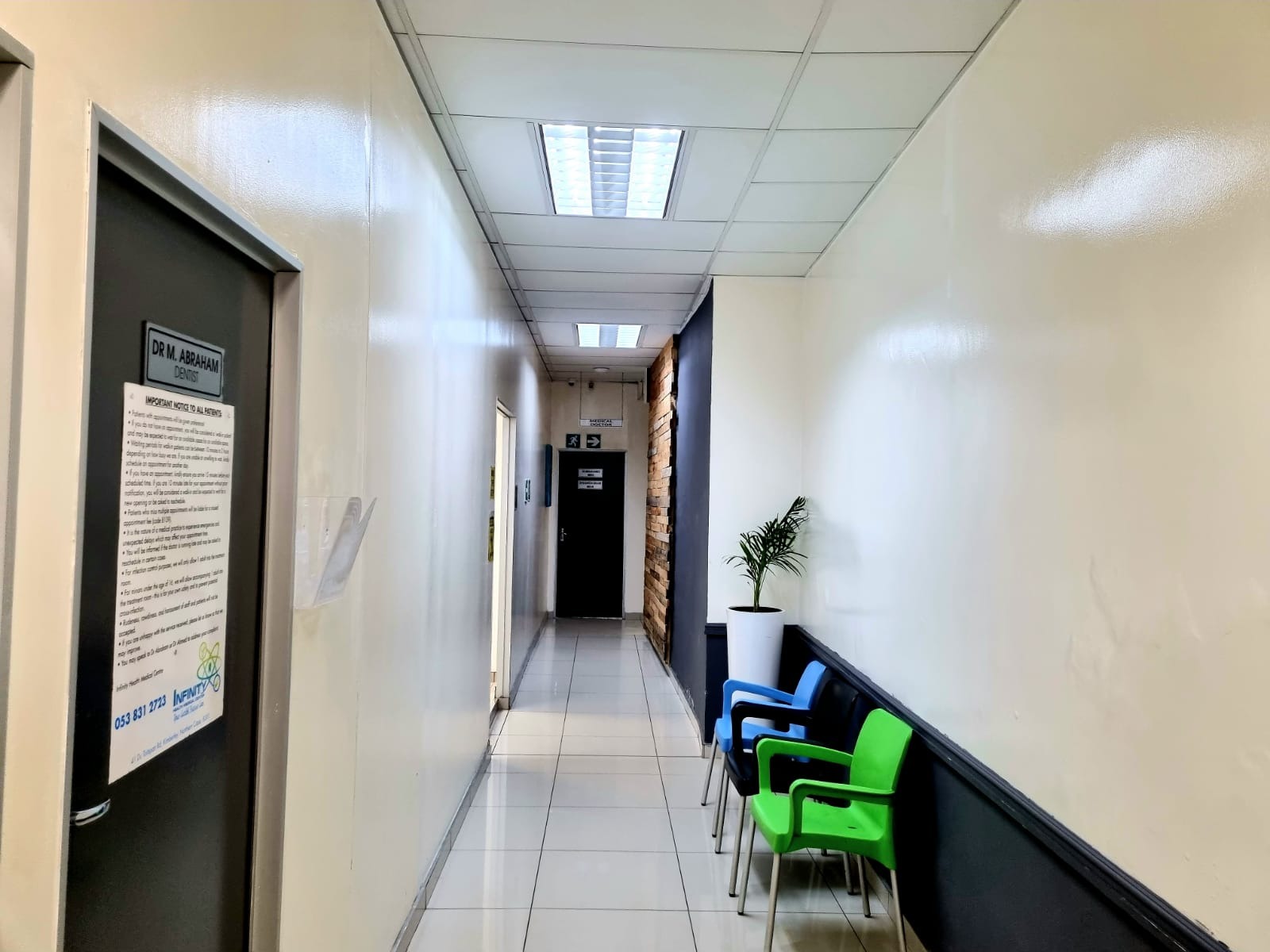 The offices currently in use is all tiled out, very neat and equipped with aircons with several small bathrooms and kitchen space for staff and patients/clients