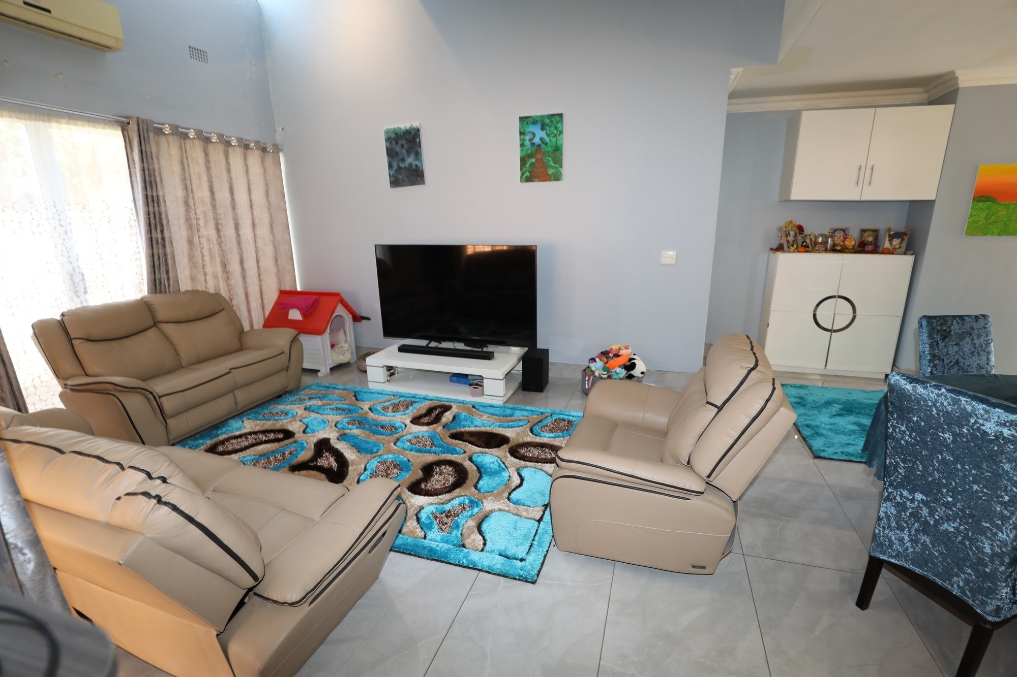 Additional highlights include a double garage with an automatic door and extra parking space for a third vehicle, a serene veranda, and a family-friendly playground. The flatlet has a kitchenette, bathroom and a bedroom. The property is pet-friendly, allowing every family member to enjoy their new home. For those with sustainability in mind, solar panels ensure energy efficiency.
