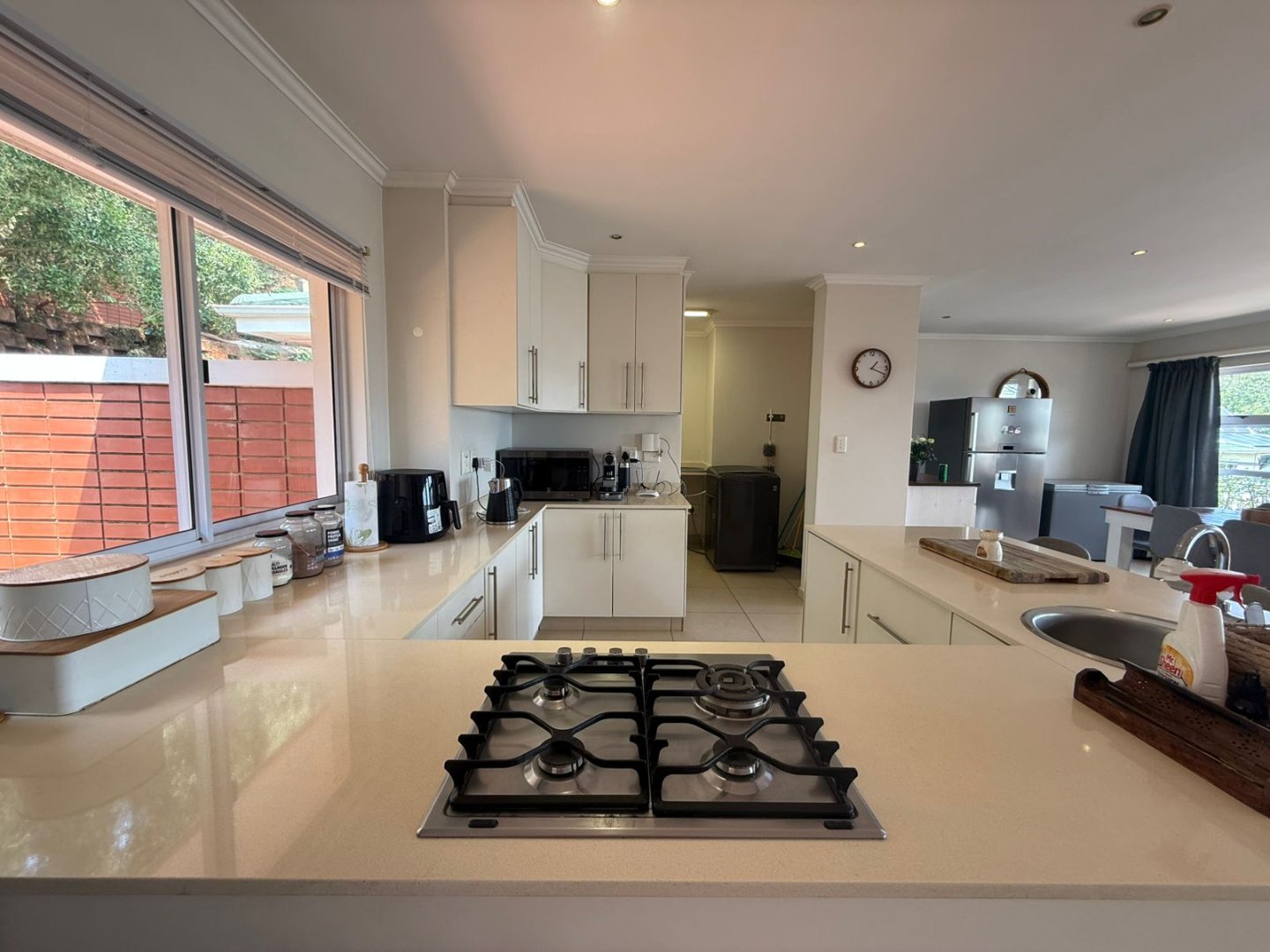Open plan modern fitted kitchen with gas and electric combo cooker, living area which opens out onto 2 covered patios and small garden. 3 bedrooms, full main en suite and a shared family bathroom.