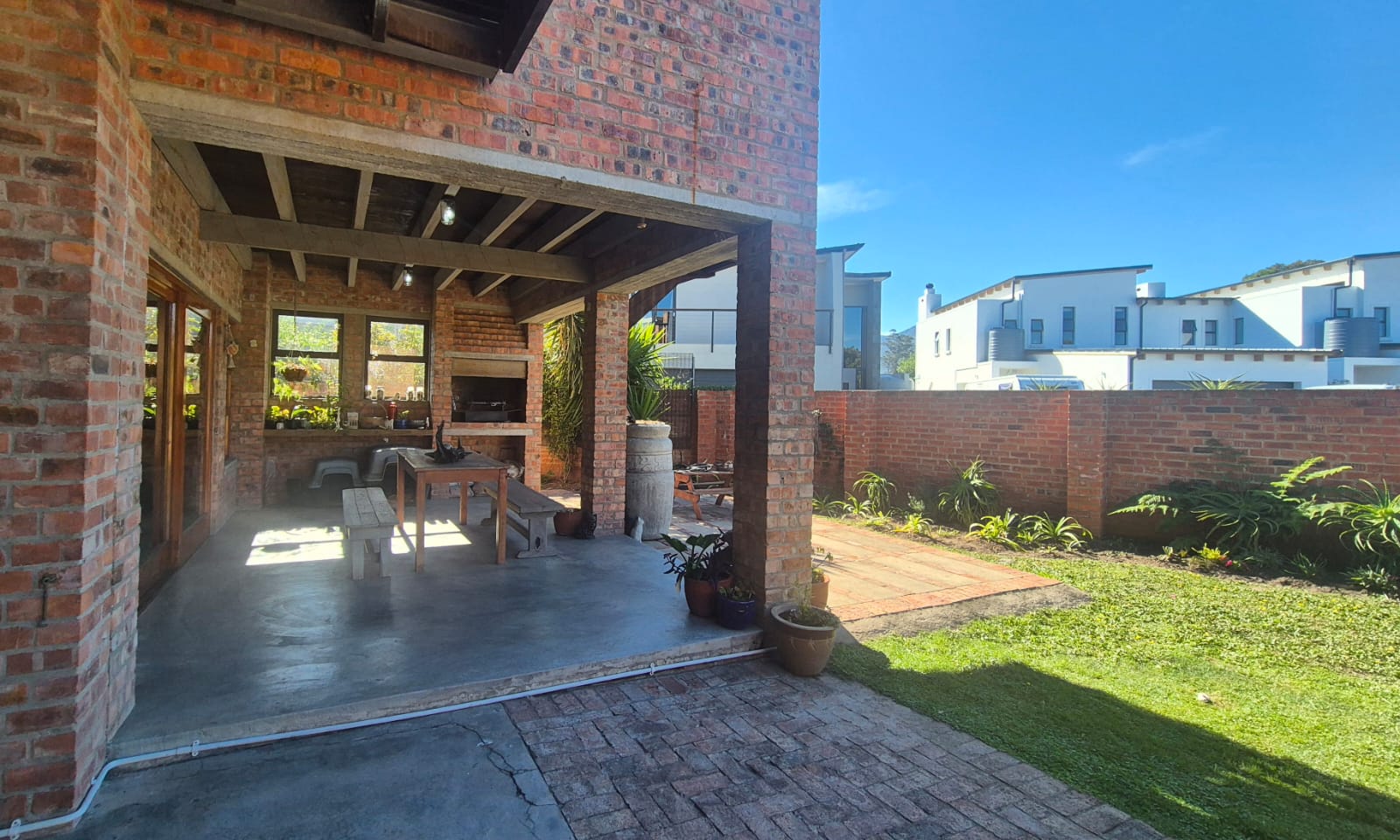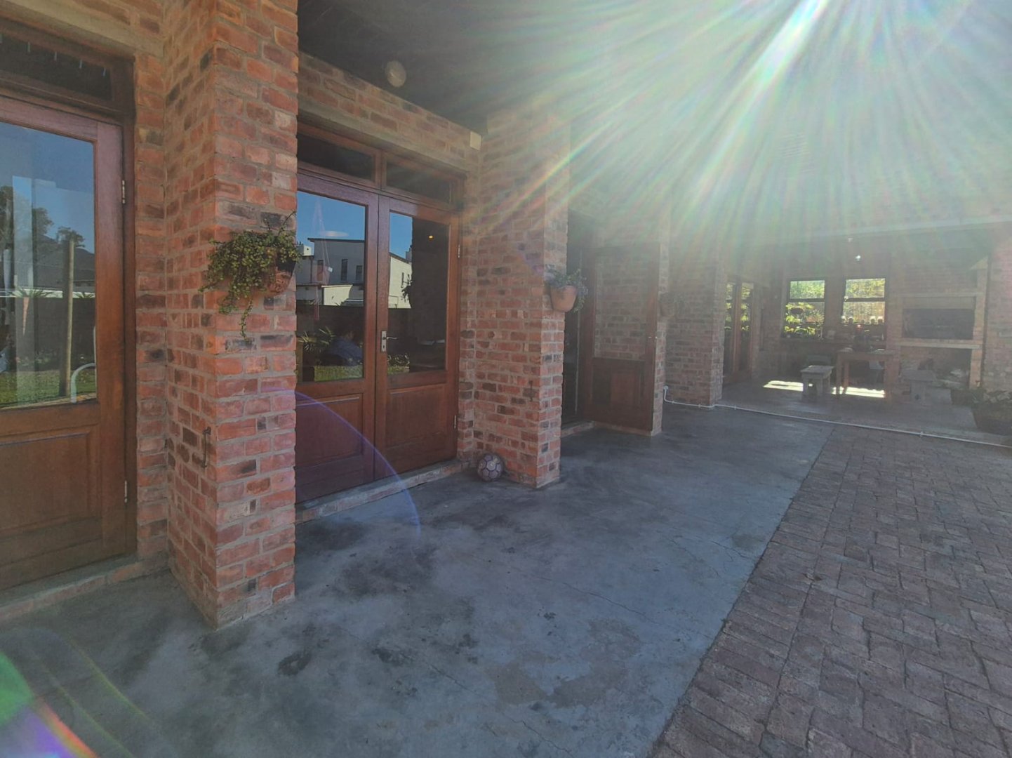Evenings can be enjoyed beside the fireplace or in the covered braai area that links seamlessly to the outdoors. Practical features include a gas stove and geyser, a 5kVA inverter system with two batteries for reliable backup power, a double garage with a drive-through door and an automated gate for extra convenience.