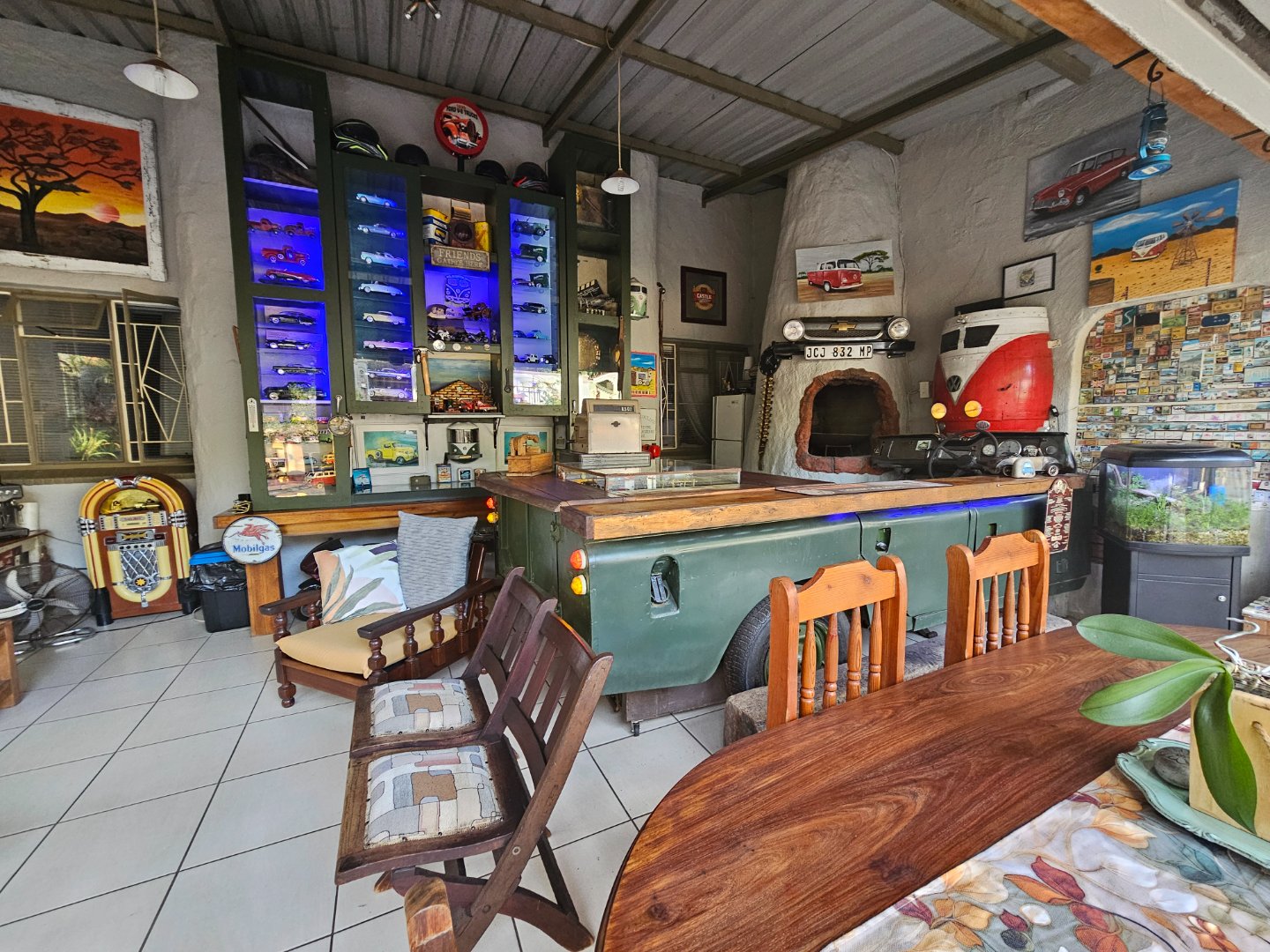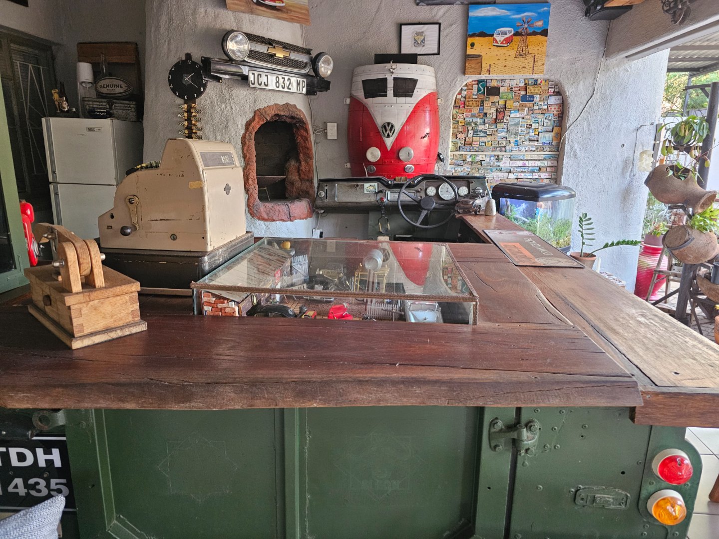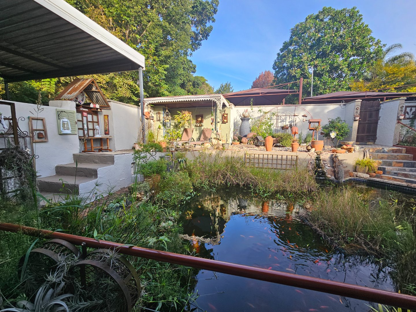 Large Swimming Pool thats been converted to a koi pond and can easily be converted back, with Patio and Amazing Bar(Fitted and staying) a Land Rover Long wheel base which the House Pivots around... pizza ovens,. Inside braais. So much on offer.