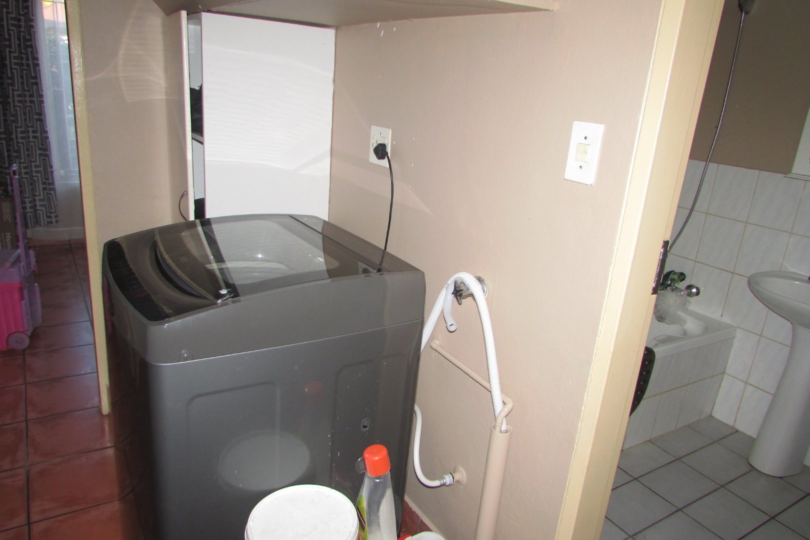 Hallway recess with plumbing for a washing machine and extra built-in cupboard