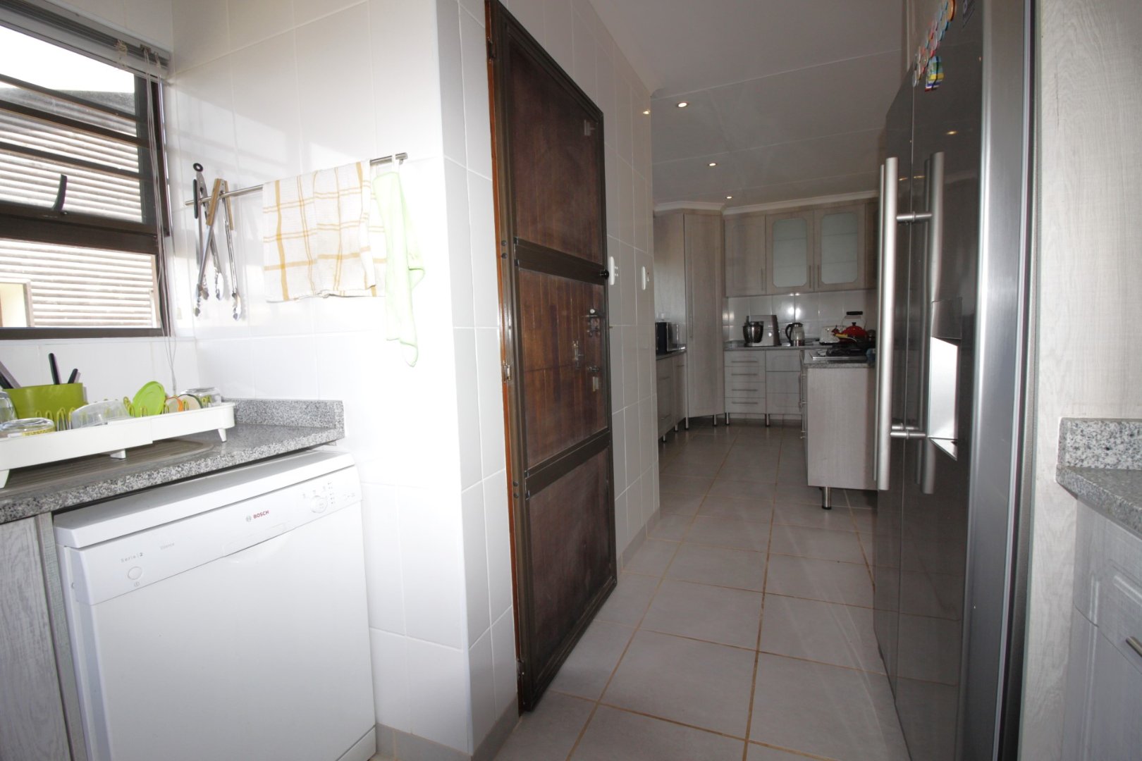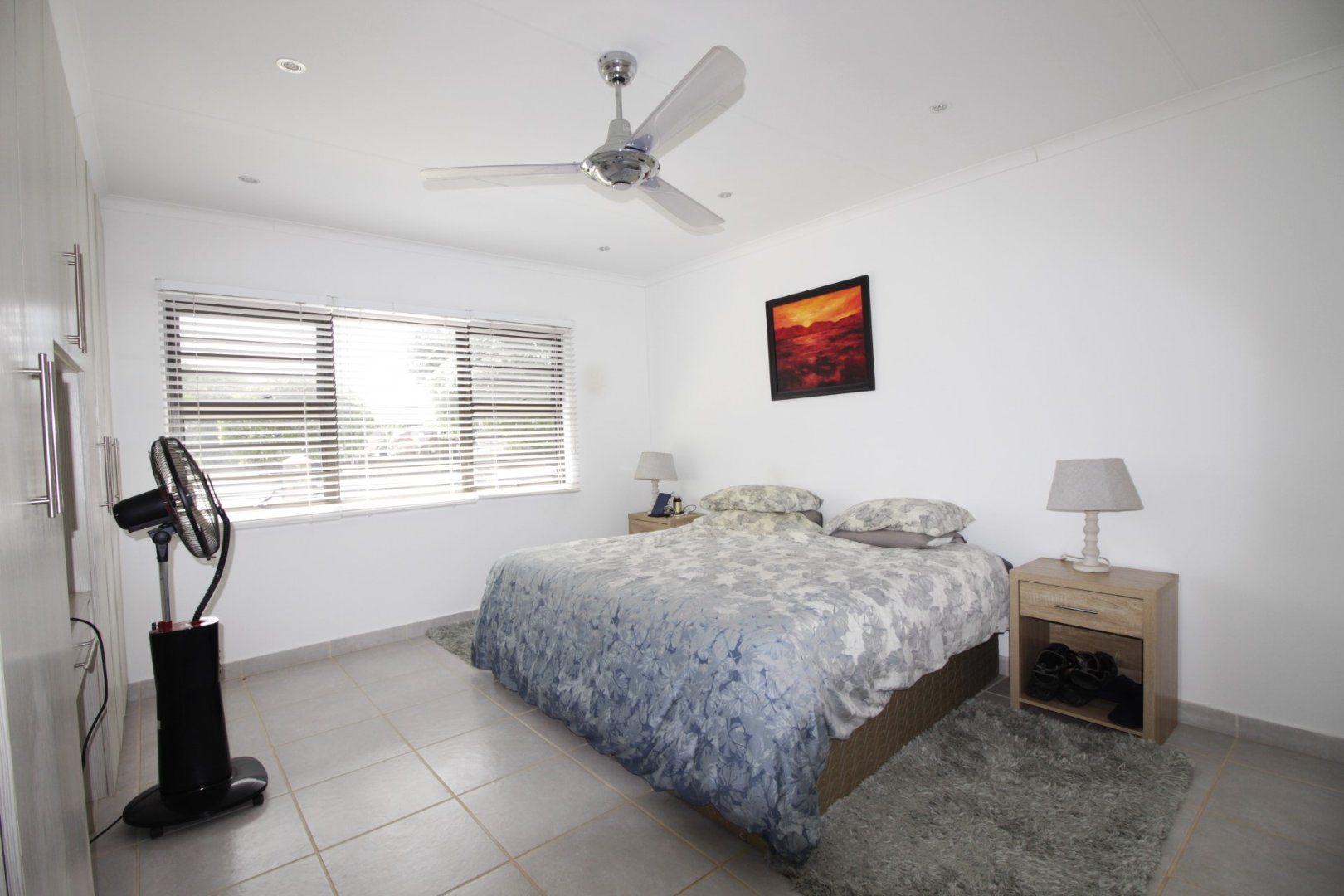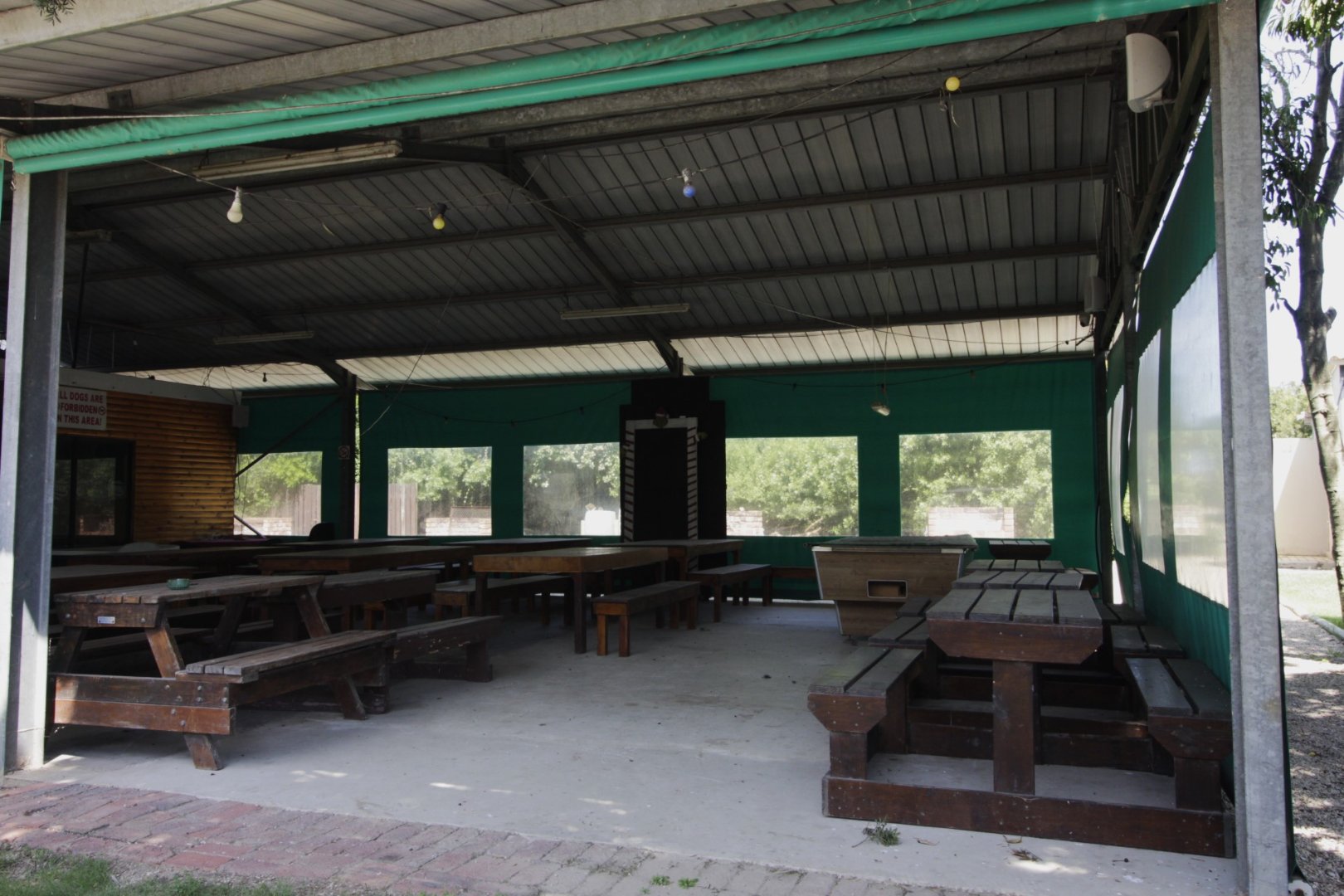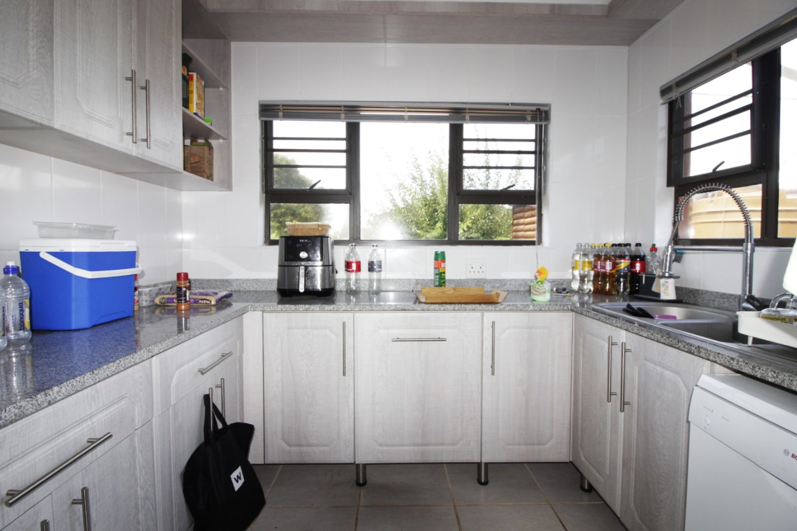 From here, access the garage, which seamlessly flows into a delectable entertainment area complete with a bathroom, storeroom, built-in braai, and sliding doors leading to the outdoors. A stationary caravan with two double beds provides even more space for extended family gatherings.