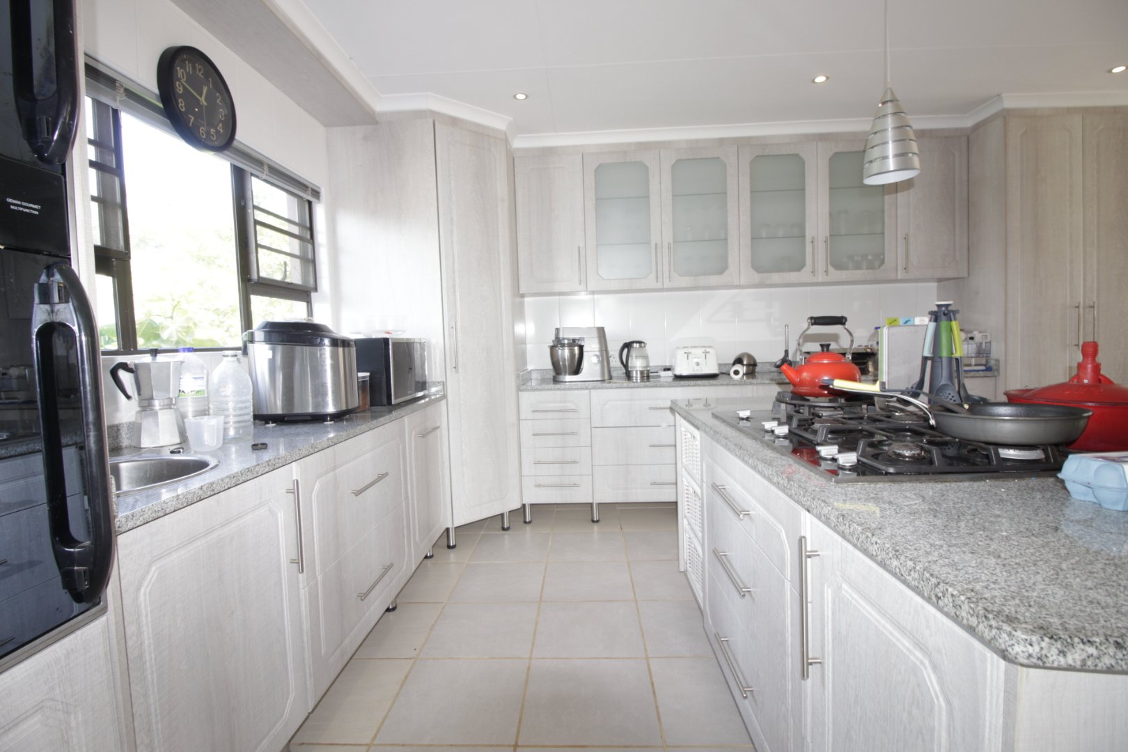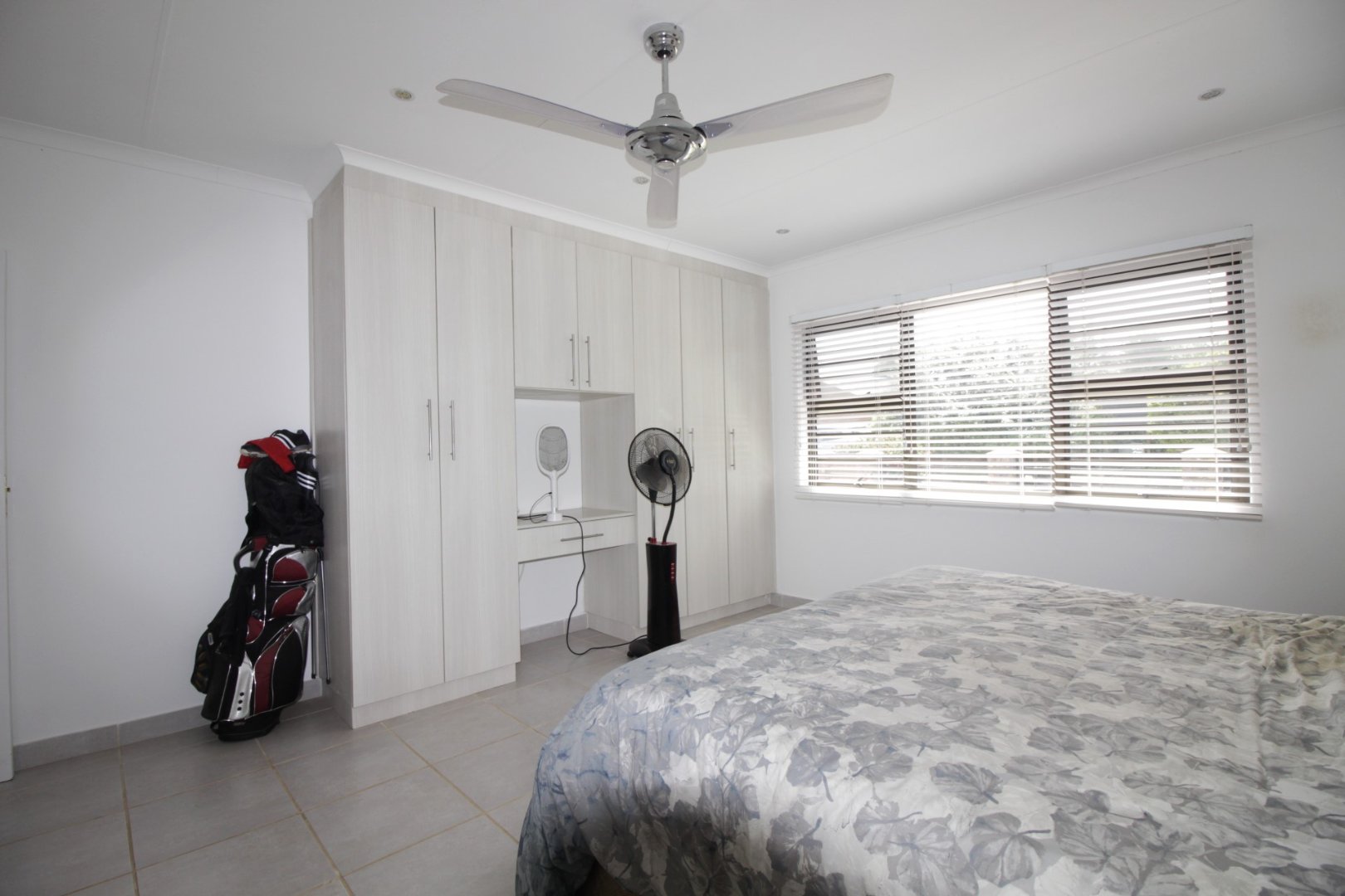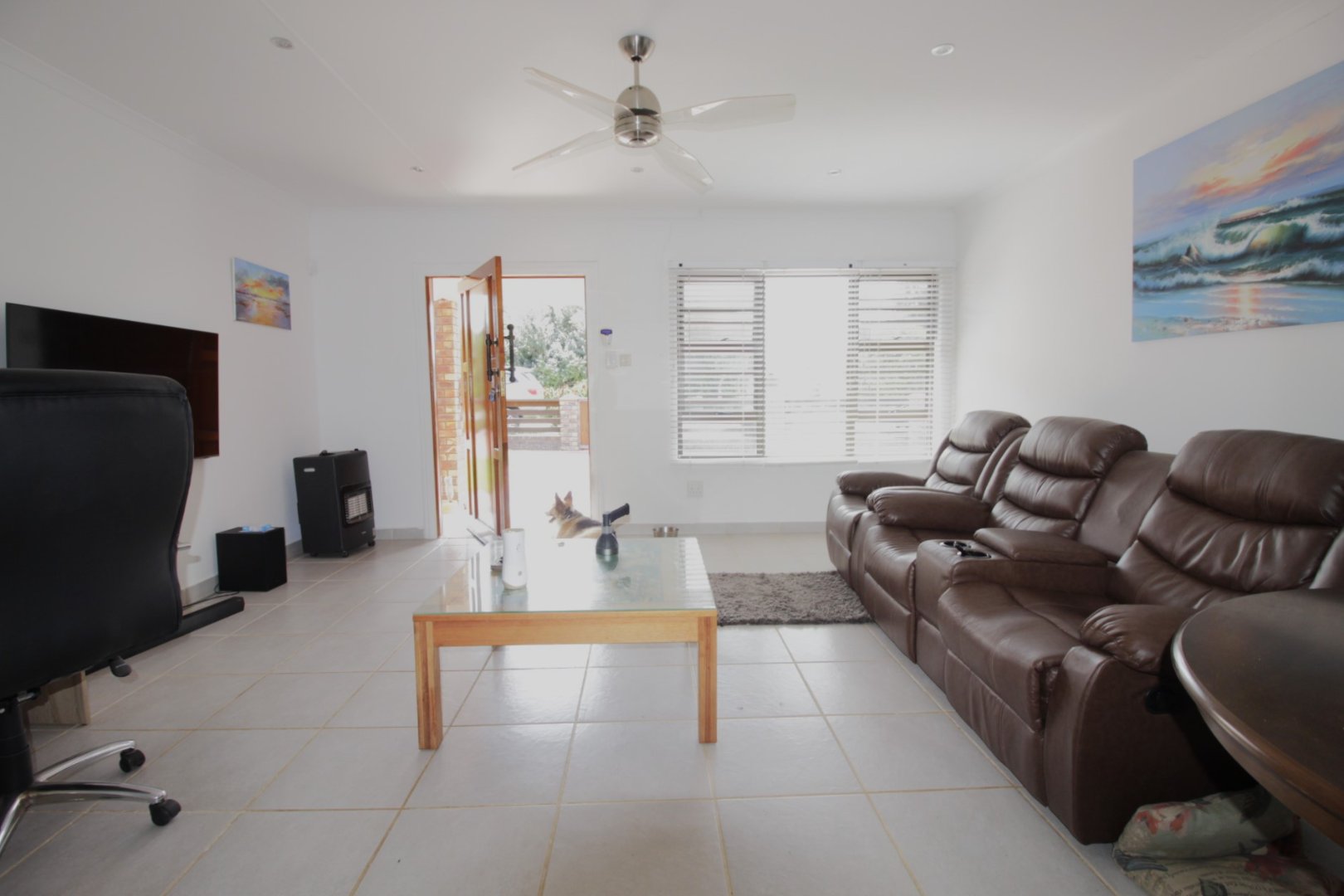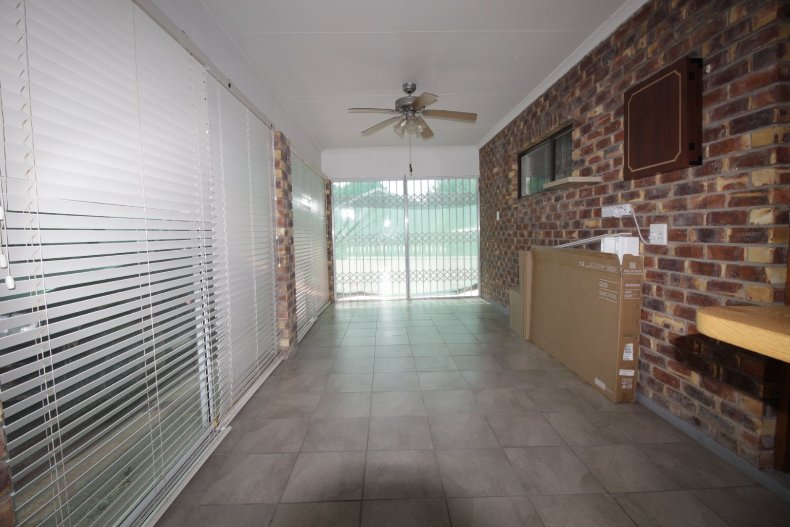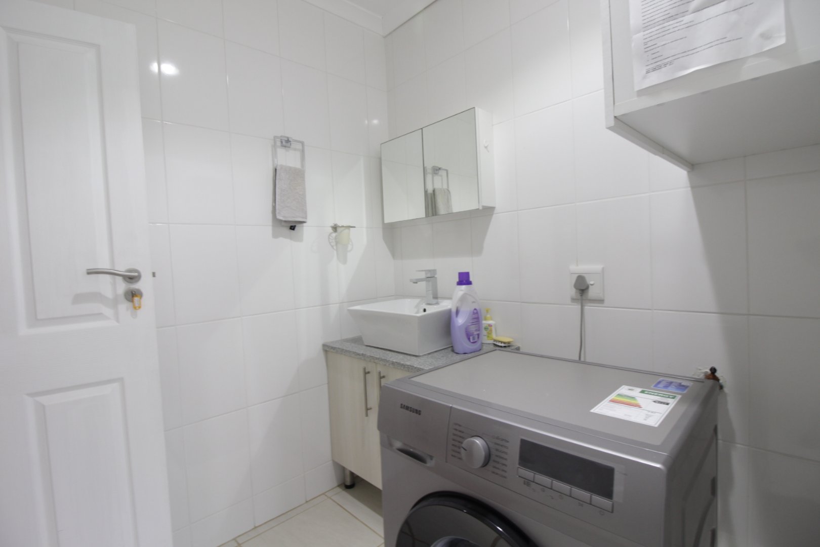 From here, access the garage, which seamlessly flows into a delectable entertainment area complete with a bathroom, storeroom, built-in braai, and sliding doors leading to the outdoors. A stationary caravan with two double beds provides even more space for extended family gatherings.