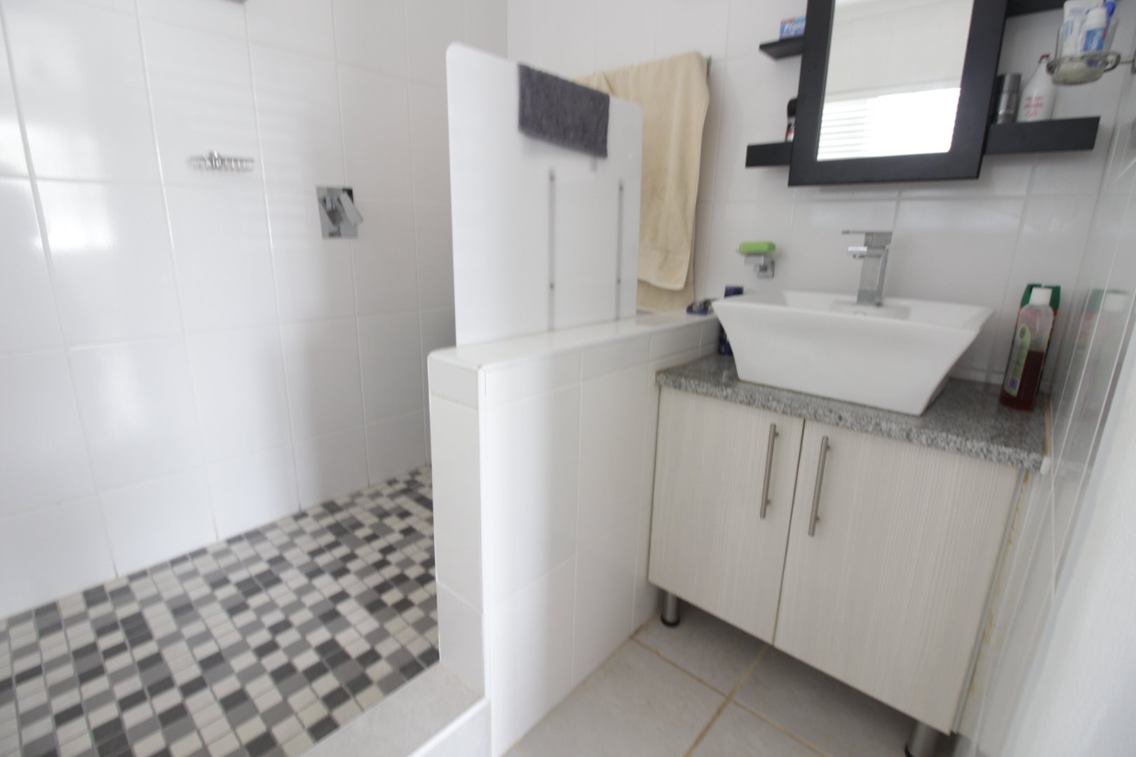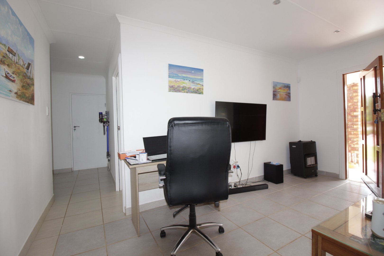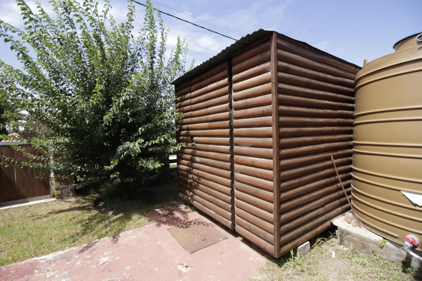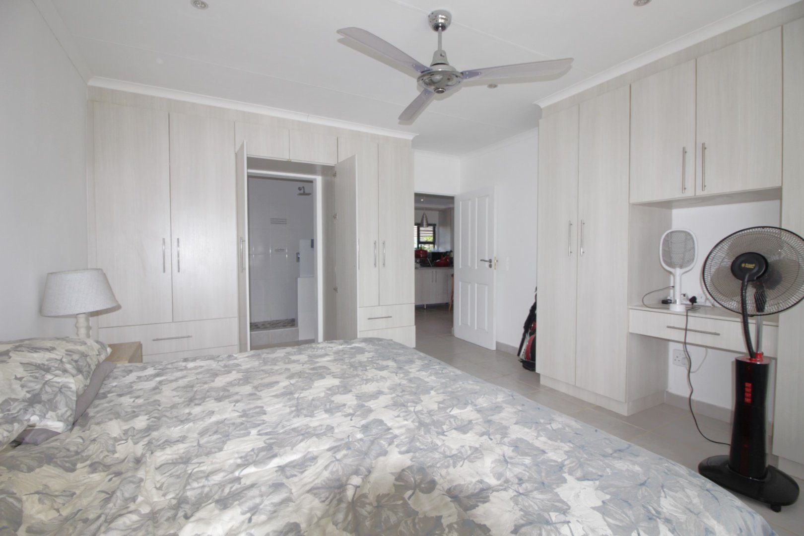 From here, access the garage, which seamlessly flows into a delectable entertainment area complete with a bathroom, storeroom, built-in braai, and sliding doors leading to the outdoors. A stationary caravan with two double beds provides even more space for extended family gatherings.