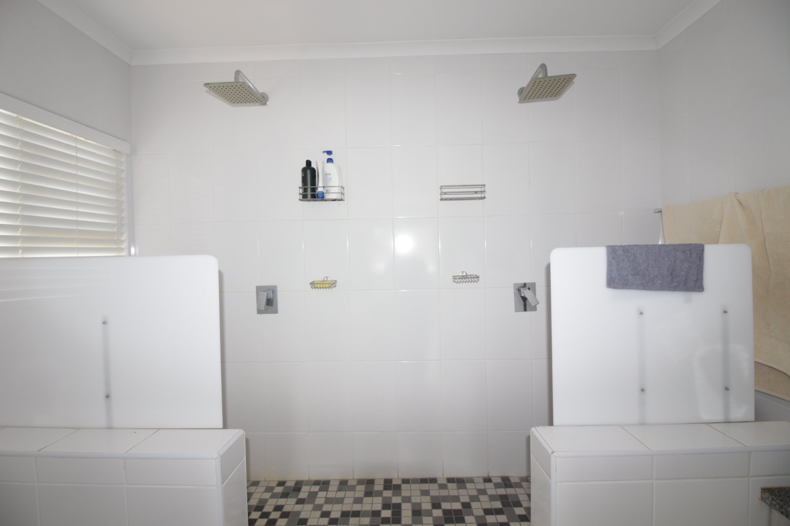 The expansive master bedroom, located privately on one side of the home, features a luxurious en-suite bathroom with a combined his-and-hers shower. Down the hall, you'll find two additional spacious bedrooms, a full bathroom, and a linen cupboard, ensuring comfortable accommodation for family and guests.