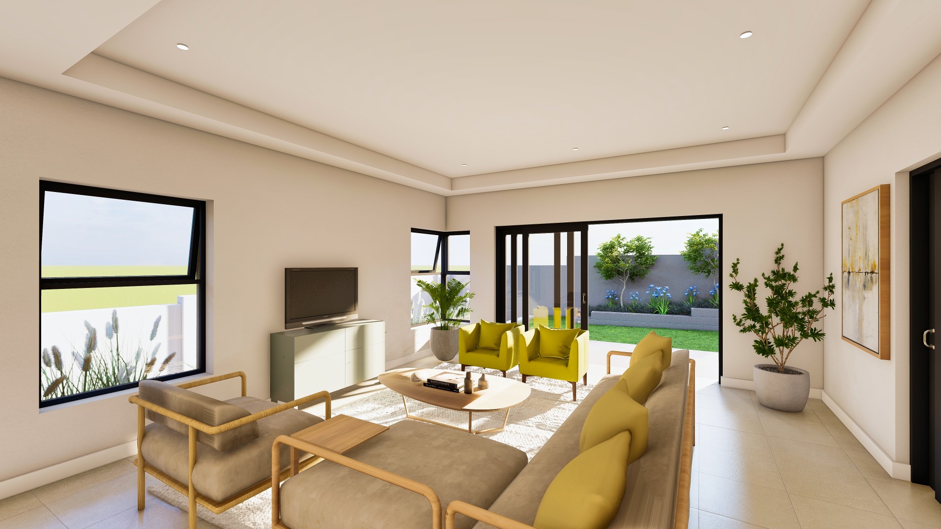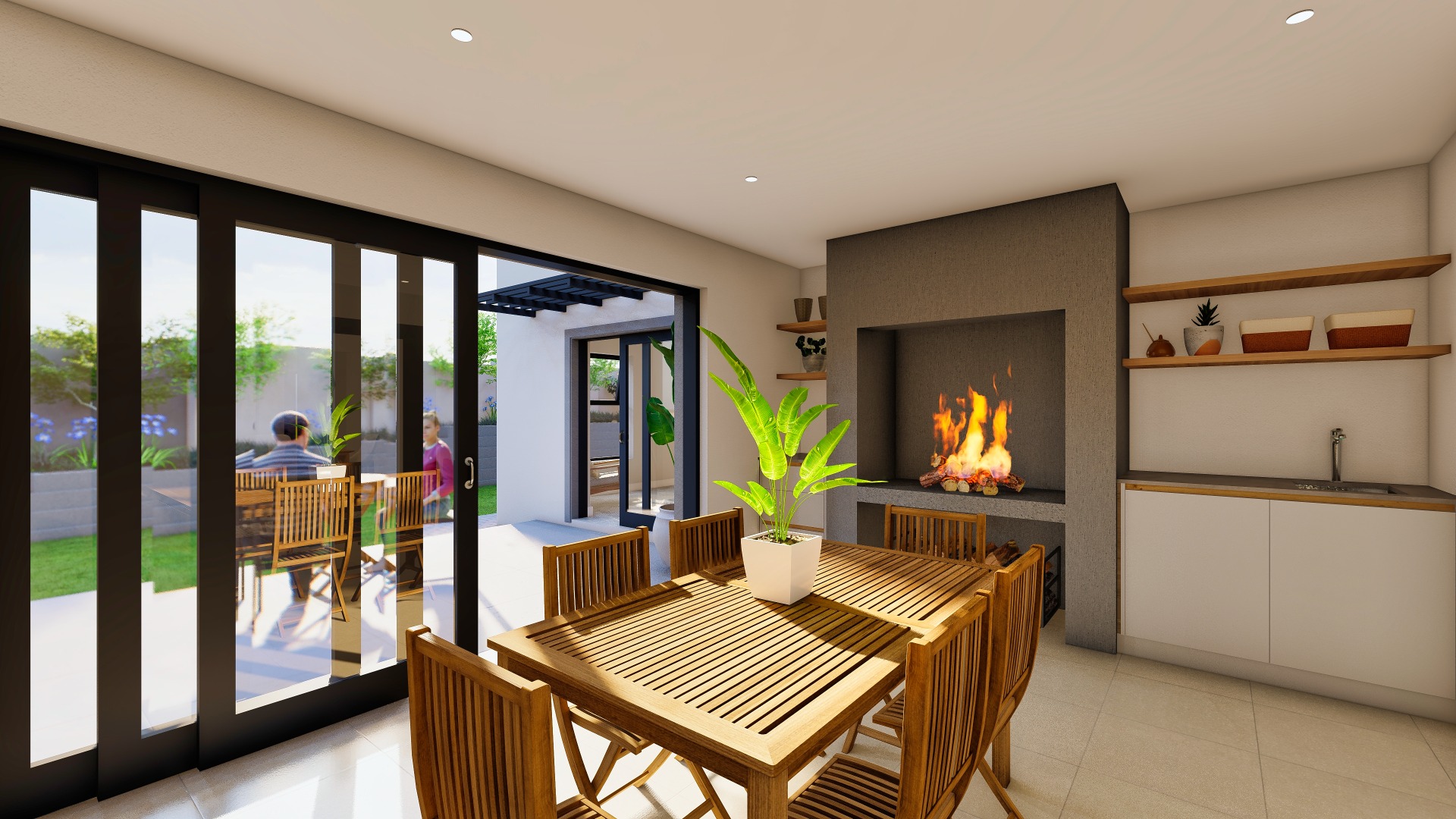 Upon entering, you're greeted by a thoughtfully placed study on your right, complemented by a convenient guest toilet on the left. The journey through the passage leads you to an expansive open living area, with the kitchen boasting a scullery on the left and a dining area on the right. Continuing forward, a spacious living room awaits, and to the right, a charming braai room opens up to a north-facing open patio.
