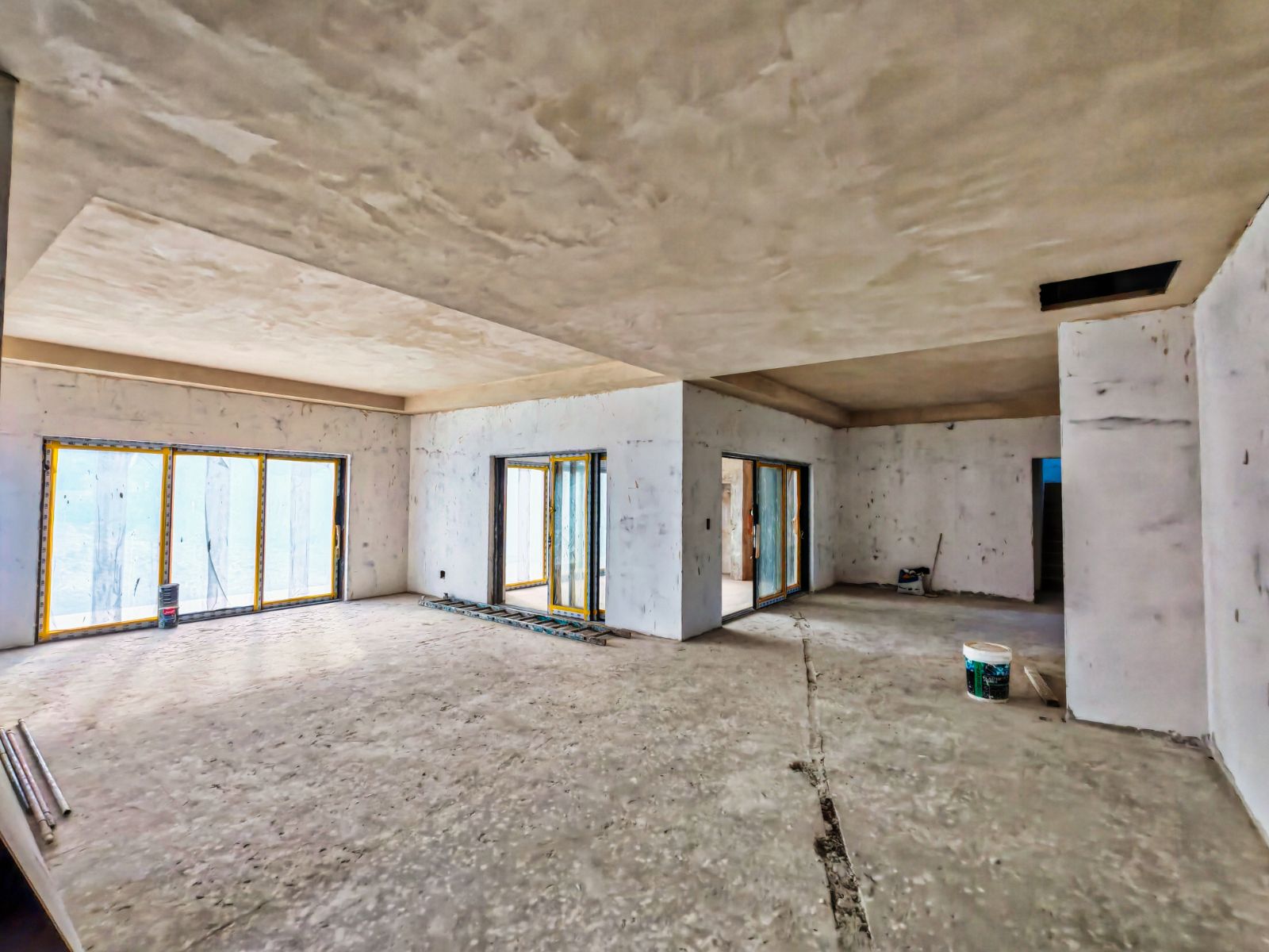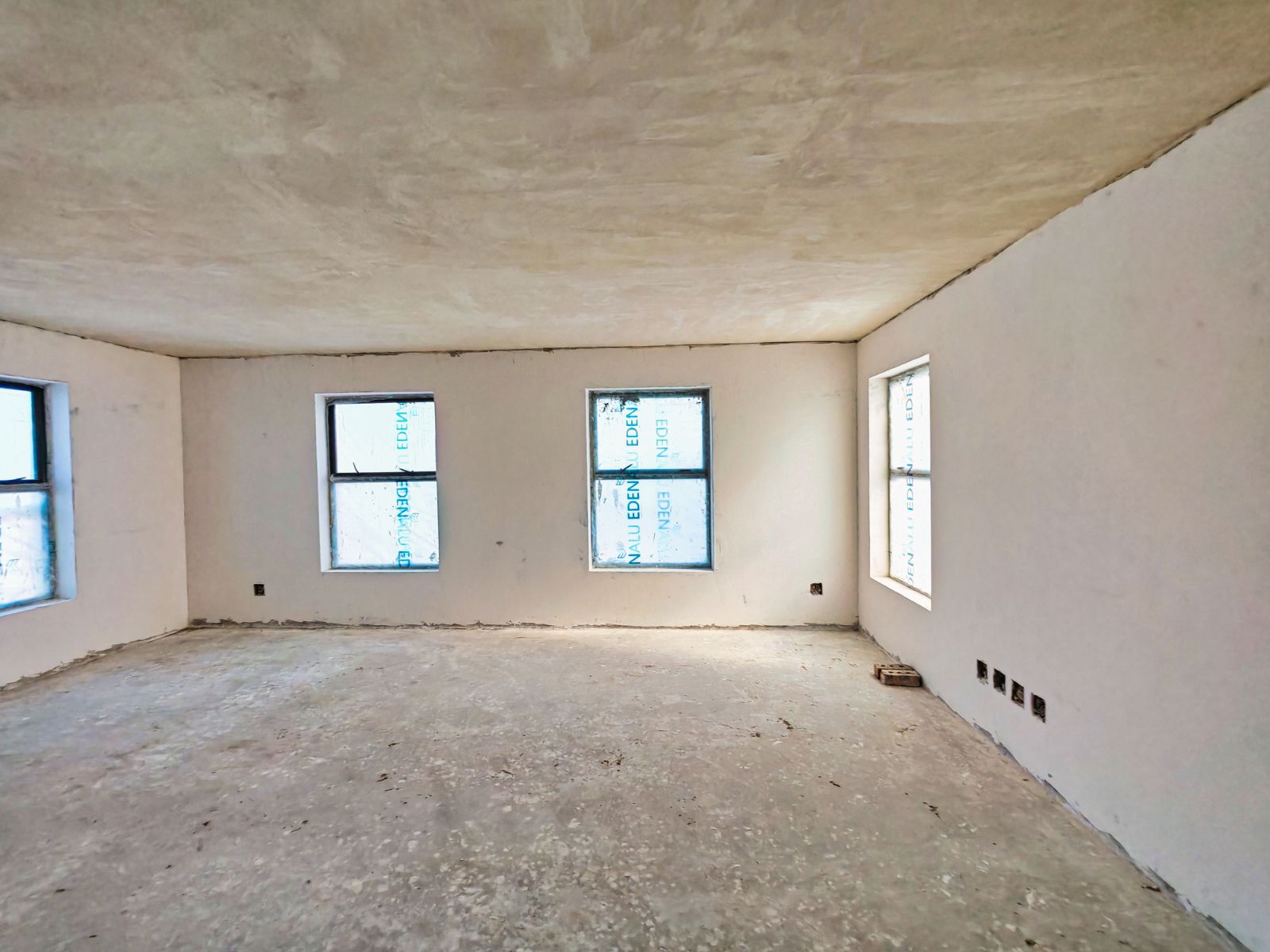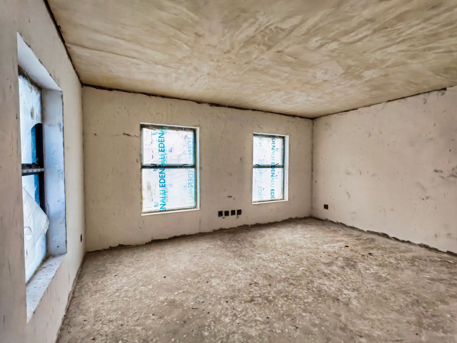 A unique advantage of this property is the one-bedroom flat above the three garages. With its own entrance, this flat can serve as a separate dwelling or seamlessly integrate into the main house. The flat comprises a living room, dining area, kitchen, and a comfortable bedroom with an attached bathroom.
