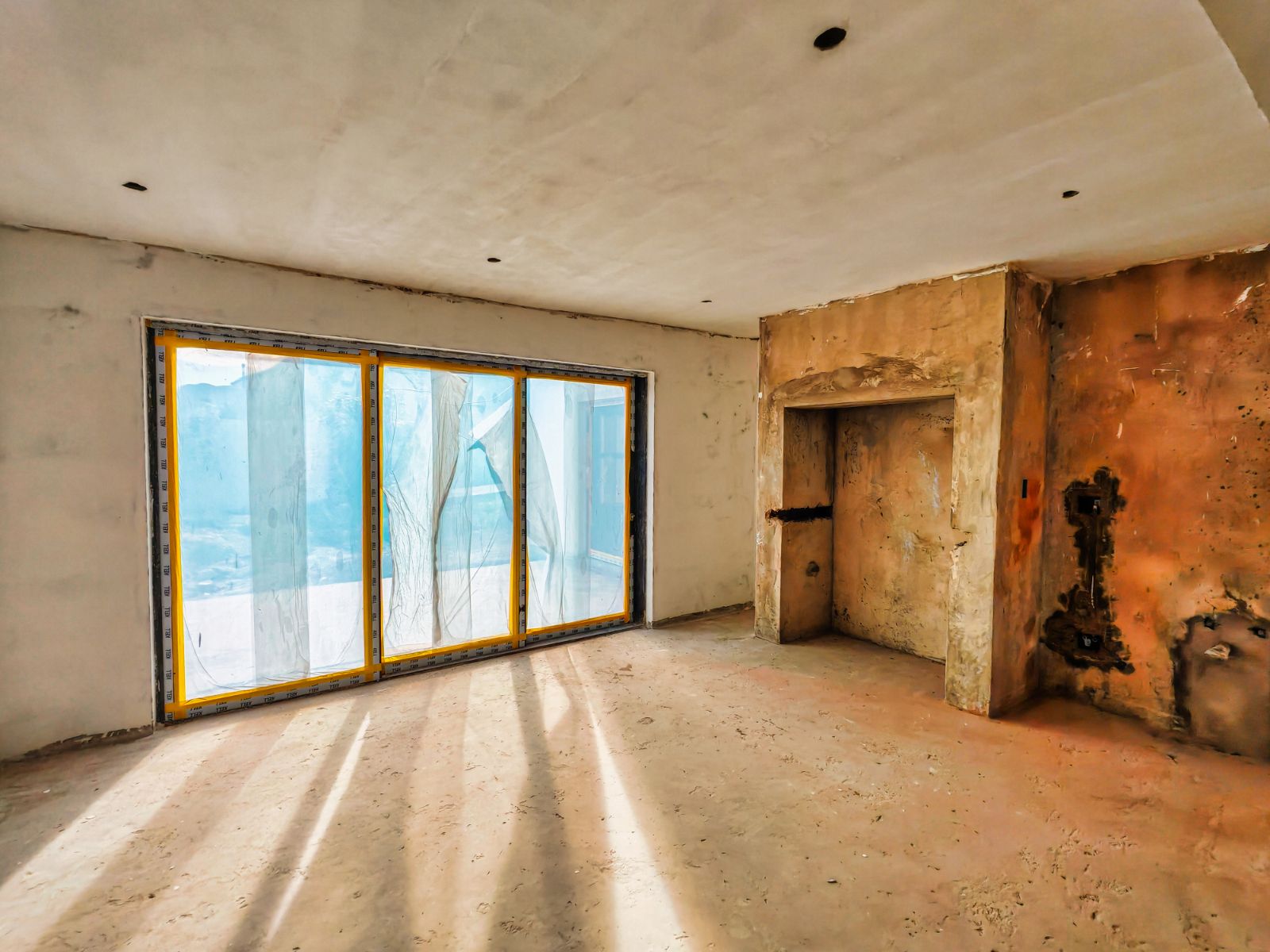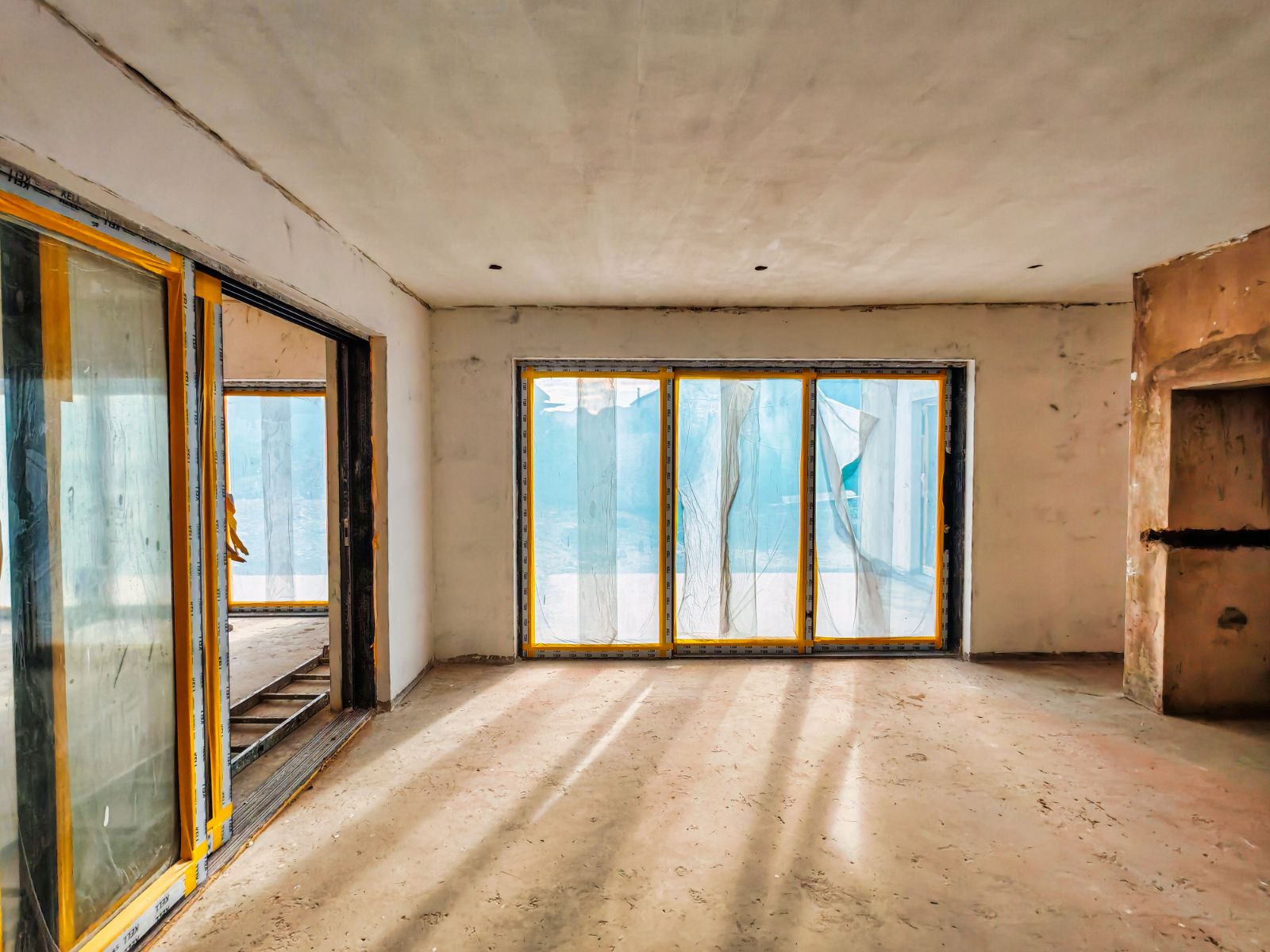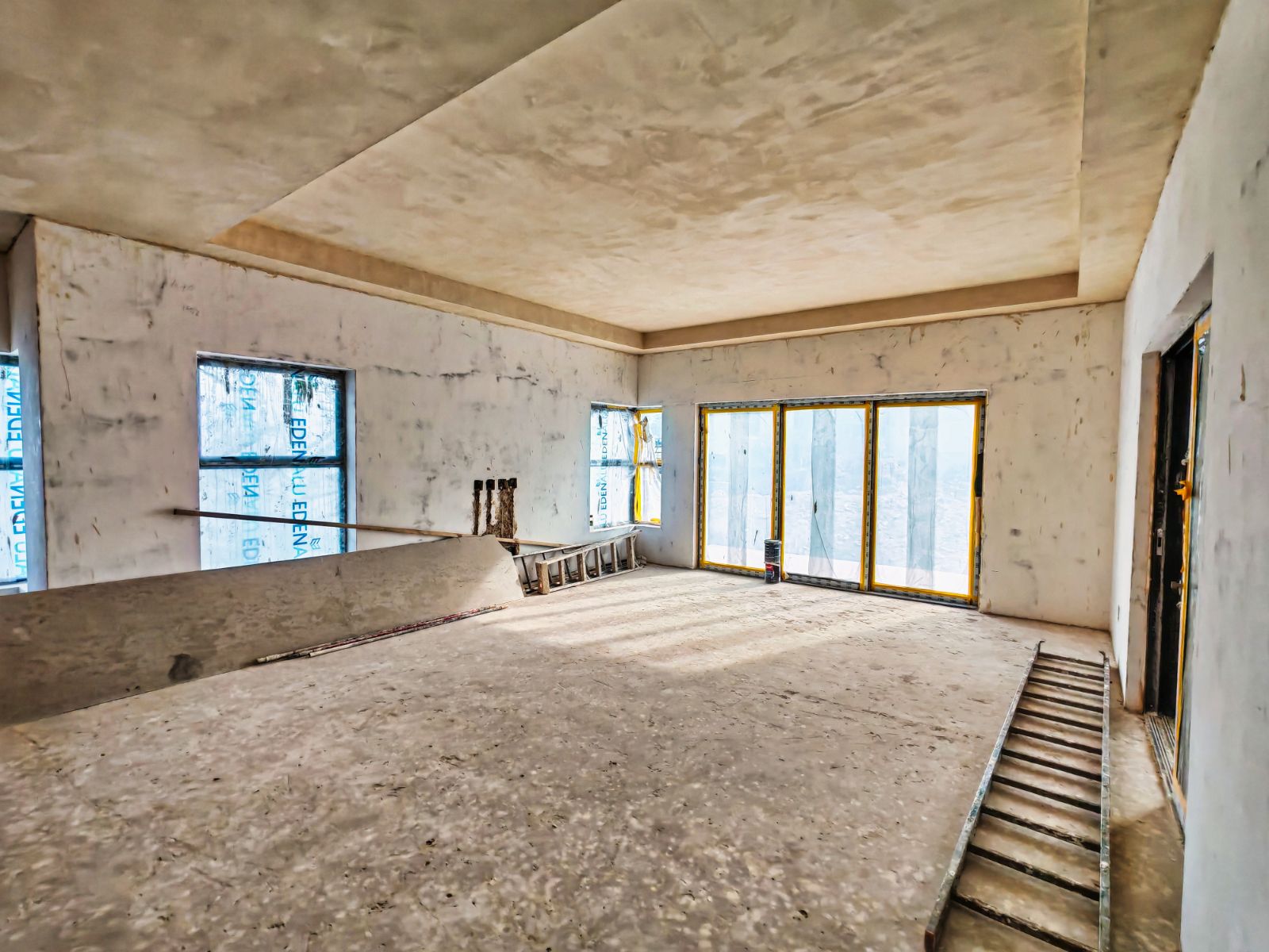 A unique advantage of this property is the one-bedroom flat above the three garages. With its own entrance, this flat can serve as a separate dwelling or seamlessly integrate into the main house. The flat comprises a living room, dining area, kitchen, and a comfortable bedroom with an attached bathroom.