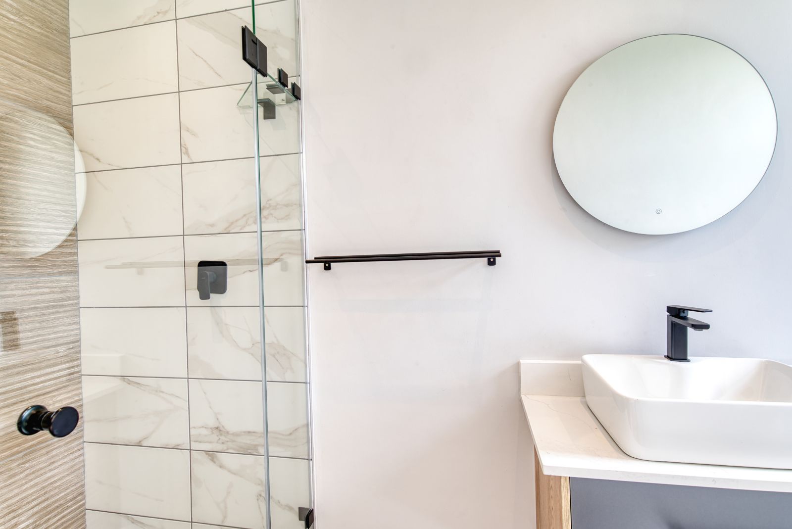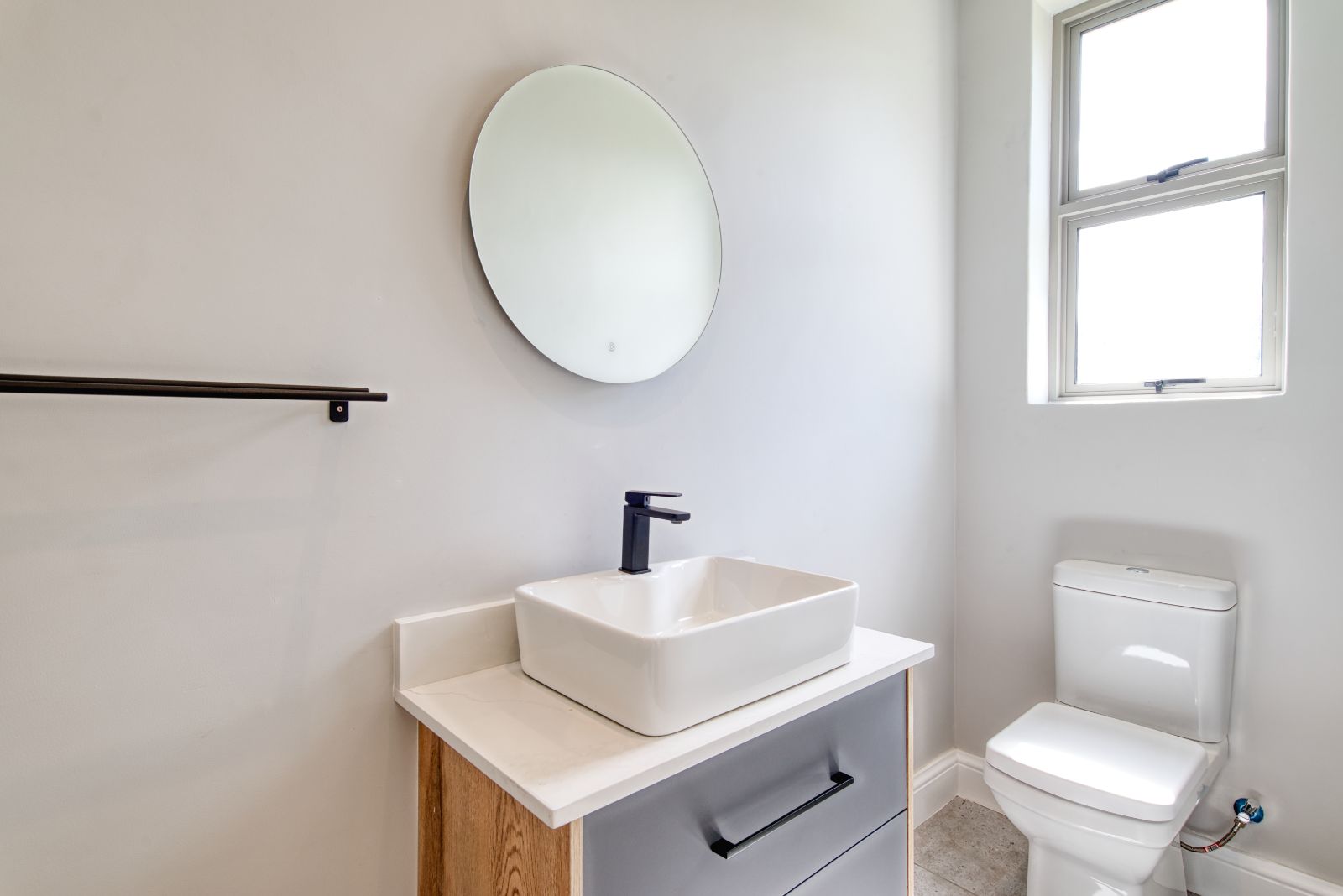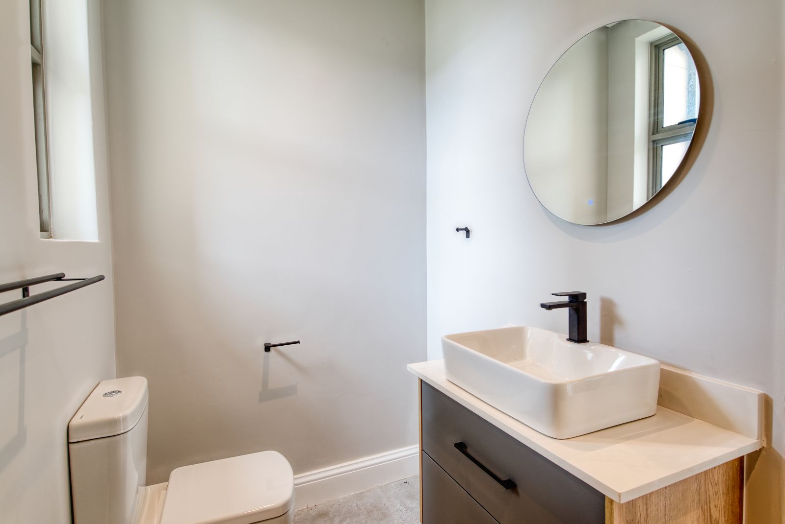 From the dining area, a passage leads to the bedroom wing. On the left is the spacious main bedroom, featuring a dressing area and a luxurious en-suite bathroom. On the right are two additional bedrooms, each with its own en-suite bathroom. Positioned to the left of the front entrance is a private guest bedroom with a guest toilet, perfect for visitors.