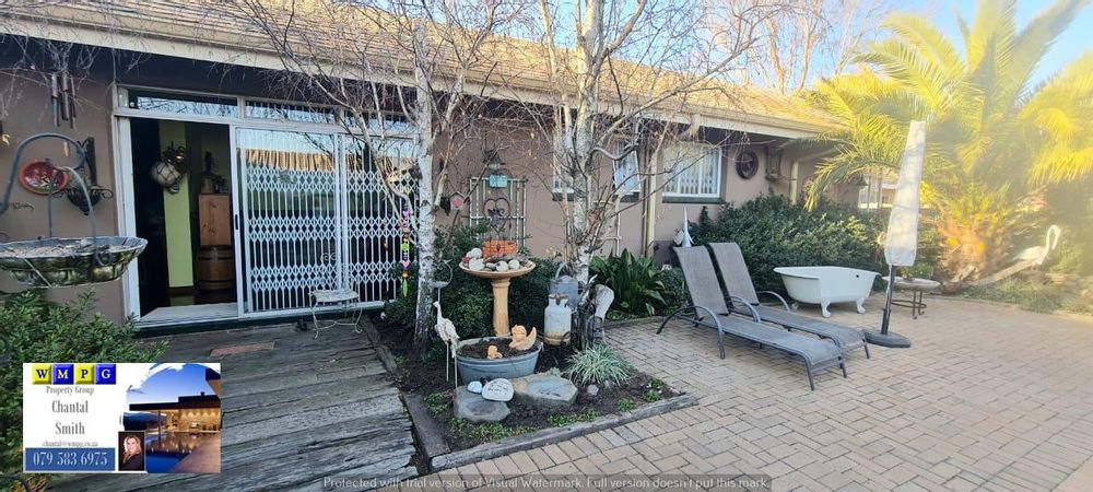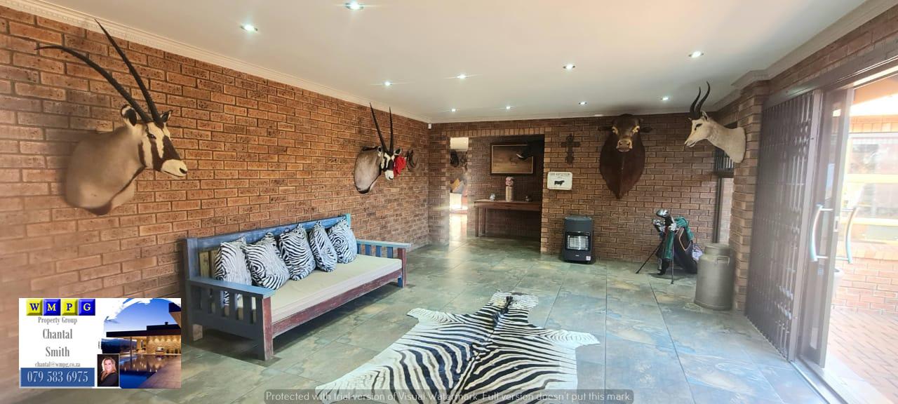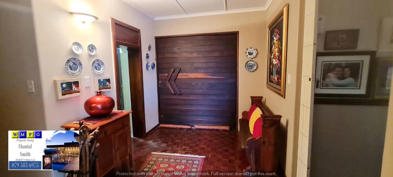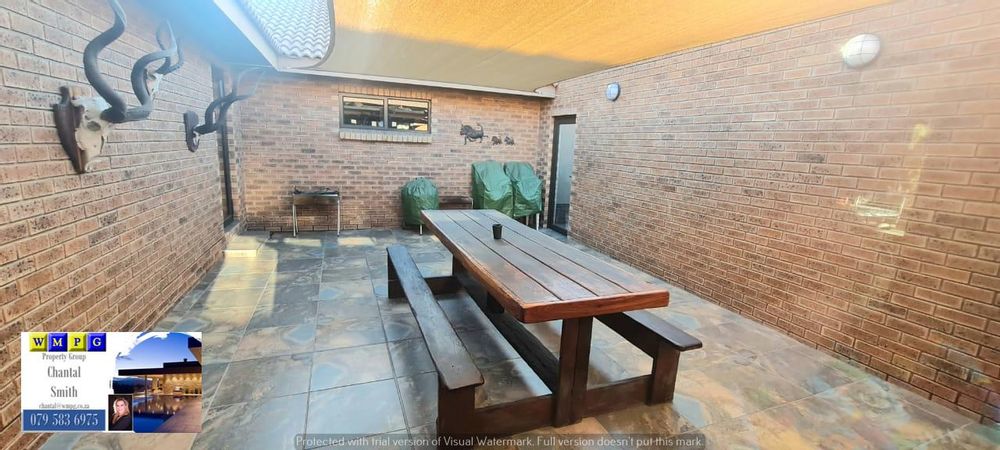 Impressive front entrance when entering this property, which leads into a spacious living area with a built in braai plus a bar counter that has a solid granite top. Outside is a private patio area.