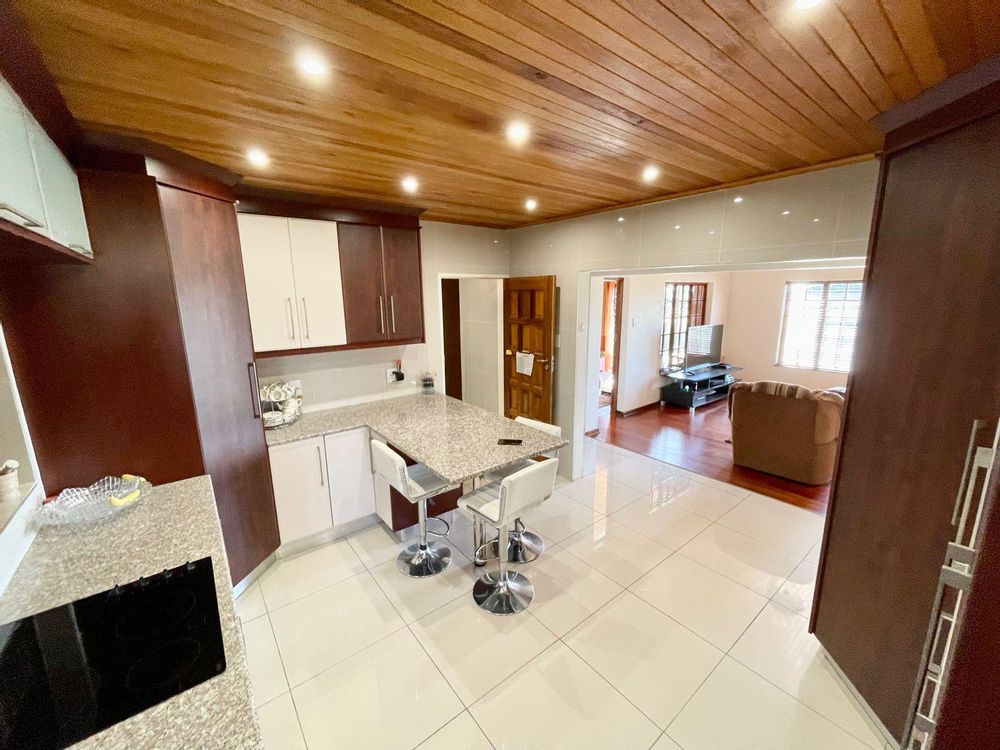 Three spacious living areas that function as a dining room, living room and family room, one living area is open plan and over looks a modern open plan kitchen with modern melamine cupboards, granite tops, huge bonus is the scullery area that is around the corner.