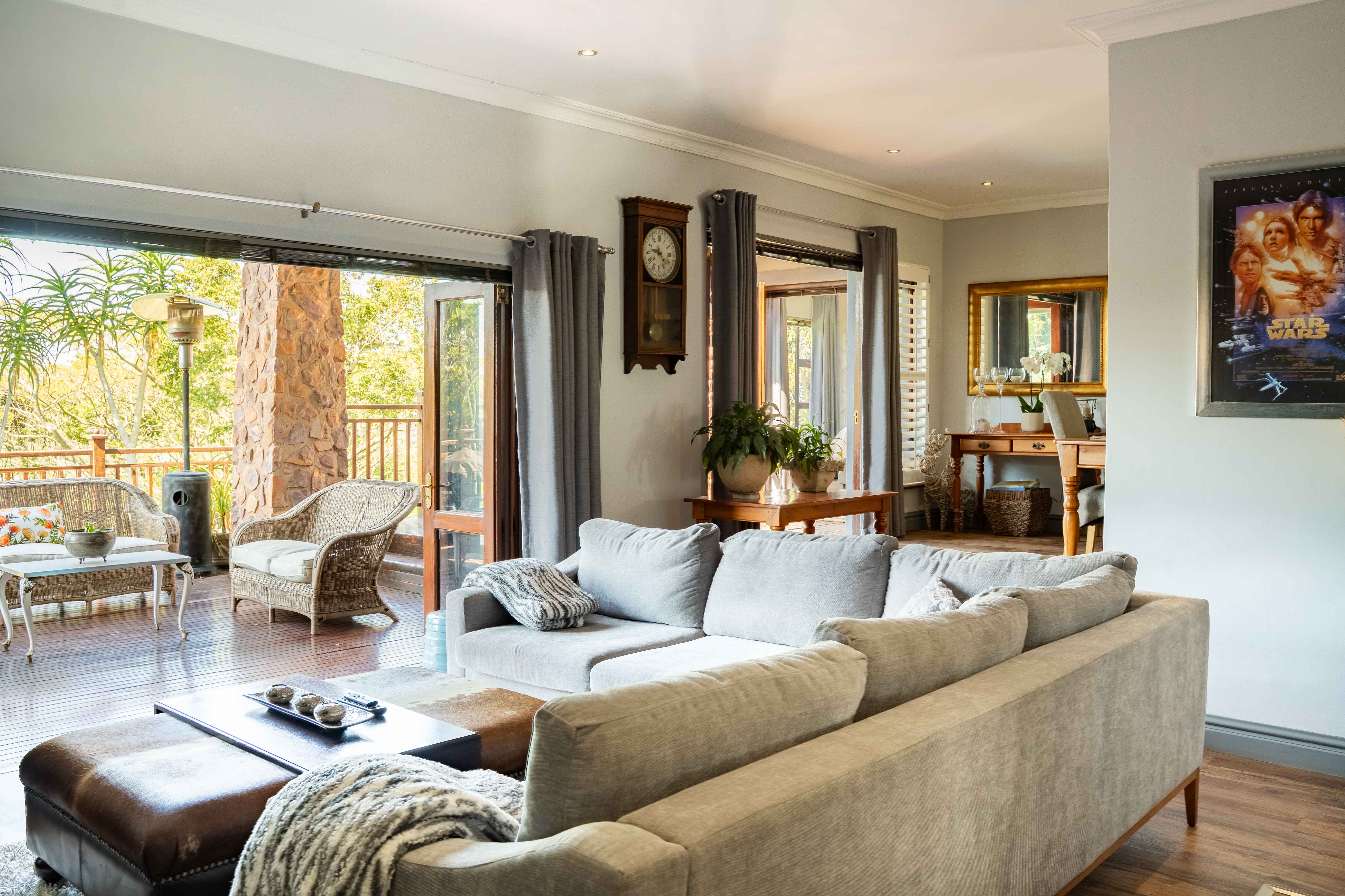 The formal lounge, complete with a wood-burning fireplace, flows seamlessly onto an expansive deck that captures elevated vistas over the garden and forest beyond. A second, more intimate lounge provides a cosy space for TV or conversation and integrates effortlessly with the dining area and contemporary kitchen, finished with soft-touch cabinetry, a breakfast bar, and a discreet scullery. The main suite is thoughtfully separated from the additional bedrooms and office, offering a quiet retreat with a walk-through dressing room, full en-suite bathroom, and direct access to the deck, perfect for enjoying sunrise views and morning coffee.